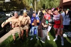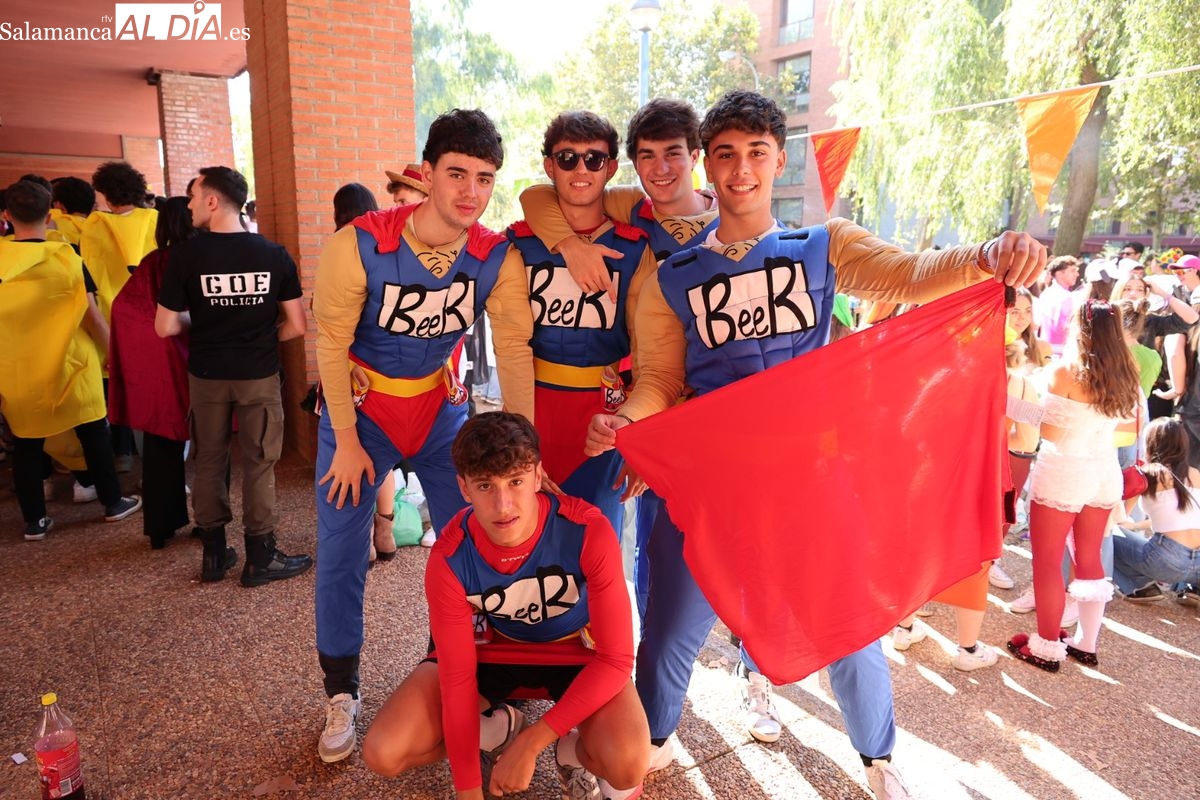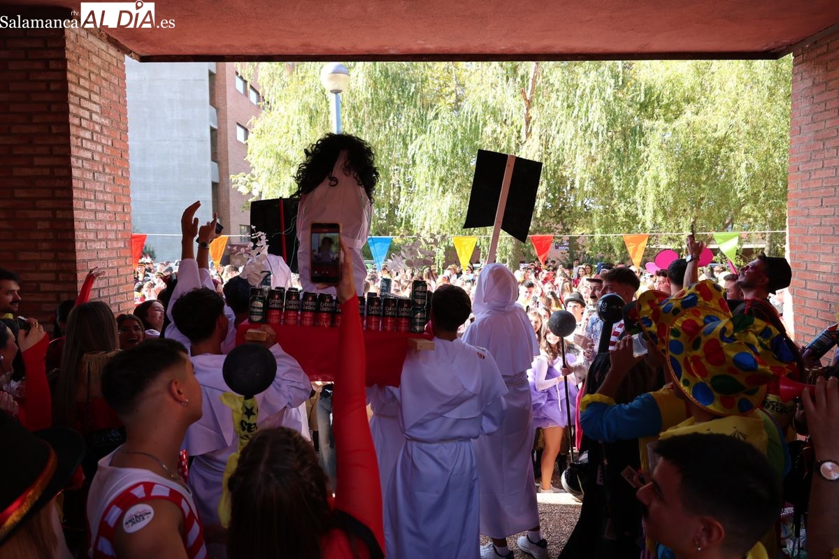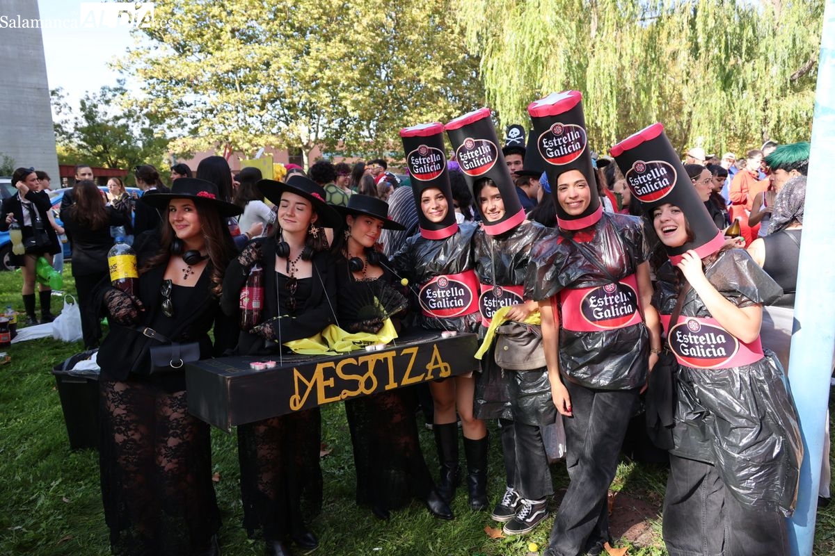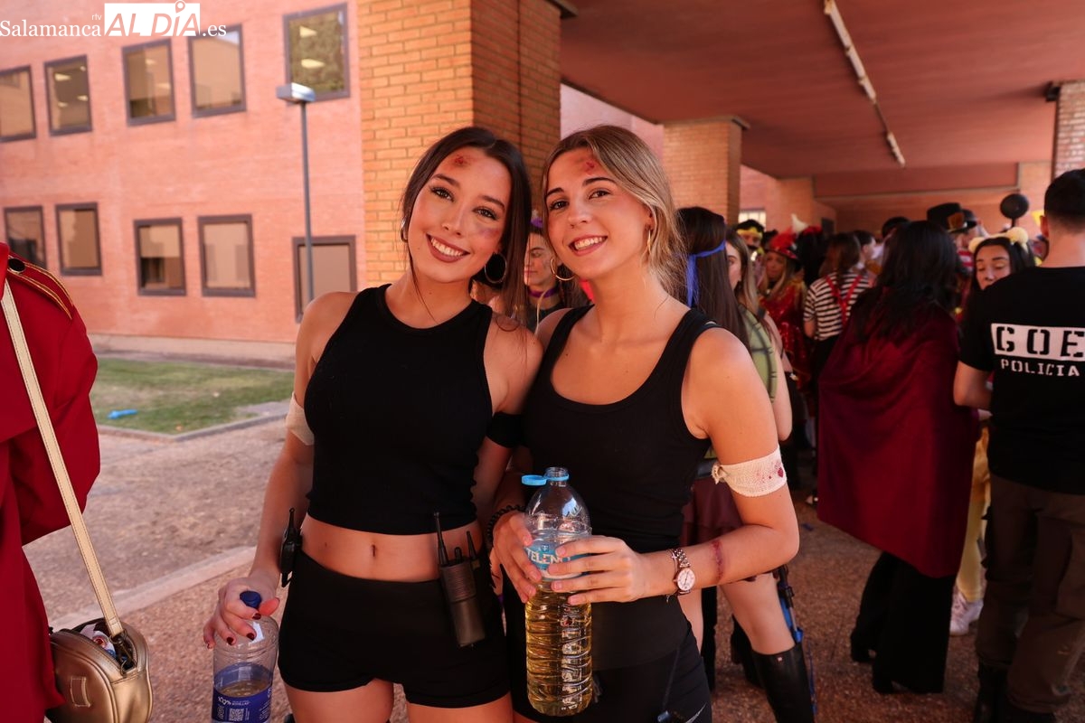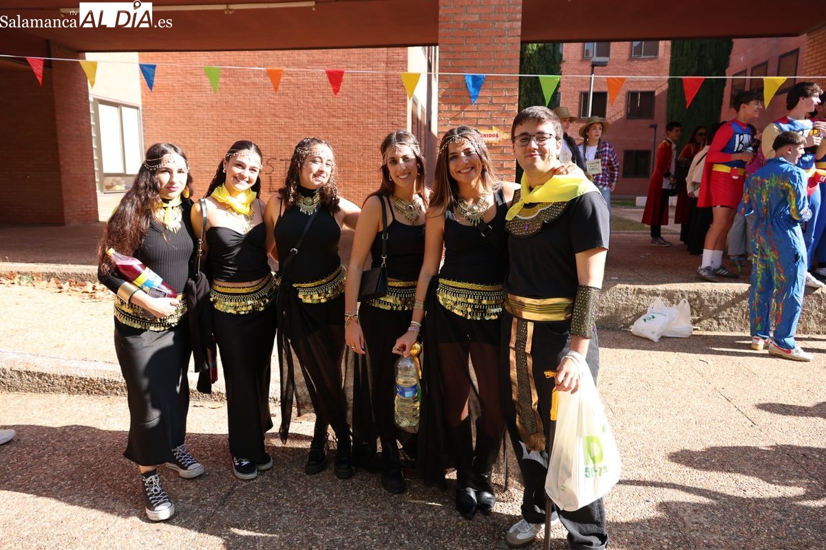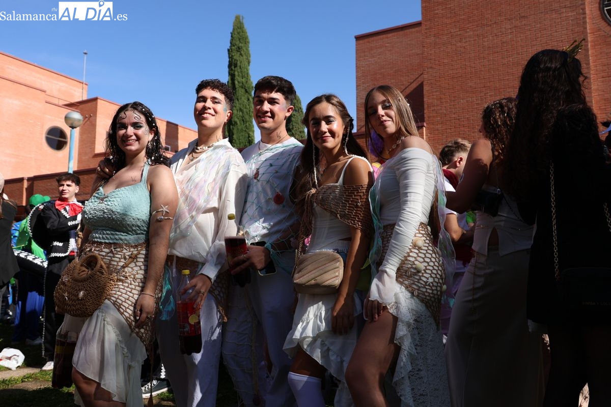 Los estudiantes de la Facultad de Medicina de la Universidad de Salamanca celebran este jueves, 16 de octubre, el día grande de sus fiestas en honor a San Lucas. La jornada festiva ha tenido como protagonistas un colorido concurso de disfraces y un posterior pasacalles con charanga por el centro de la ciudad, llenándolas de un ambiente lúdico y juvenil.