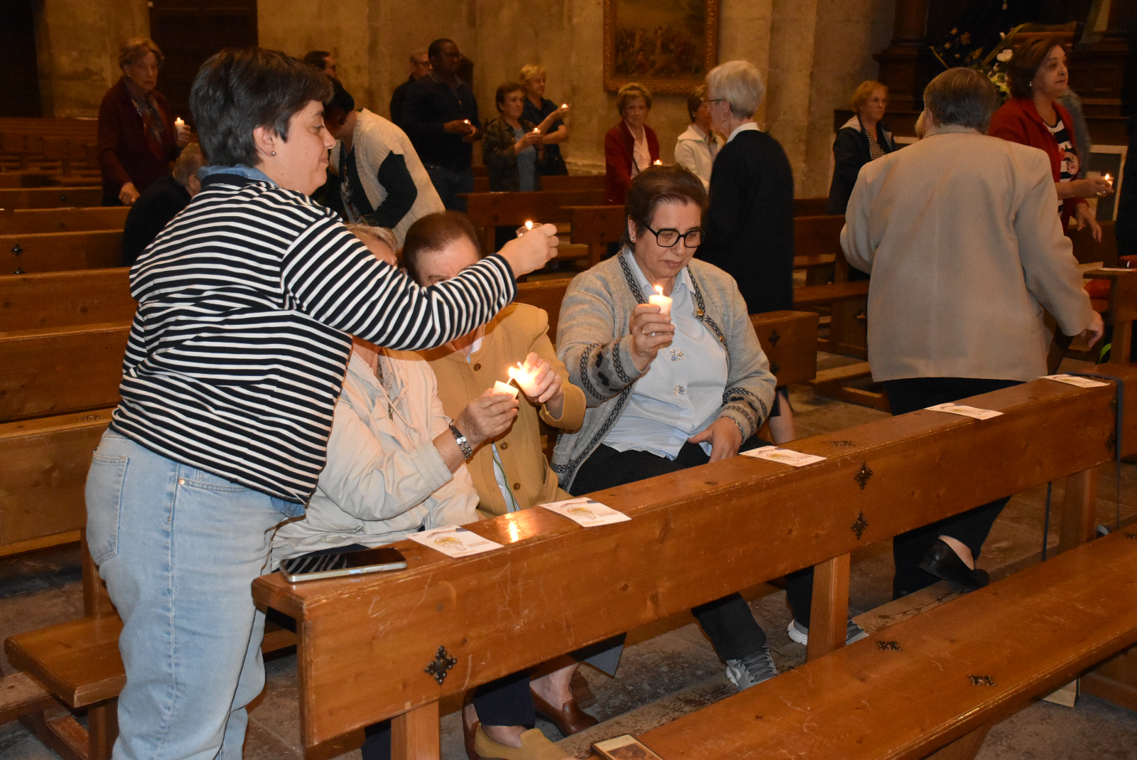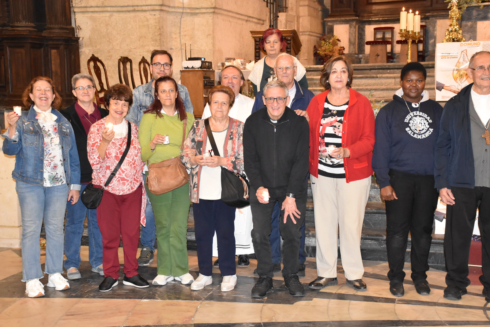 La Vigilia continuó con el encendido de unas velas que se habían repartido a los asistentes, al hilo de la imagen gráfica del Domund 2025, que es una llama con el significado de “ser llama para todos los demás”, según explicó José María Rodríguez-Veleiro. Con las velas encendidas, se dio lectura a una serie de peticiones, y se rezaron el Padrenuestro y la oración del Domund 2025 (que figura en las estampas que se habían repartido).