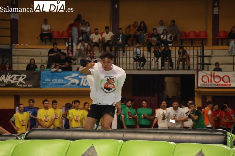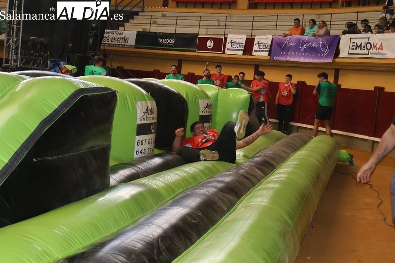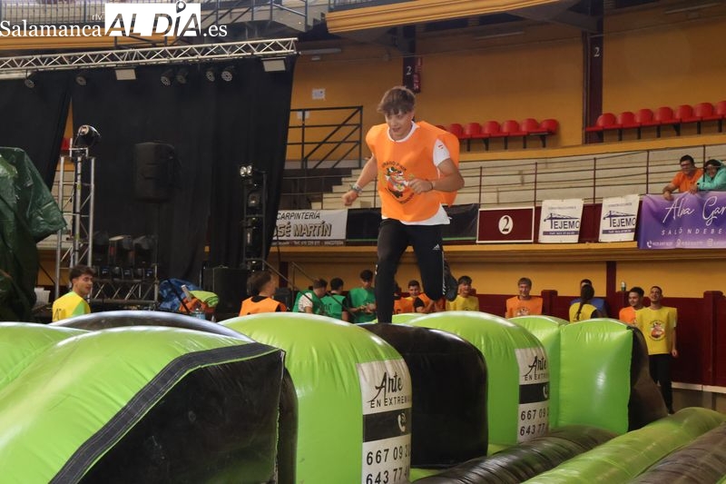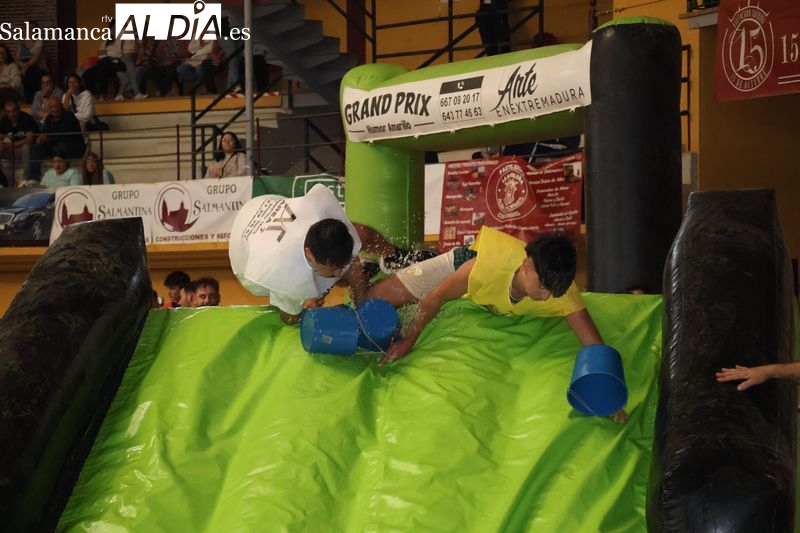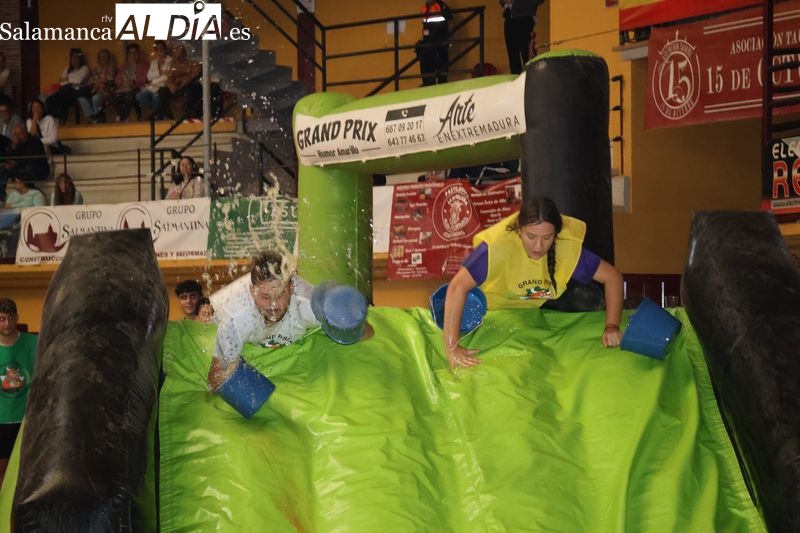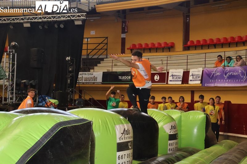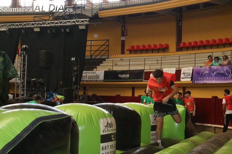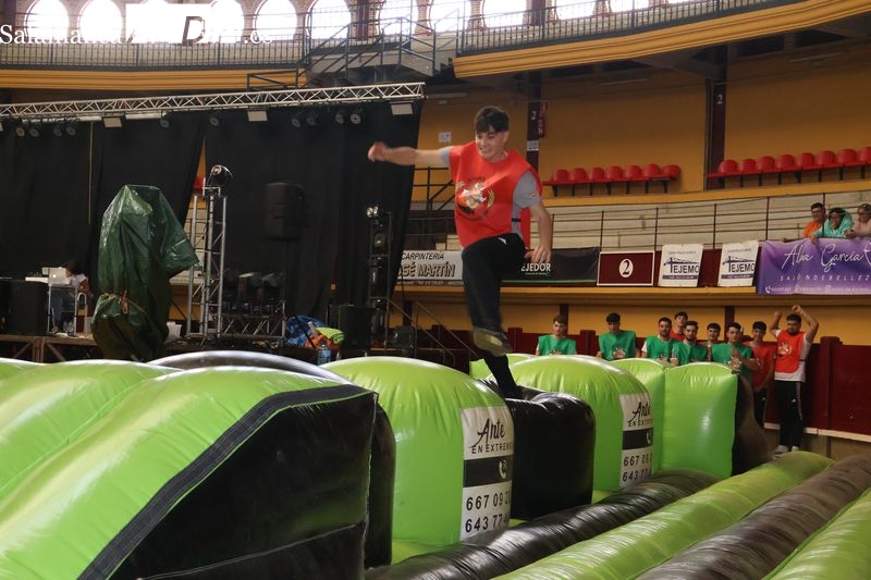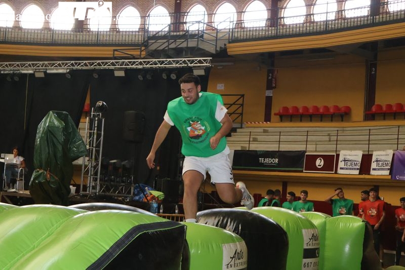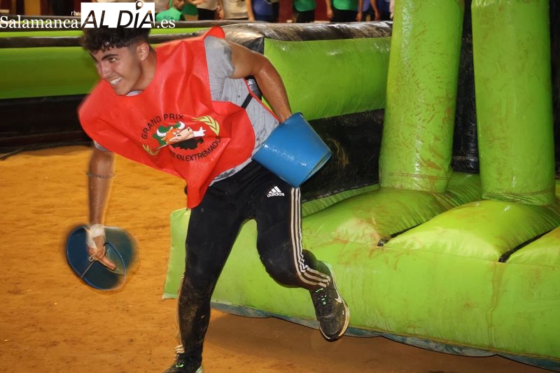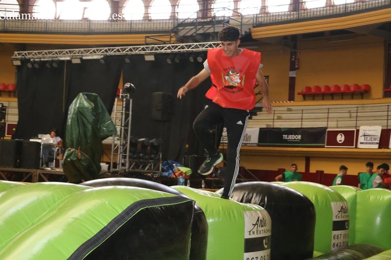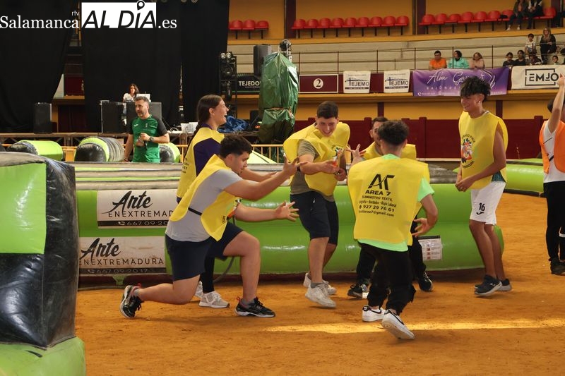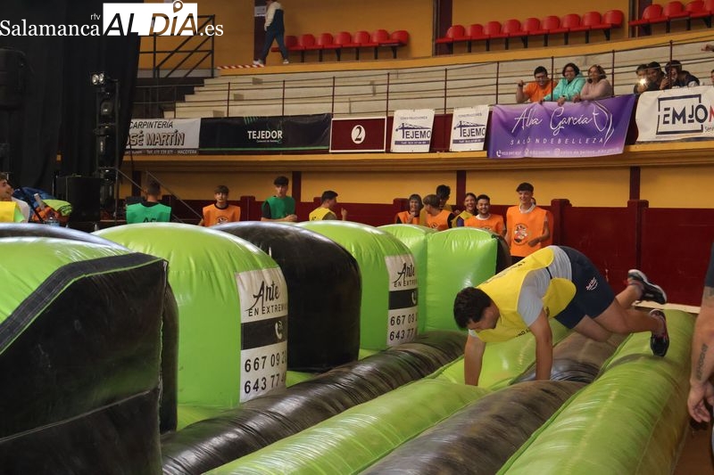 Organizada por Arte en Extremadura, la actividad reunió a seis equipos formados por jóvenes del municipio, que compitieron con gran entusiasmo en un circuito de pruebas hinchables y retos de habilidad. Identificados por colores —rojo, azul, amarillo, naranja, verde y blanco—, los grupos pusieron todo su empeño en superar obstáculos, mantener el equilibrio, responder preguntas de todo tipo y ganarse los aplausos del público, que no dejó de animar en ningún momento.