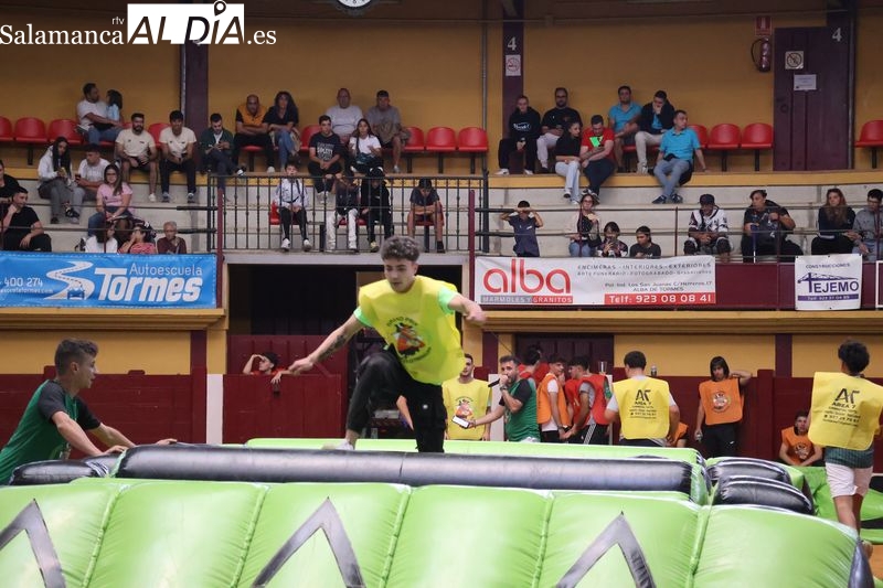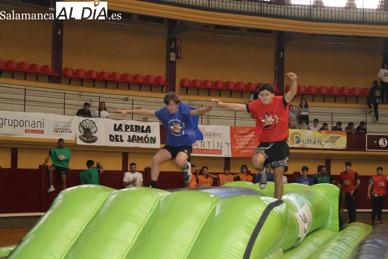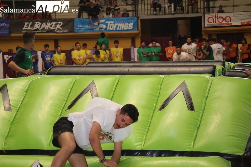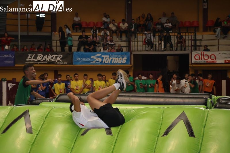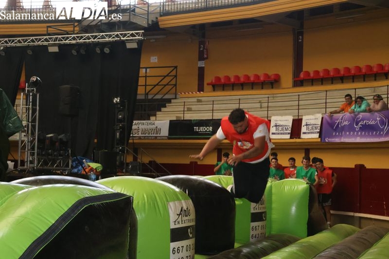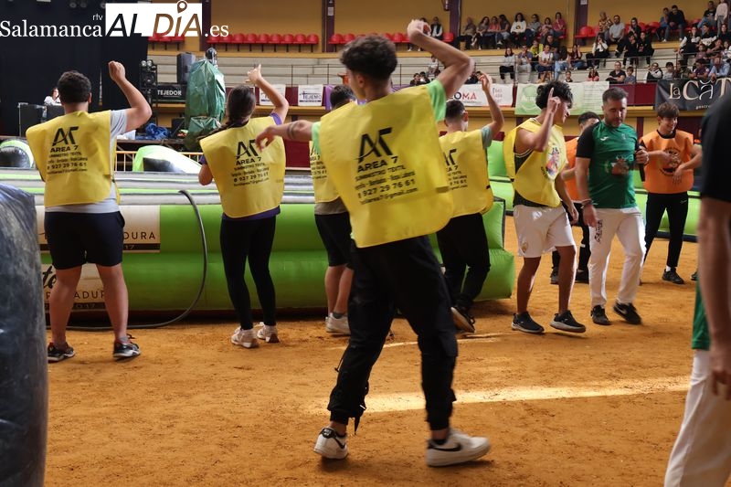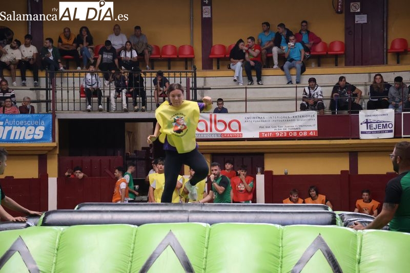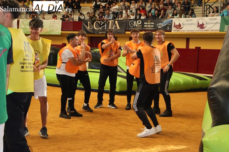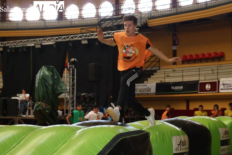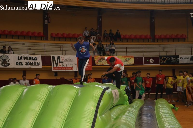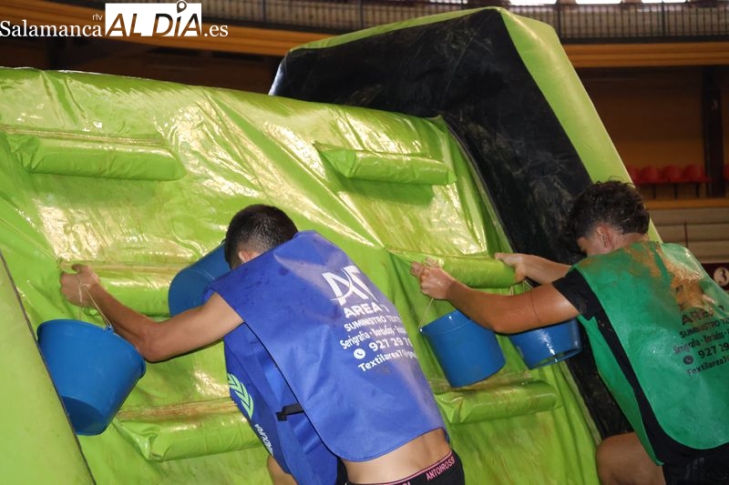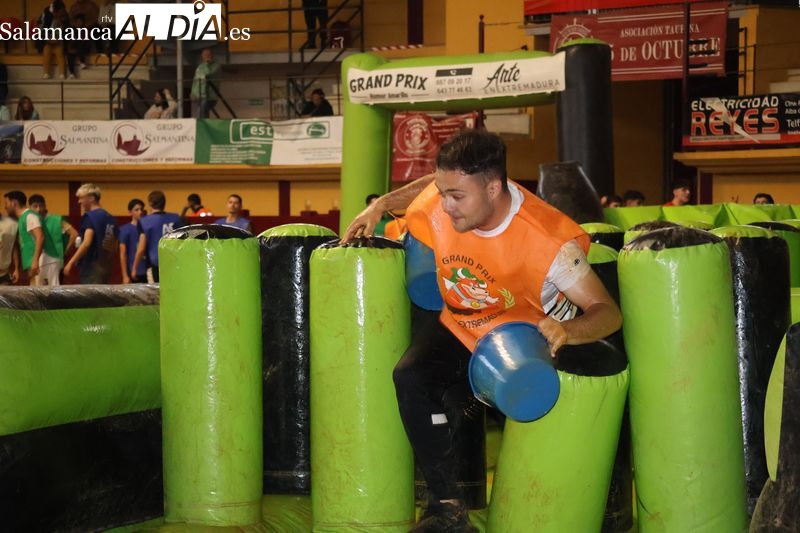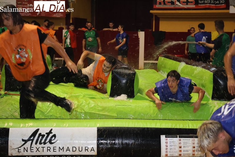 Organizada por Arte en Extremadura, la actividad reunió a seis equipos formados por jóvenes del municipio, que compitieron con gran entusiasmo en un circuito de pruebas hinchables y retos de habilidad. Identificados por colores —rojo, azul, amarillo, naranja, verde y blanco—, los grupos pusieron todo su empeño en superar obstáculos, mantener el equilibrio, responder preguntas de todo tipo y ganarse los aplausos del público, que no dejó de animar en ningún momento.