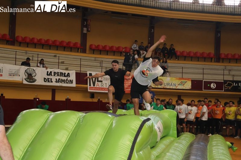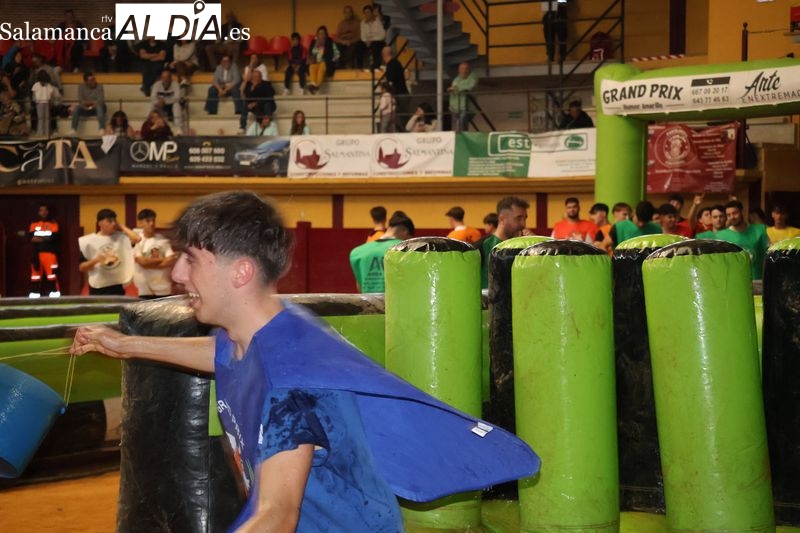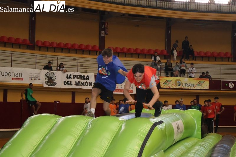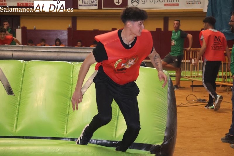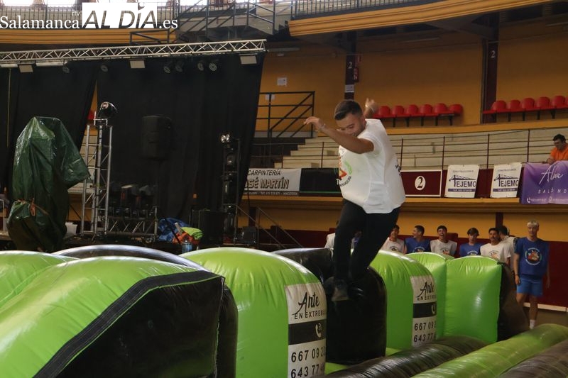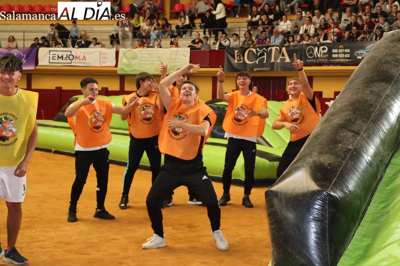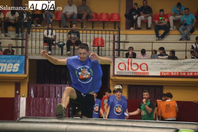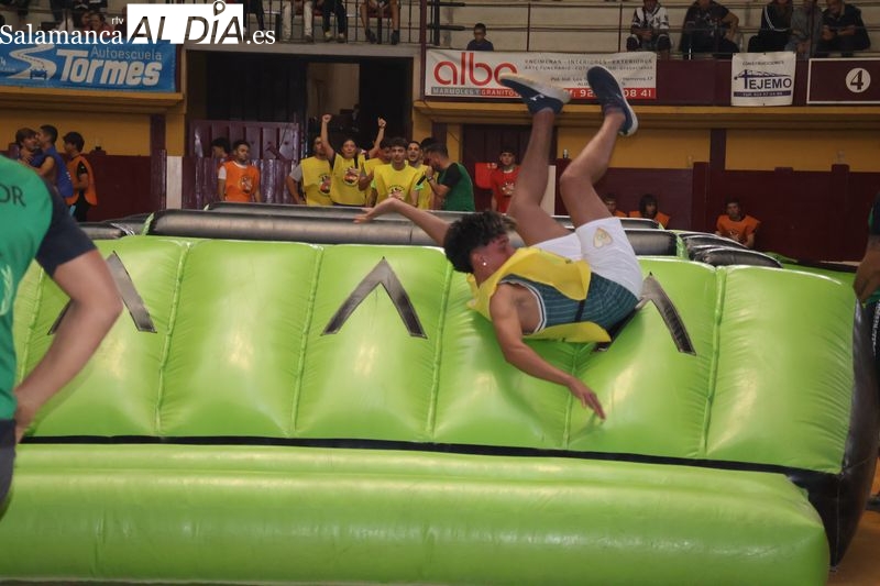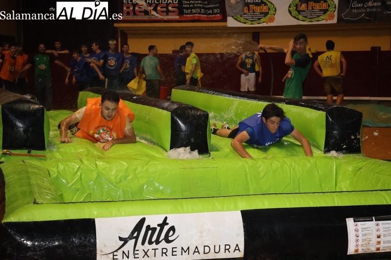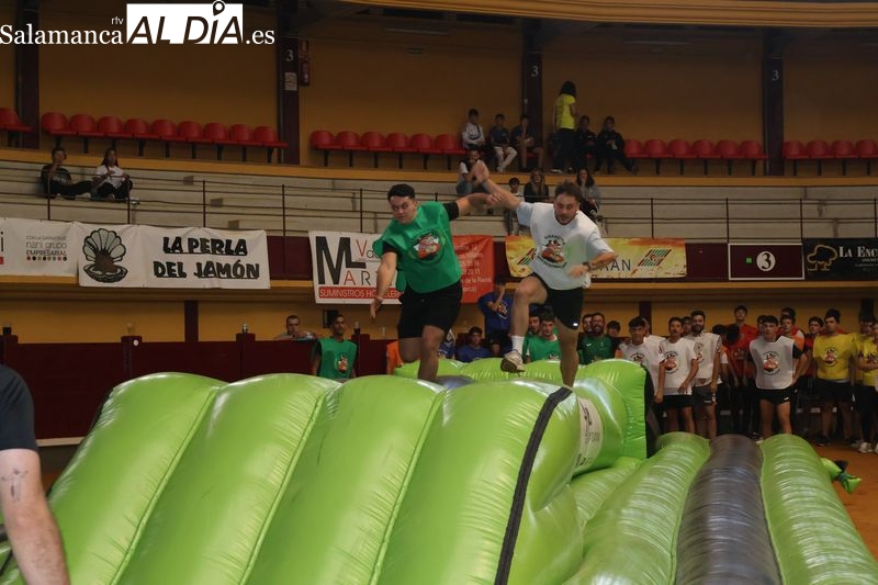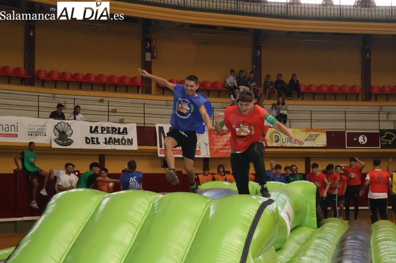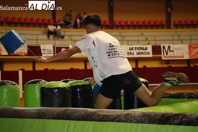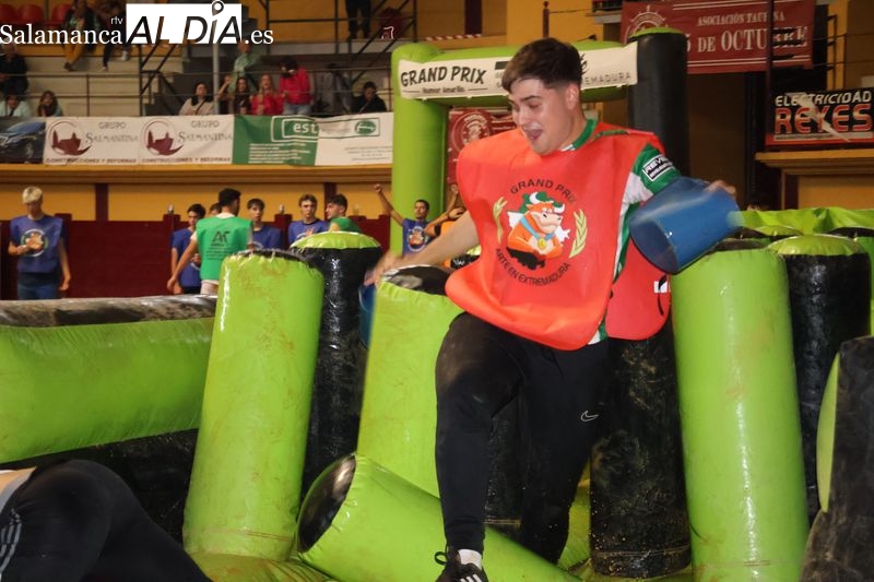 Organizada por Arte en Extremadura, la actividad reunió a seis equipos formados por jóvenes del municipio, que compitieron con gran entusiasmo en un circuito de pruebas hinchables y retos de habilidad. Identificados por colores —rojo, azul, amarillo, naranja, verde y blanco—, los grupos pusieron todo su empeño en superar obstáculos, mantener el equilibrio, responder preguntas de todo tipo y ganarse los aplausos del público, que no dejó de animar en ningún momento.