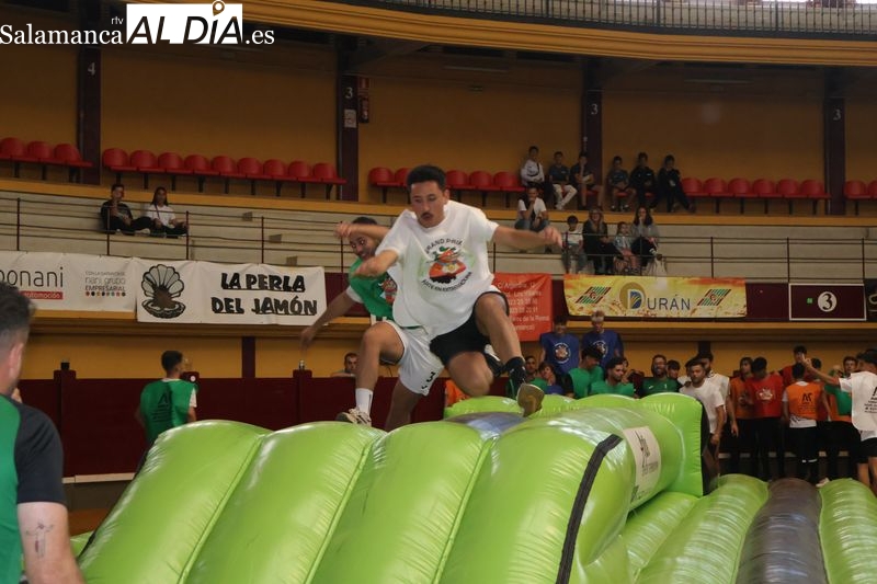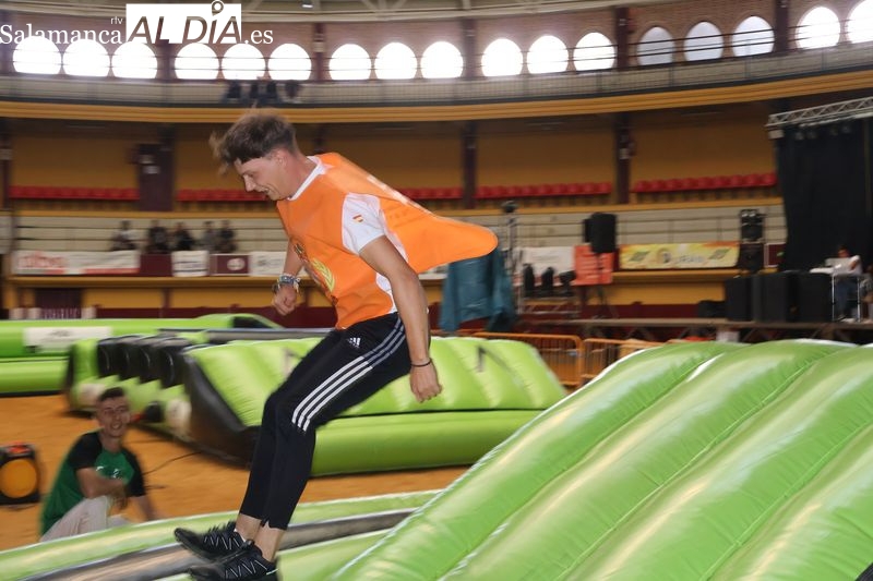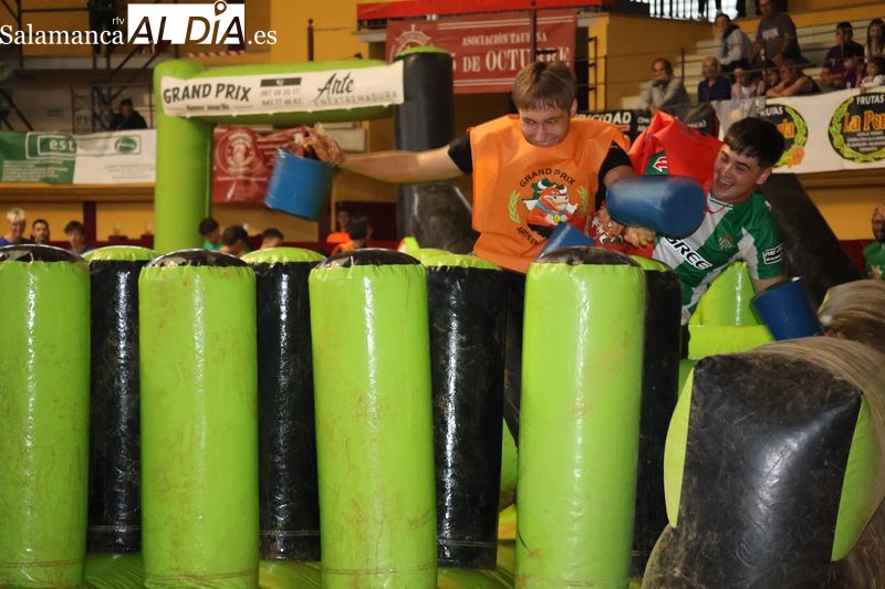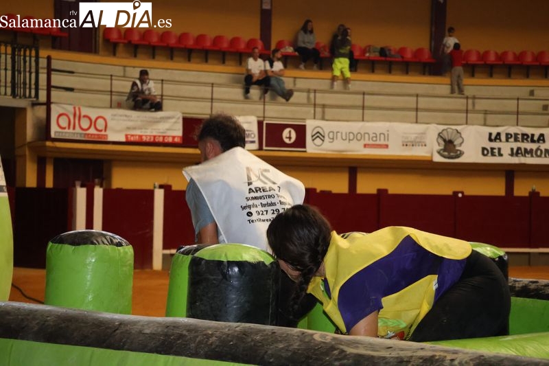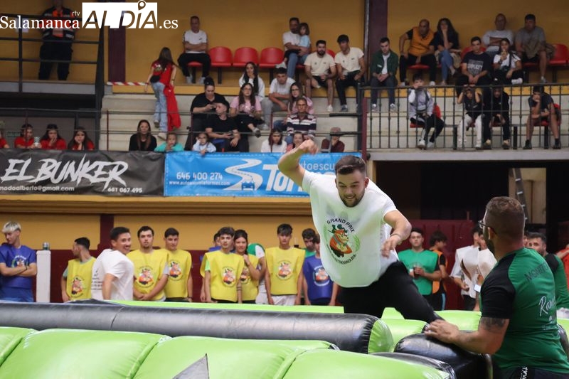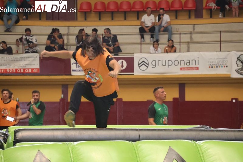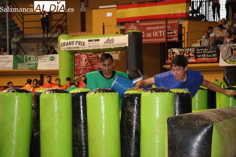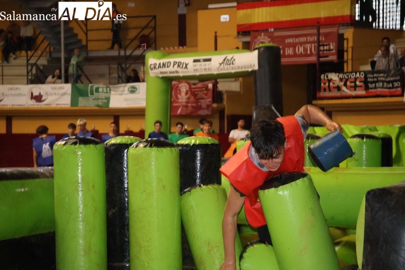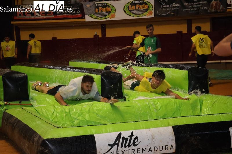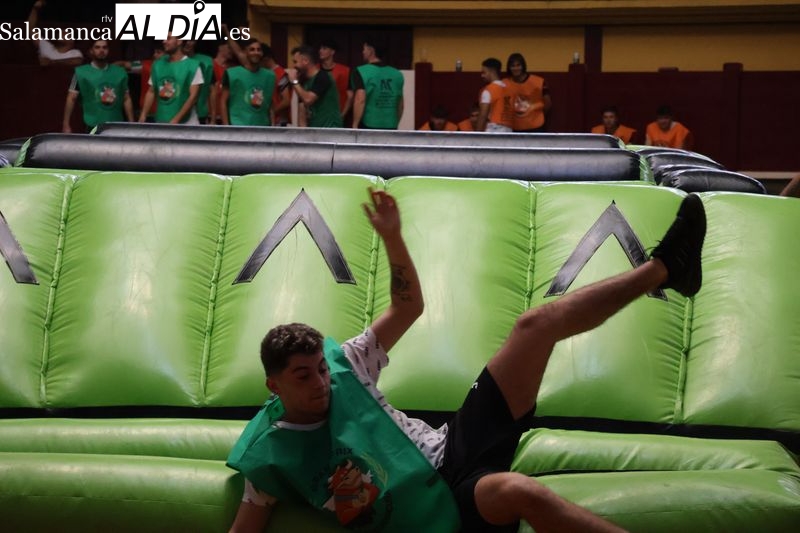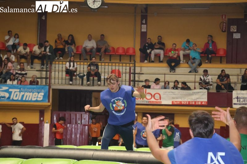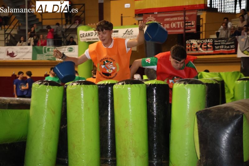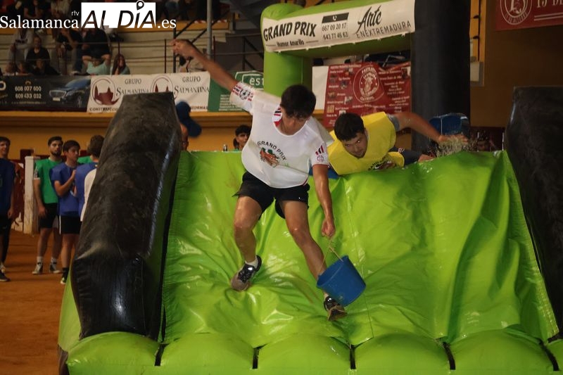 Organizada por Arte en Extremadura, la actividad reunió a seis equipos formados por jóvenes del municipio, que compitieron con gran entusiasmo en un circuito de pruebas hinchables y retos de habilidad. Identificados por colores —rojo, azul, amarillo, naranja, verde y blanco—, los grupos pusieron todo su empeño en superar obstáculos, mantener el equilibrio, responder preguntas de todo tipo y ganarse los aplausos del público, que no dejó de animar en ningún momento.