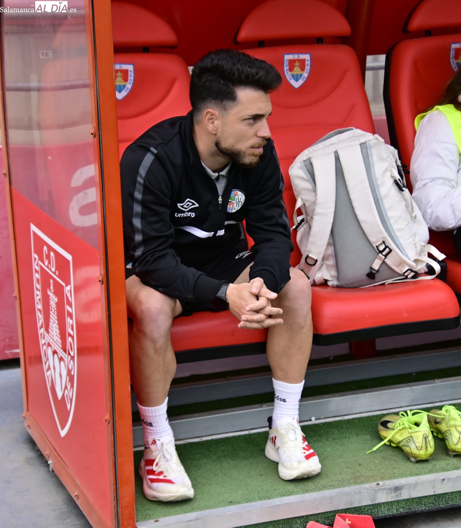 En el once inicial para la cita en Soria, Jorge García ha vuelto a confiar en Leo Mendes para que ocupase la portería; en defensa le han arropado Parra, Murua, Marotías y Pulpón; por delante, Alba, que ha hecho de guardaespaldas de Cristeto y Carrasco con Mancebo y Abraham en las alas; arriba, Javi Delgado ha sido la principal referencia. Todo ello en un esquema con tintes de 4-1-4-1. Enfrente, el mítico Juancho ha sido titular y en el banquillo han estado dos viejos conocidos como Ian Olivera y Dani García, ex de Unionistas.