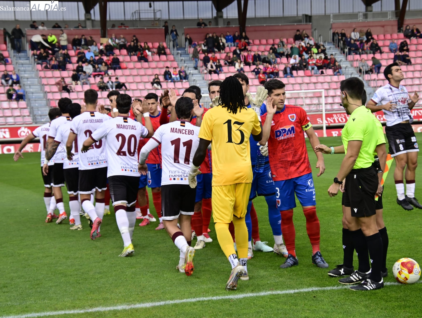 Con el paso por los vestuarios, en el 48', pérdida muy tonta del Salamanca UDS al borde del área, centro de Jony y gol de Peña. Cambio de papeles en el 2-0 con respecto al 1-0. Muy mal Leo Mendes en la acción, que ha podido despejar al balón, pero se ha hecho un lío y no le ha dado. No obstante, en la jugada siguiente, Cristian le ha hecho una durísima entrada a Parra y ha visto la roja directa. Oasis en el desierto para los del Helmántico.