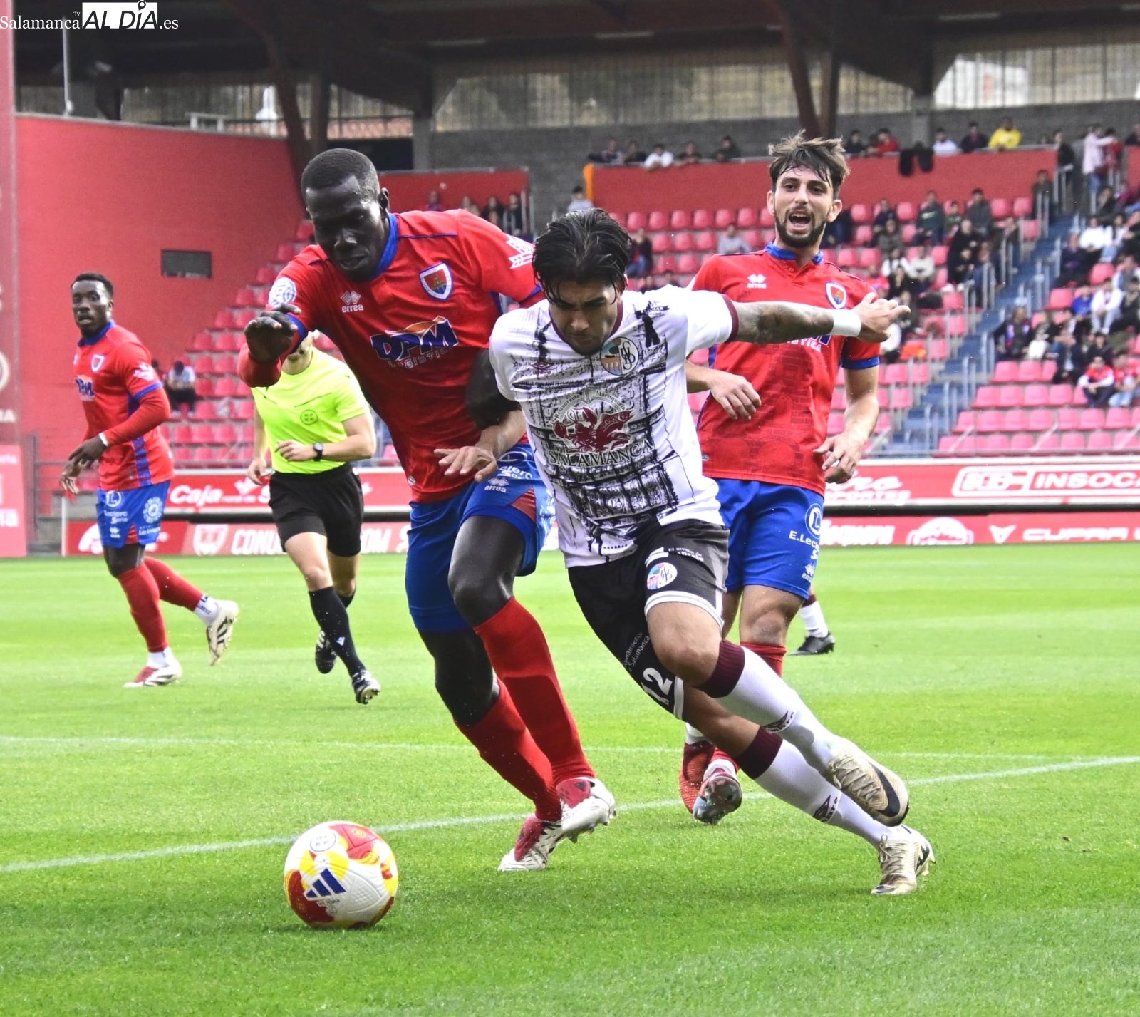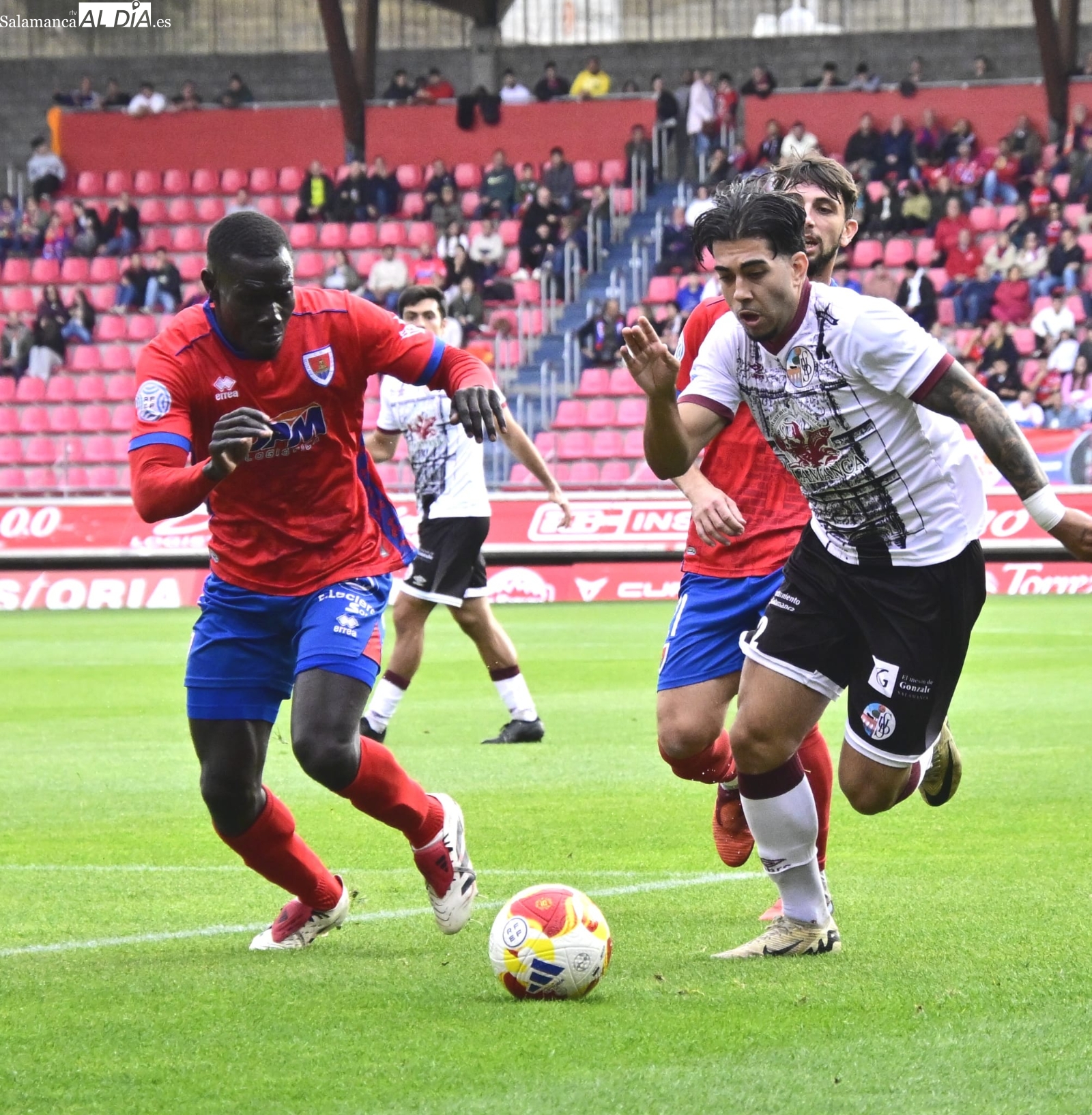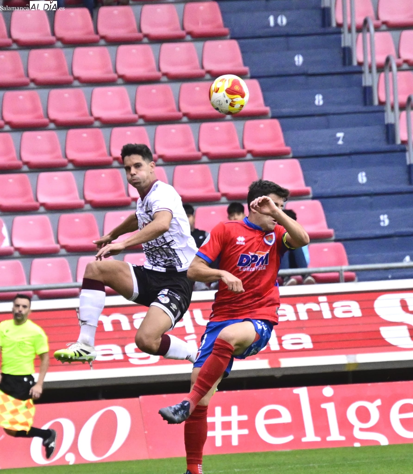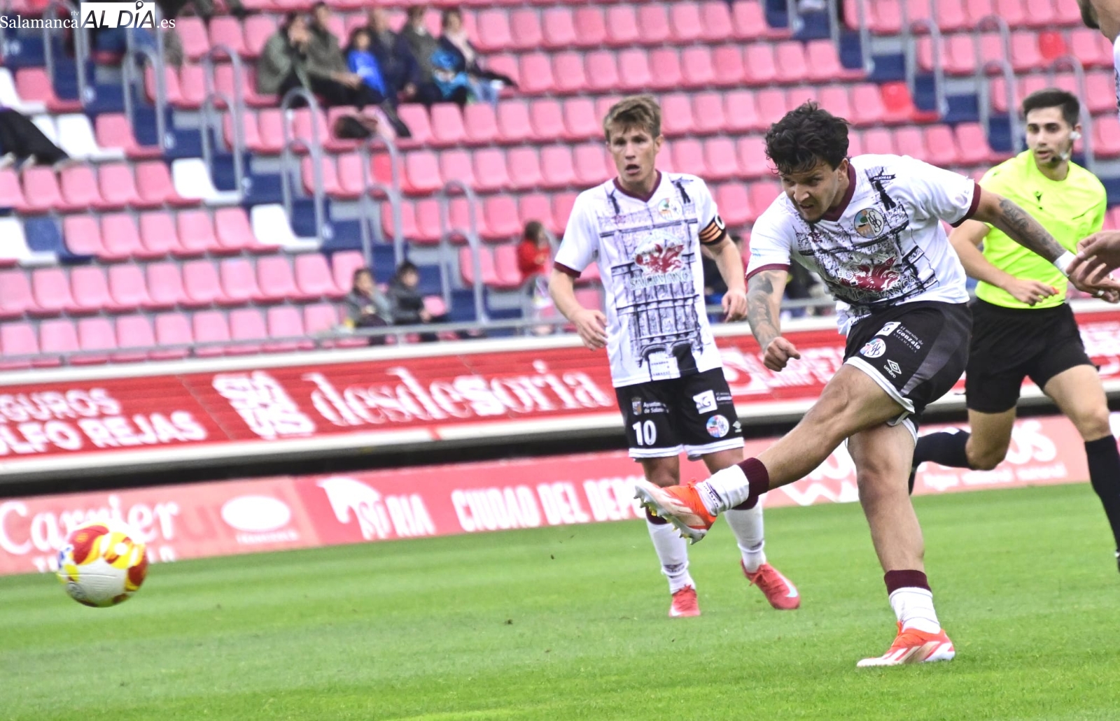 17 minutos es lo que ha tardado el conjunto charro en generar algo de peligro en una contra que ha cabeceado mal Javi Delgado. No ha salido nada fino el Salamanca UDS y lo ha pagado. Malas sensaciones y hora de despertar de la siesta. Asimismo, la cosa no ha cambiado y a la media hora casi cae el segundo de los sorianos con un disparo cruzado de Bonilla que ha lamido el palo izquierdo. Juancho también lo ha probado. A partir de ahí, paso al frente de los visitantes, que han podido empatar en un córner si no llega a ser por el mal cabezazo -completamente solo- de Alba al filo del descanso.