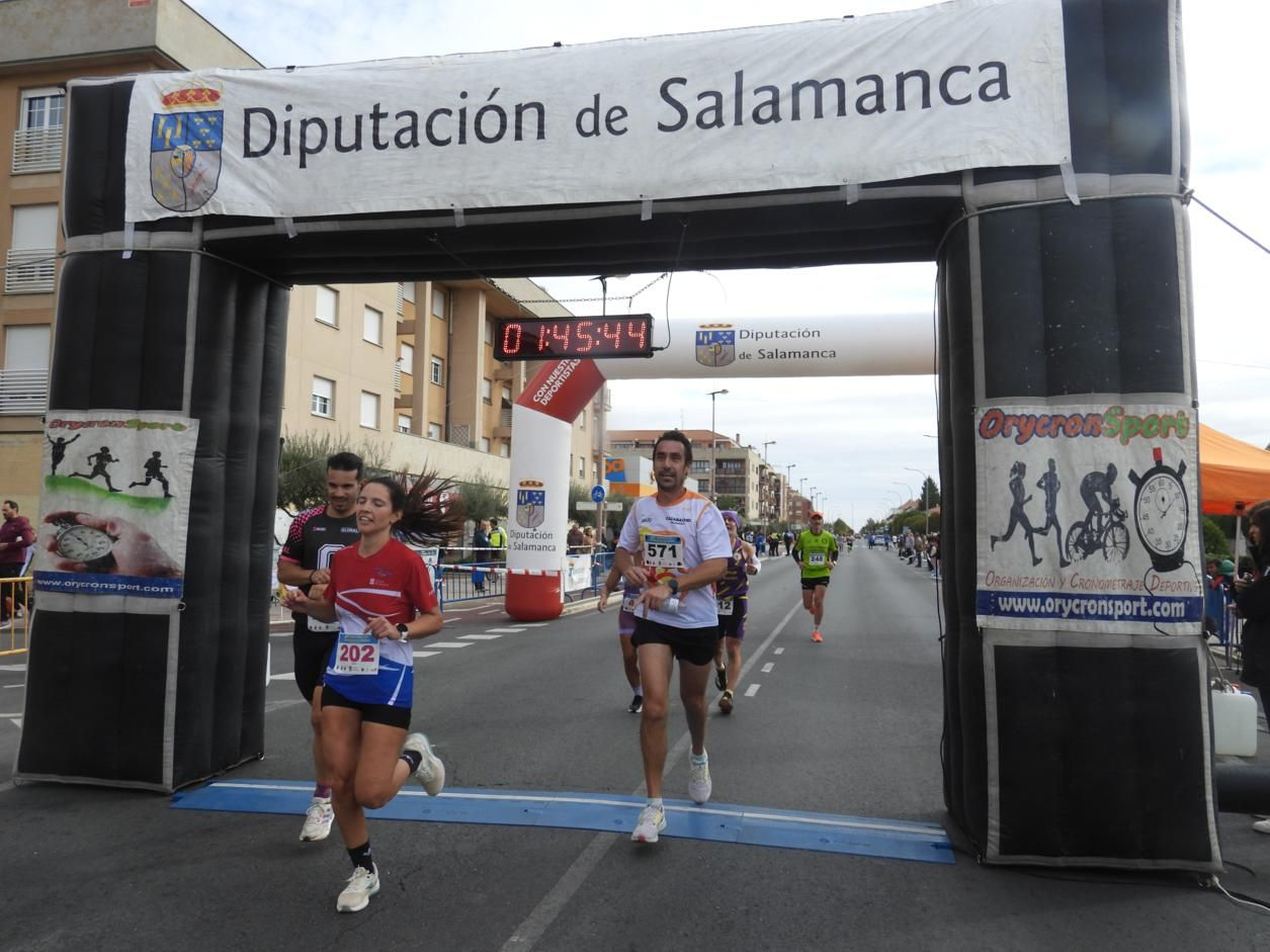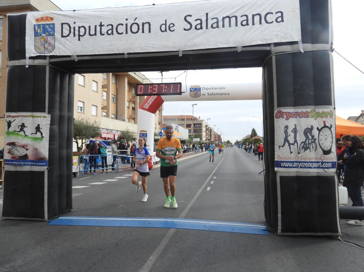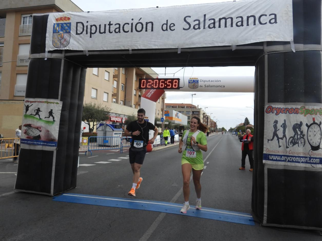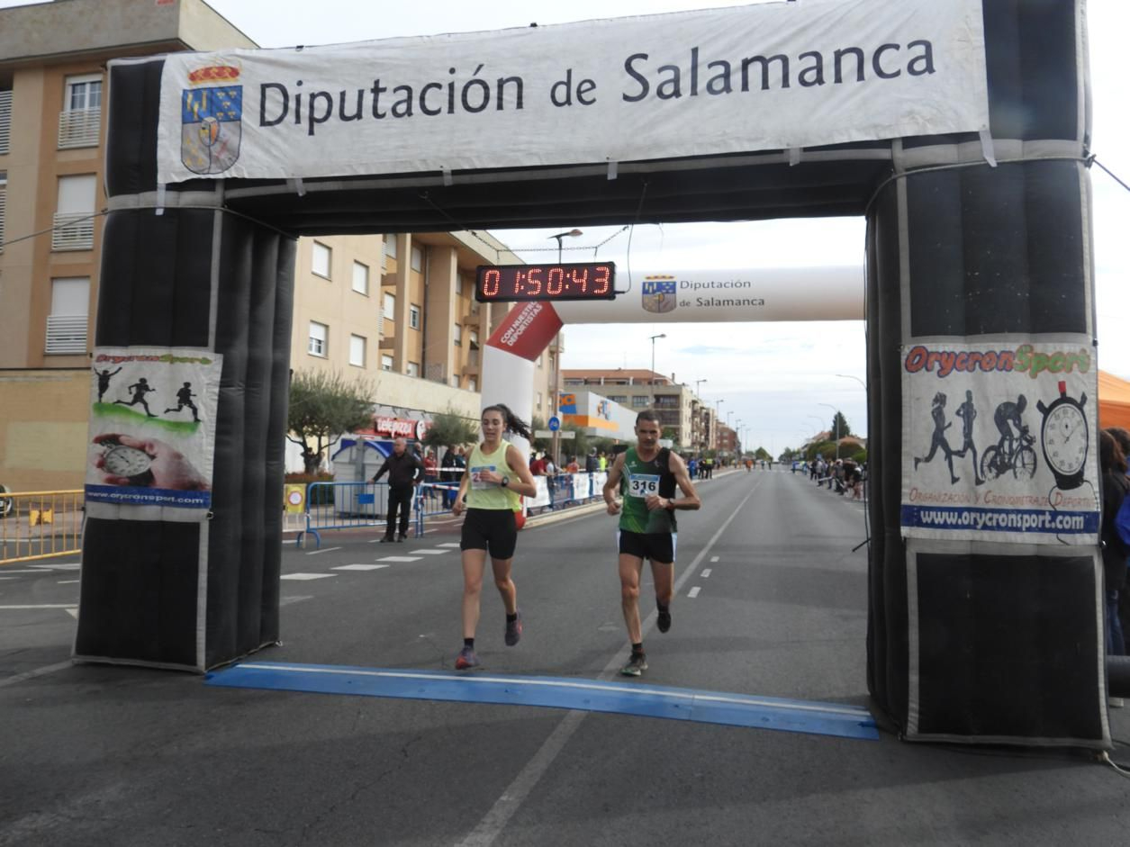 Jesús Prieto y Sandra Santamaría han sido los primeros de sus categorías en pasar por línea de meta, dos corredores que se han acabado llevando el oro en una prueba donde el primero ha pasado por meta con un tiempo de 1:12:10 y la segunda parando el crono en 1:27:51.
