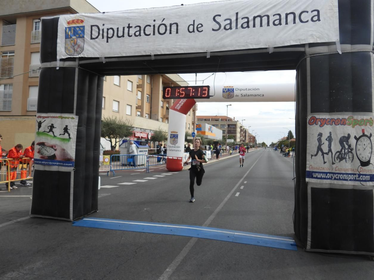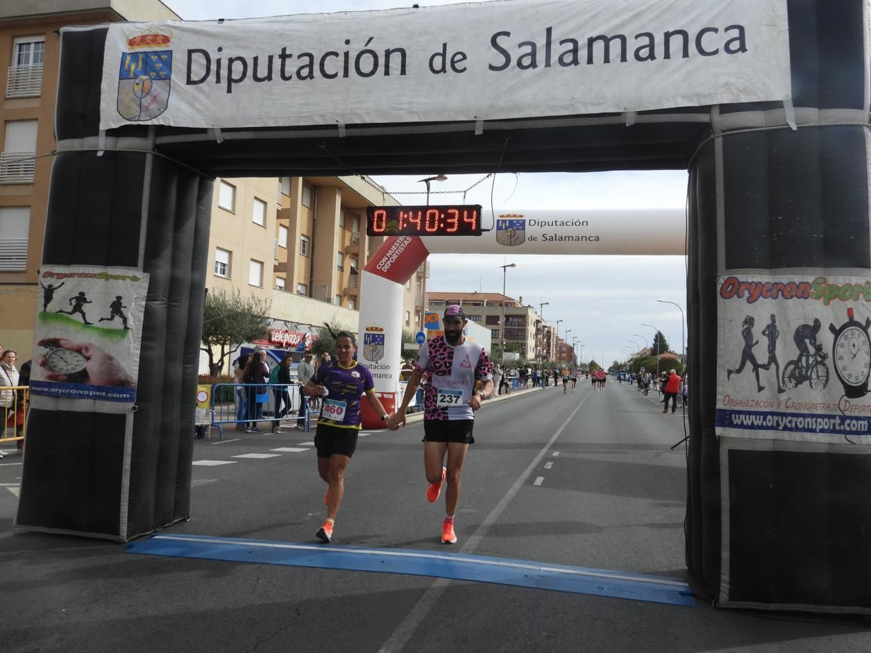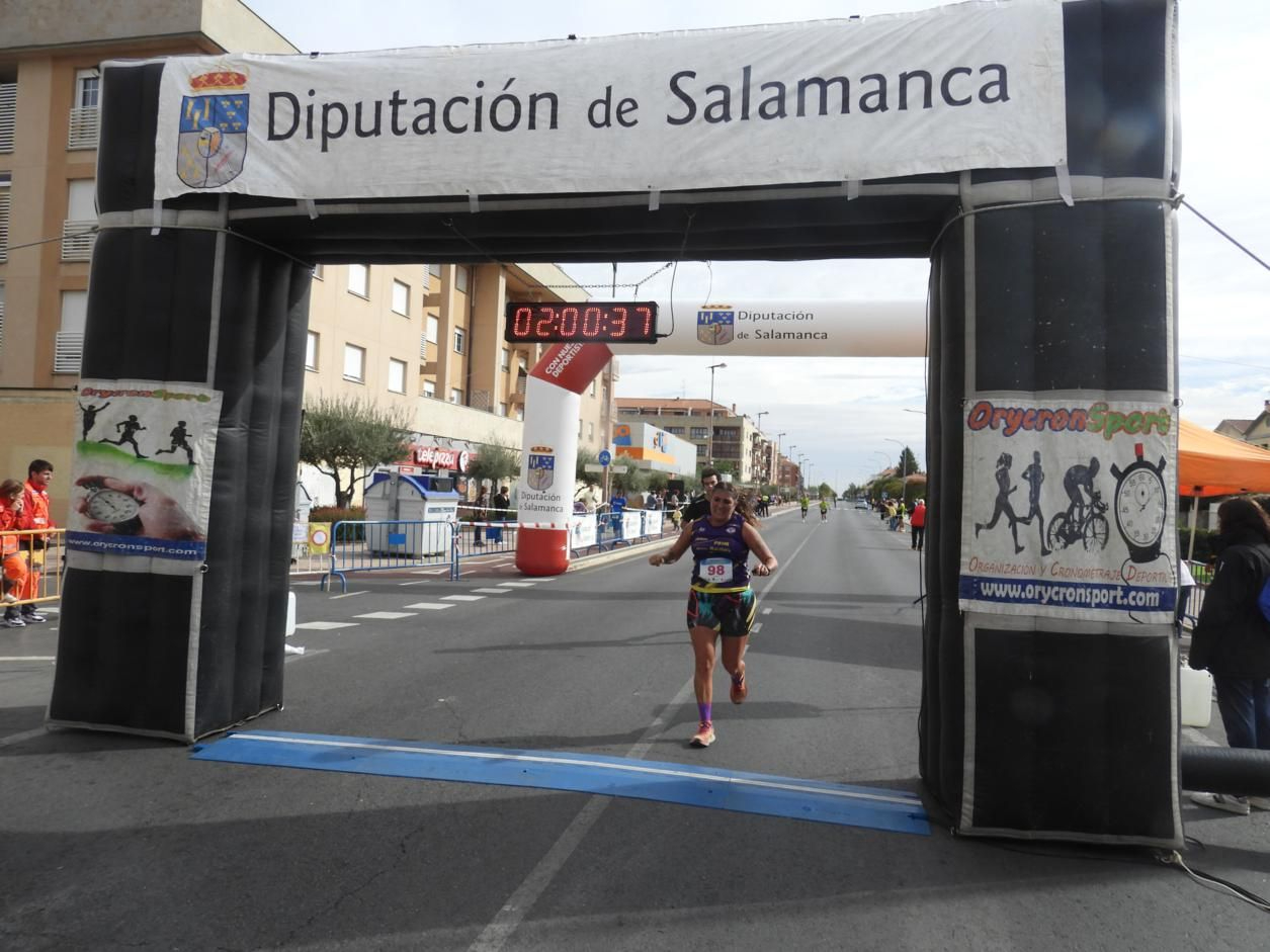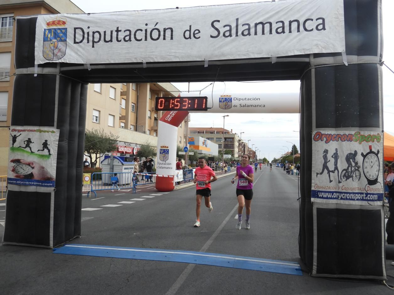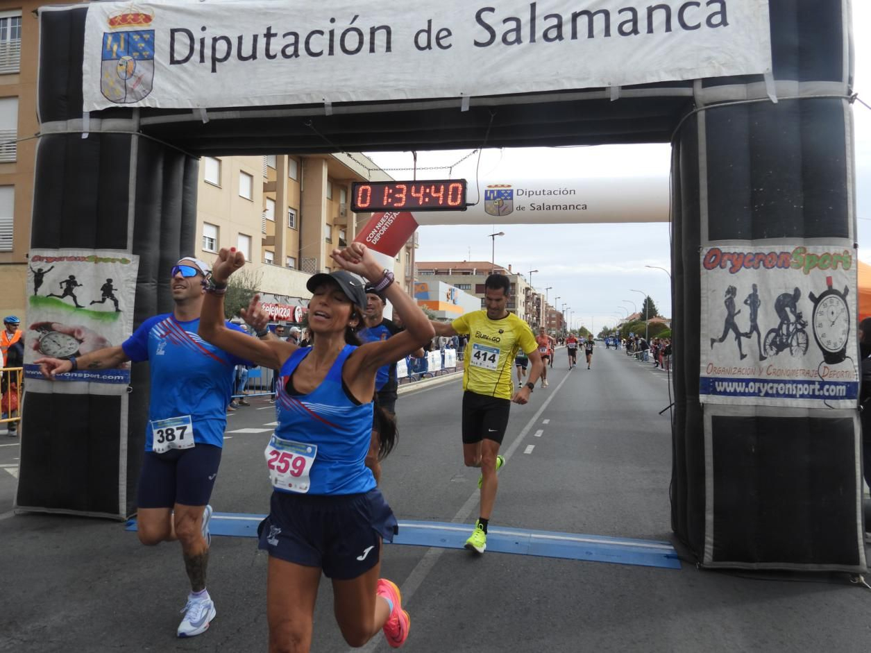 Jesús Prieto y Sandra Santamaría han sido los primeros de sus categorías en pasar por línea de meta, dos corredores que se han acabado llevando el oro en una prueba donde el primero ha pasado por meta con un tiempo de 1:12:10 y la segunda parando el crono en 1:27:51.
