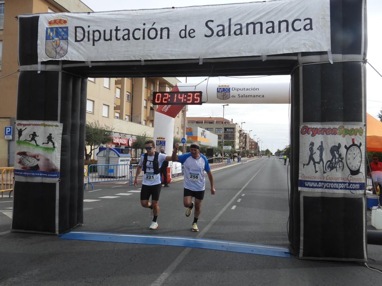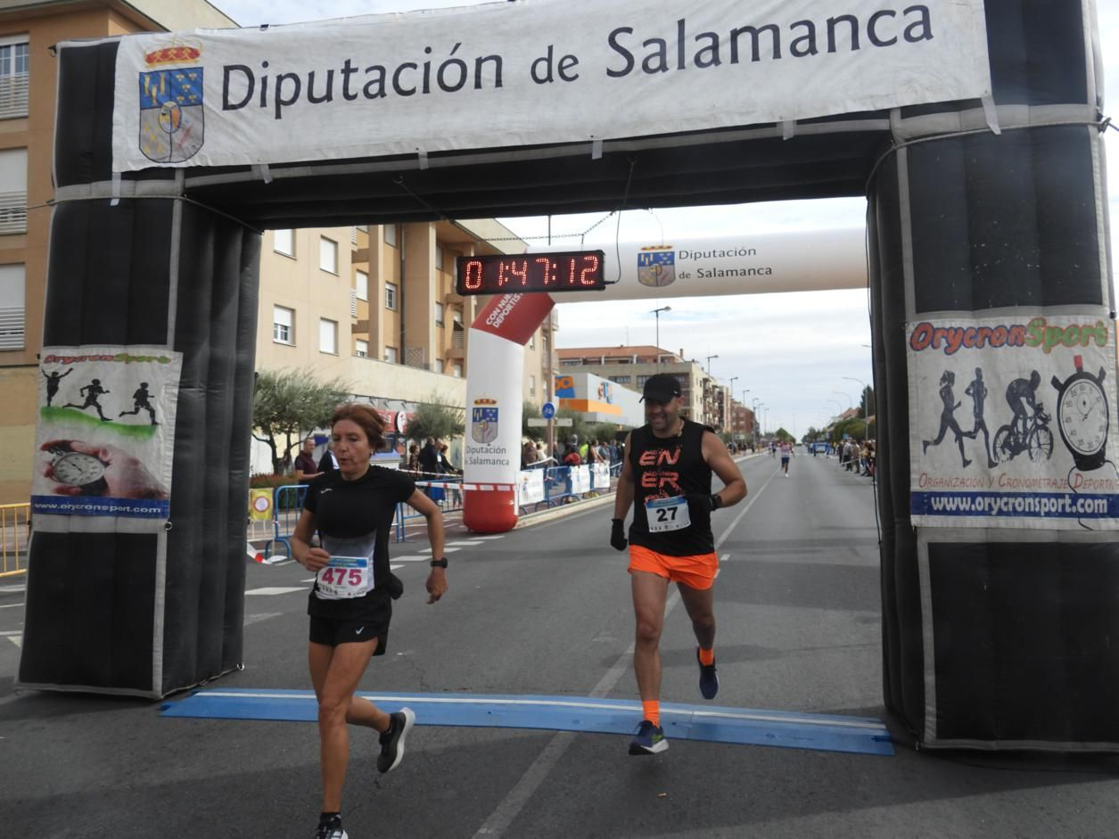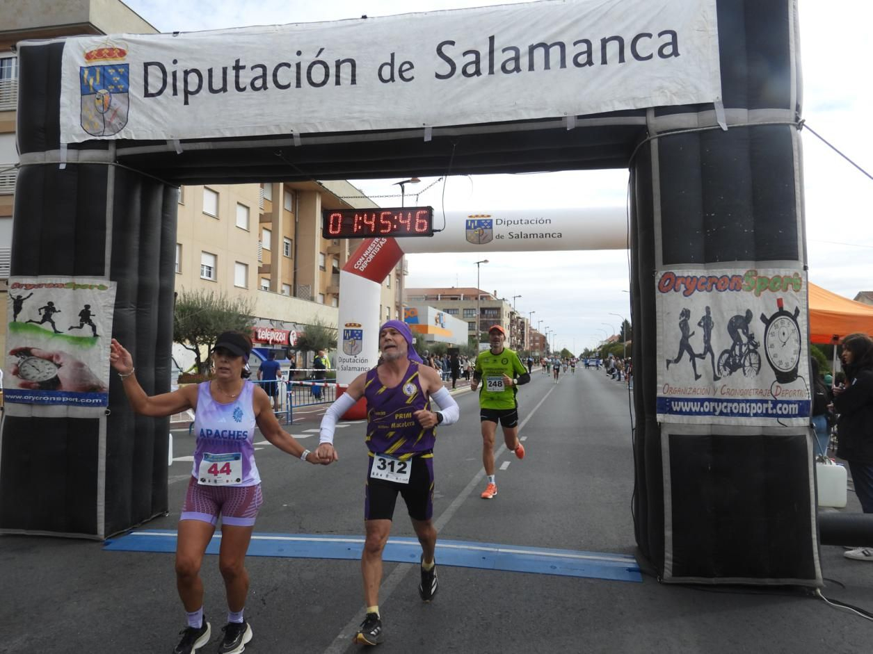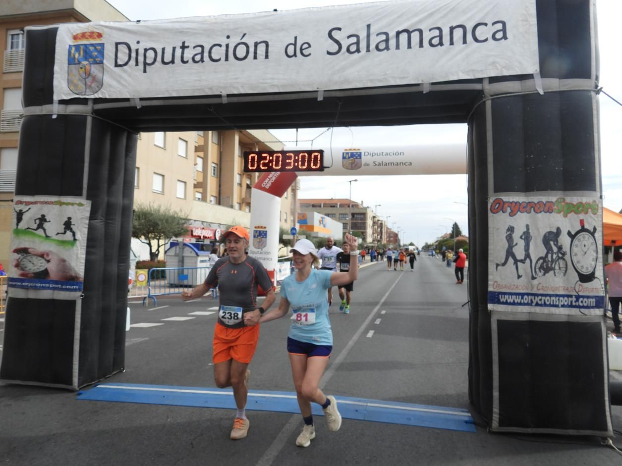 Jesús Prieto y Sandra Santamaría han sido los primeros de sus categorías en pasar por línea de meta, dos corredores que se han acabado llevando el oro en una prueba donde el primero ha pasado por meta con un tiempo de 1:12:10 y la segunda parando el crono en 1:27:51.