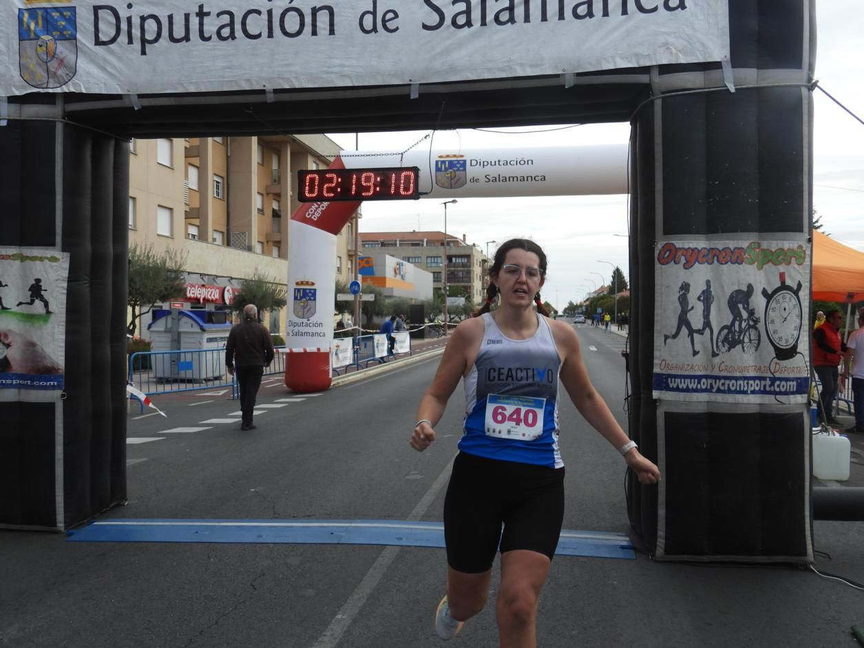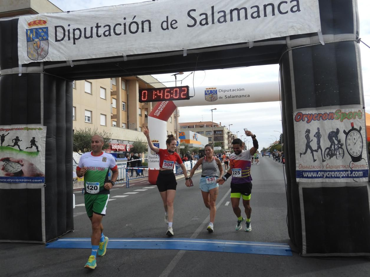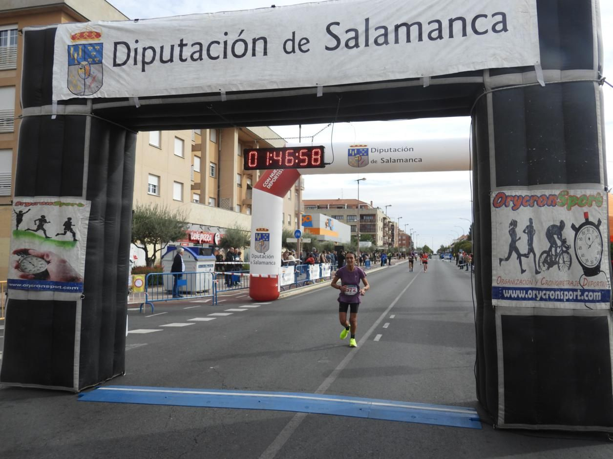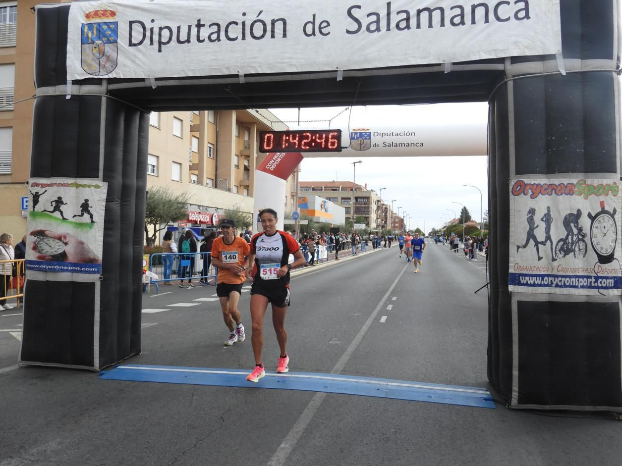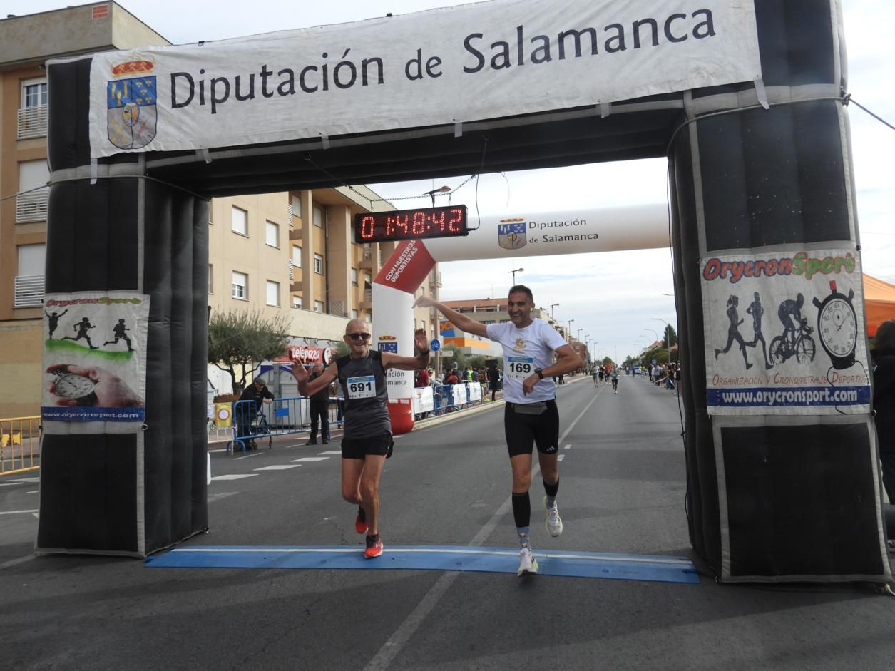 Jesús Prieto y Sandra Santamaría han sido los primeros de sus categorías en pasar por línea de meta, dos corredores que se han acabado llevando el oro en una prueba donde el primero ha pasado por meta con un tiempo de 1:12:10 y la segunda parando el crono en 1:27:51.