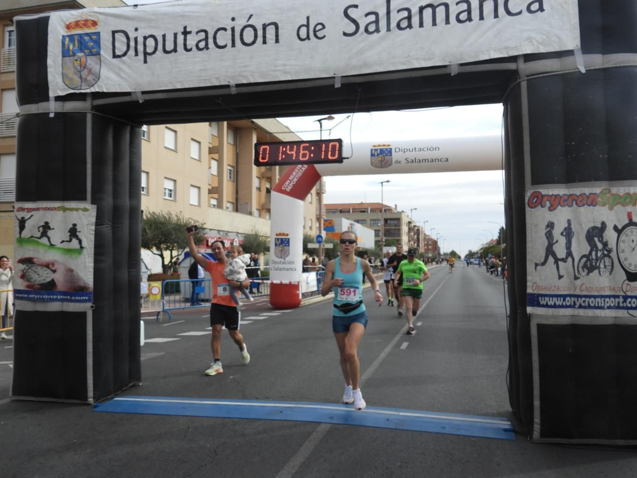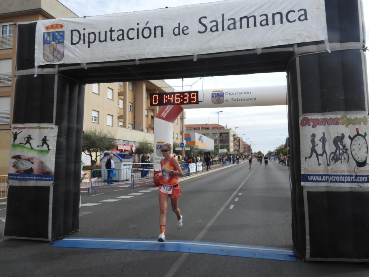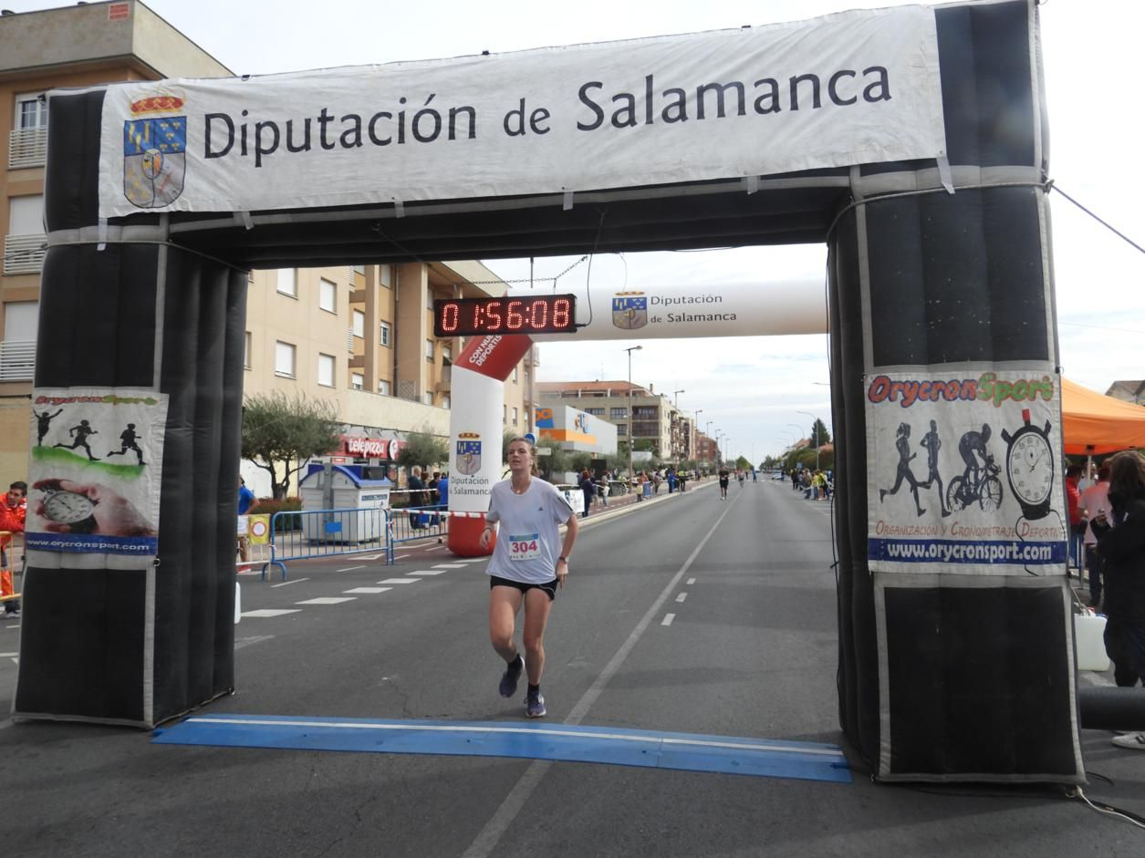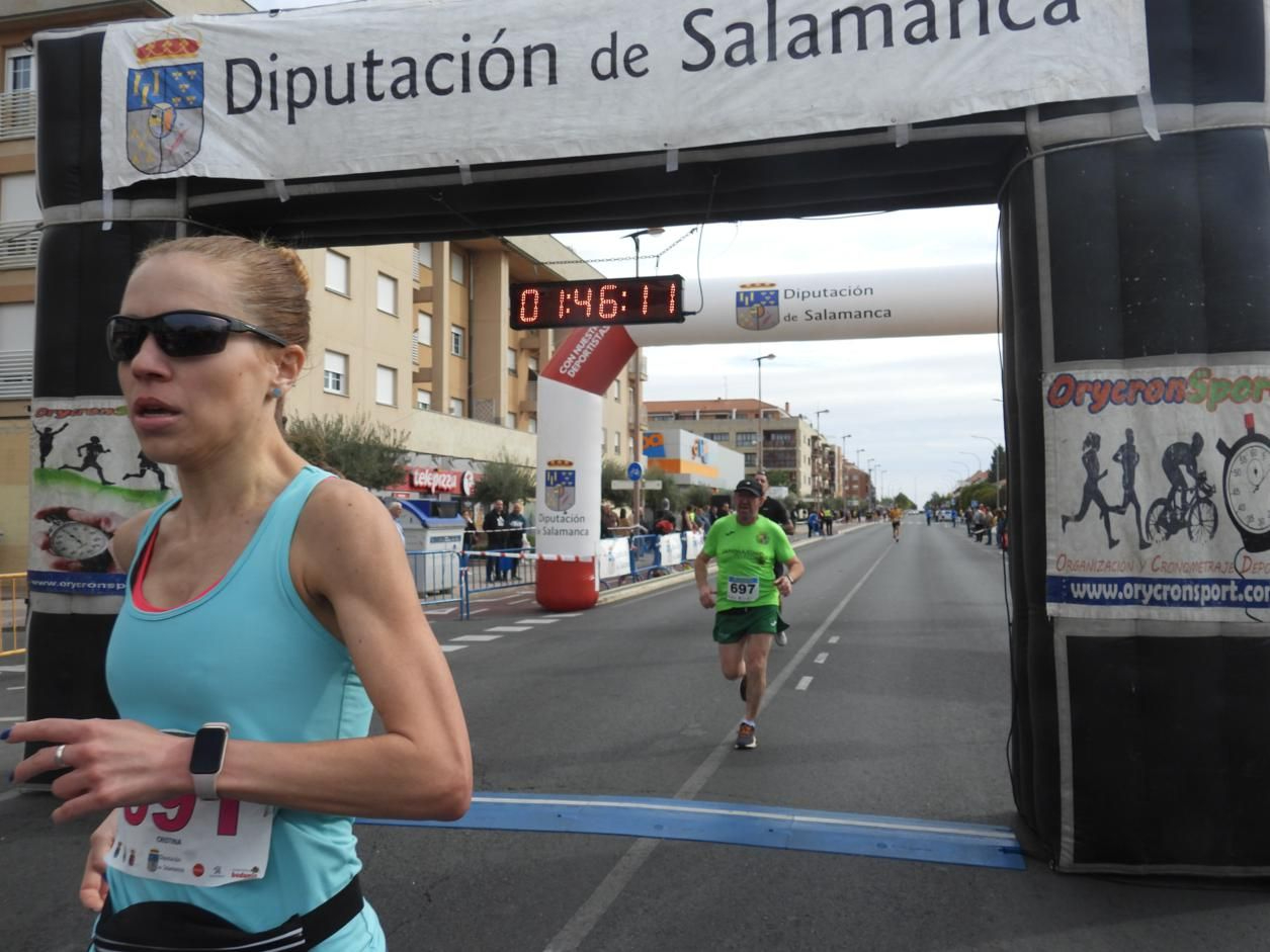Jesús Prieto y Sandra Santamaría han sido los primeros de sus categorías en pasar por línea de meta, dos corredores que se han acabado llevando el oro en una prueba donde el primero ha pasado por meta con un tiempo de 1:12:10 y la segunda parando el crono en 1:27:51.