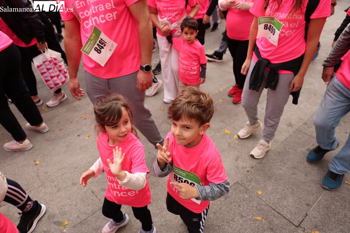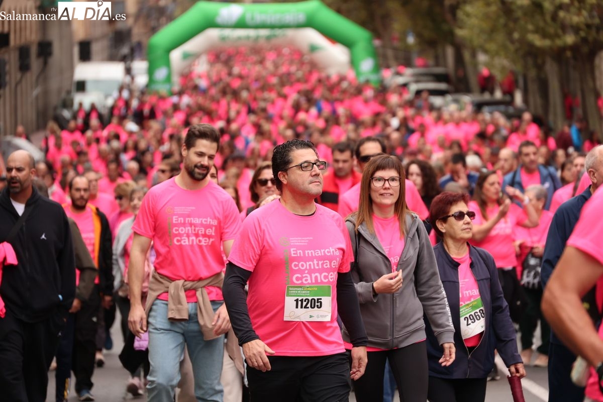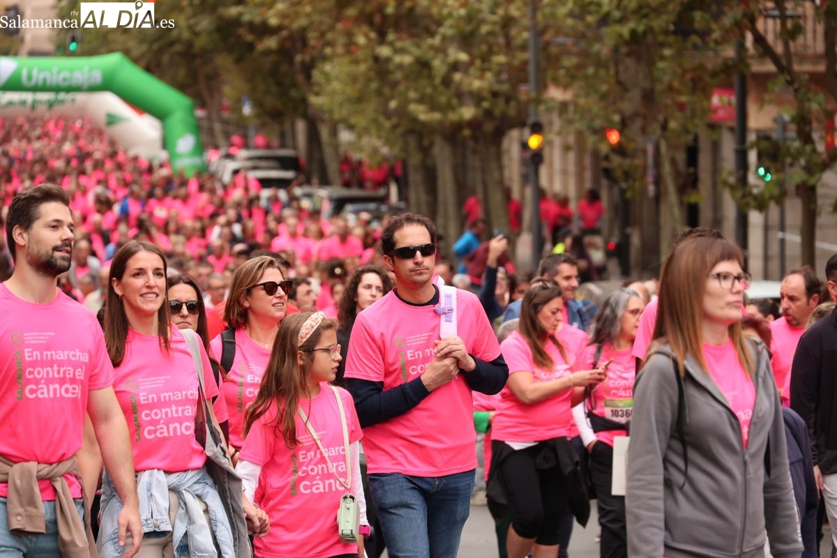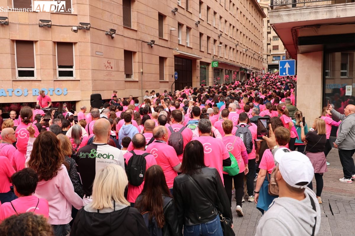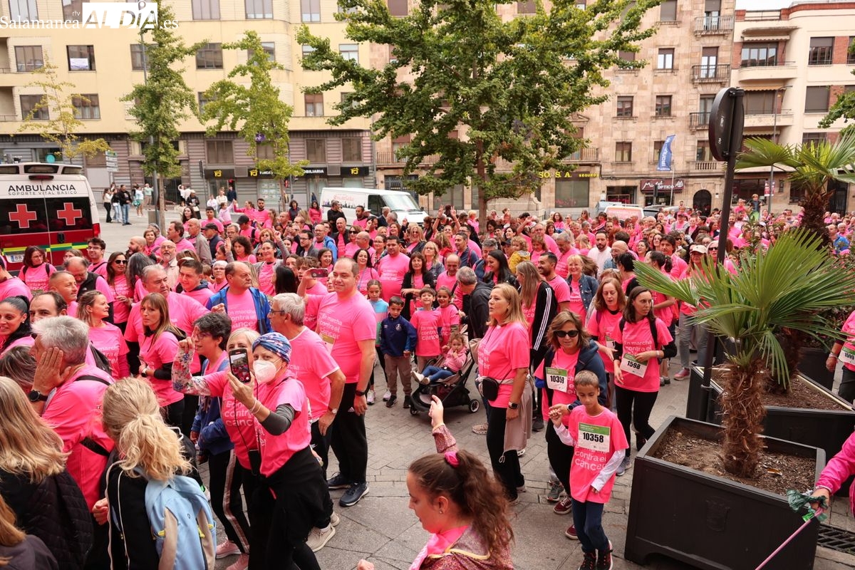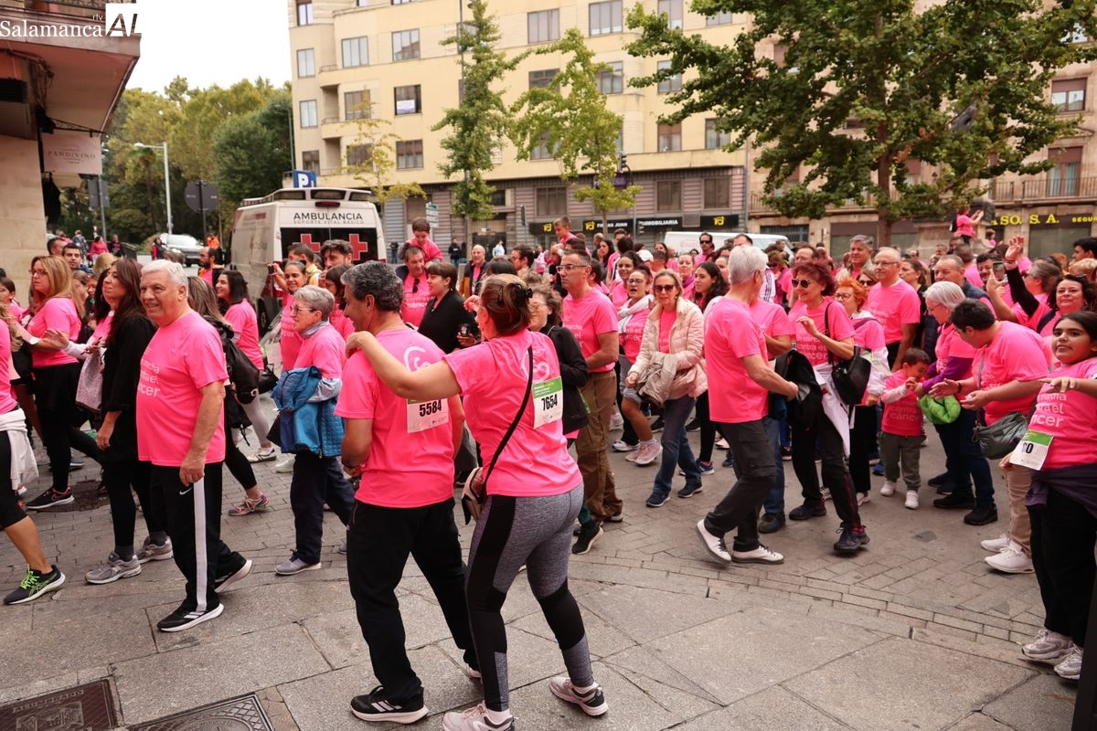 Salamanca se ha vuelto a teñir de rosa en la XI Marcha Contra el Cáncer. El evento, que ha comenzado a las 10:30 horas, ha sido un recorrido accesible de 6 kilómetros desde la iglesia del Arrabal hasta la Plaza Mayor. El objetivo es claro: sumar recursos para la investigación y contribuir a alcanzar la meta del 70% de supervivencia en cáncer para el año 2030.