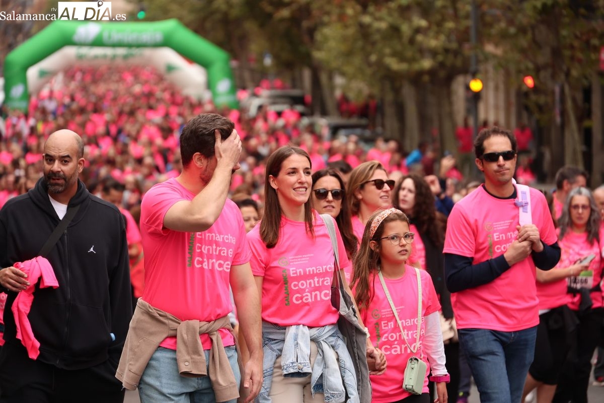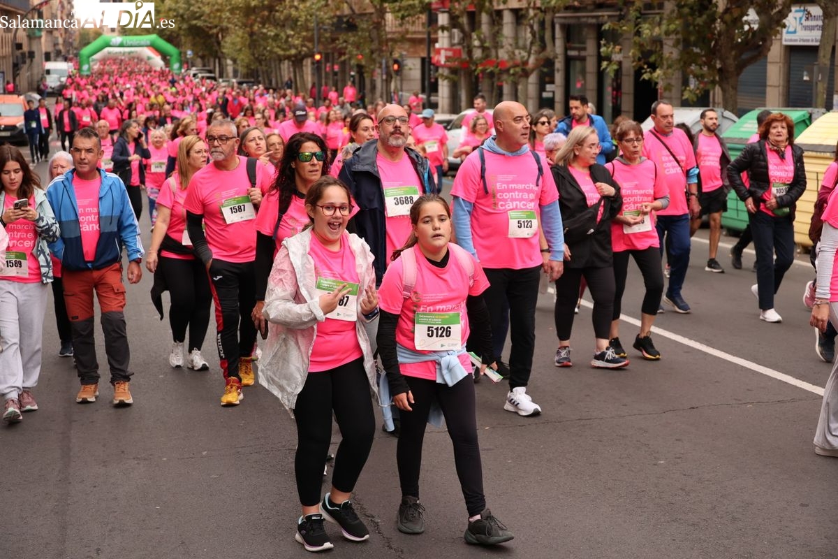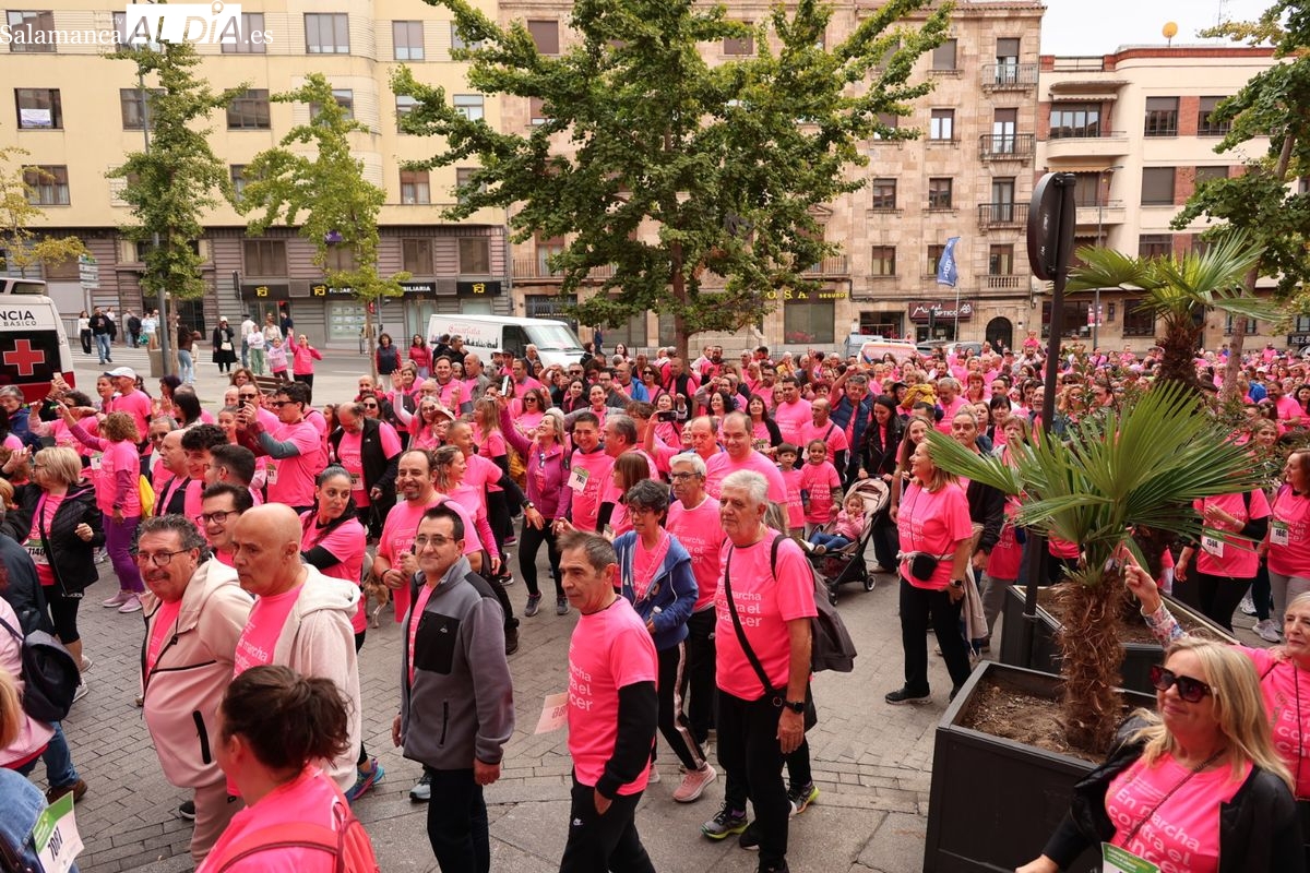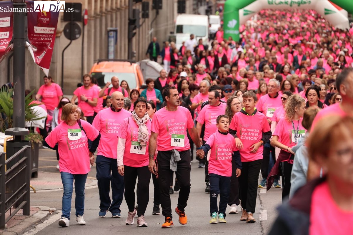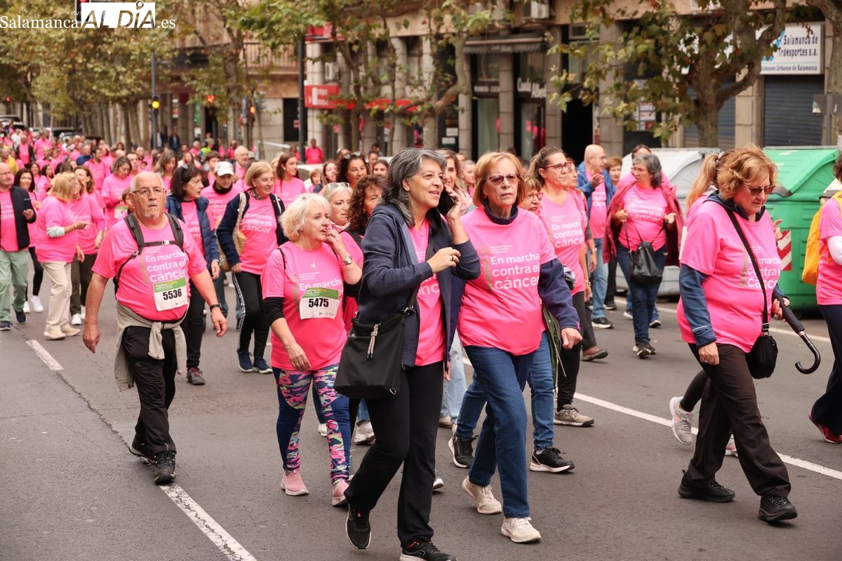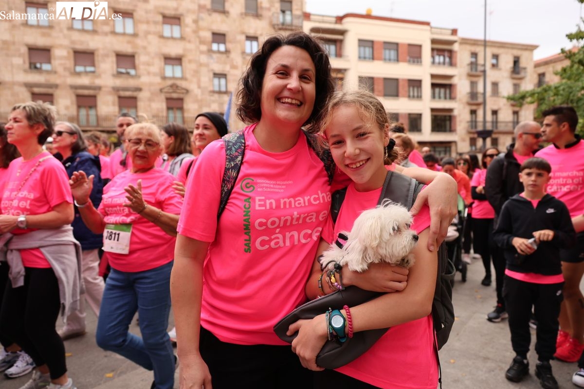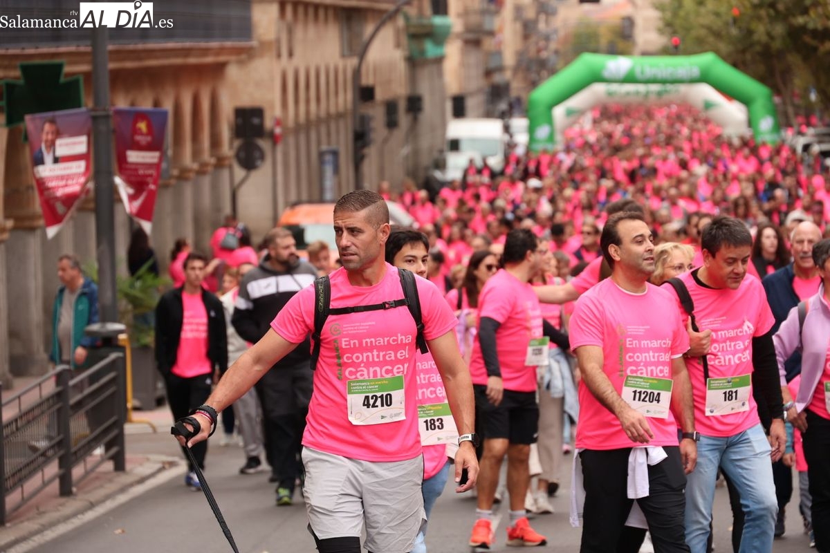 Salamanca se ha vuelto a teñir de rosa en la XI Marcha Contra el Cáncer. El evento, que ha comenzado a las 10:30 horas, ha sido un recorrido accesible de 6 kilómetros desde la iglesia del Arrabal hasta la Plaza Mayor. El objetivo es claro: sumar recursos para la investigación y contribuir a alcanzar la meta del 70% de supervivencia en cáncer para el año 2030.