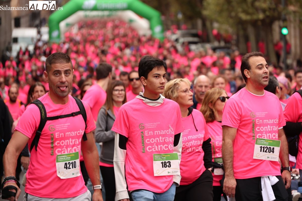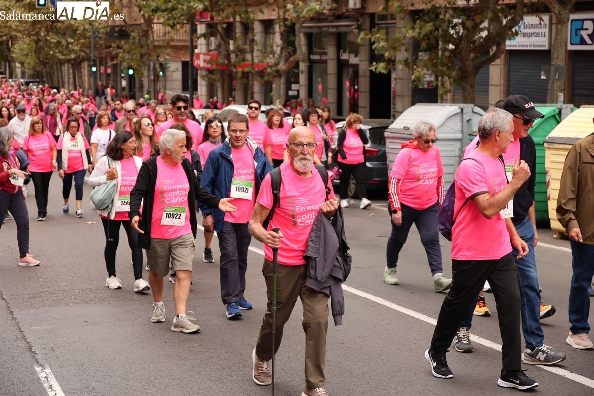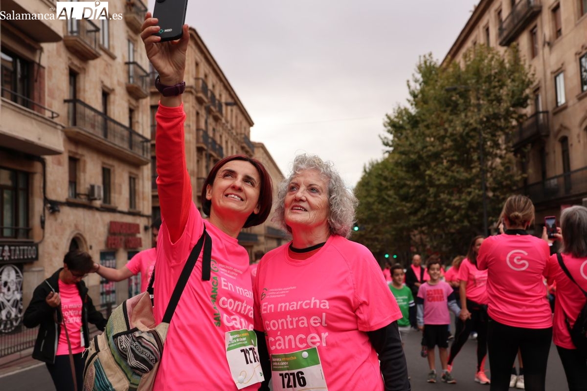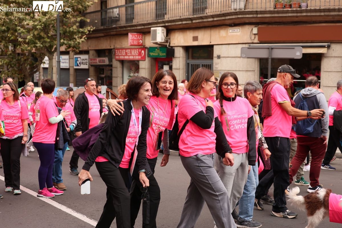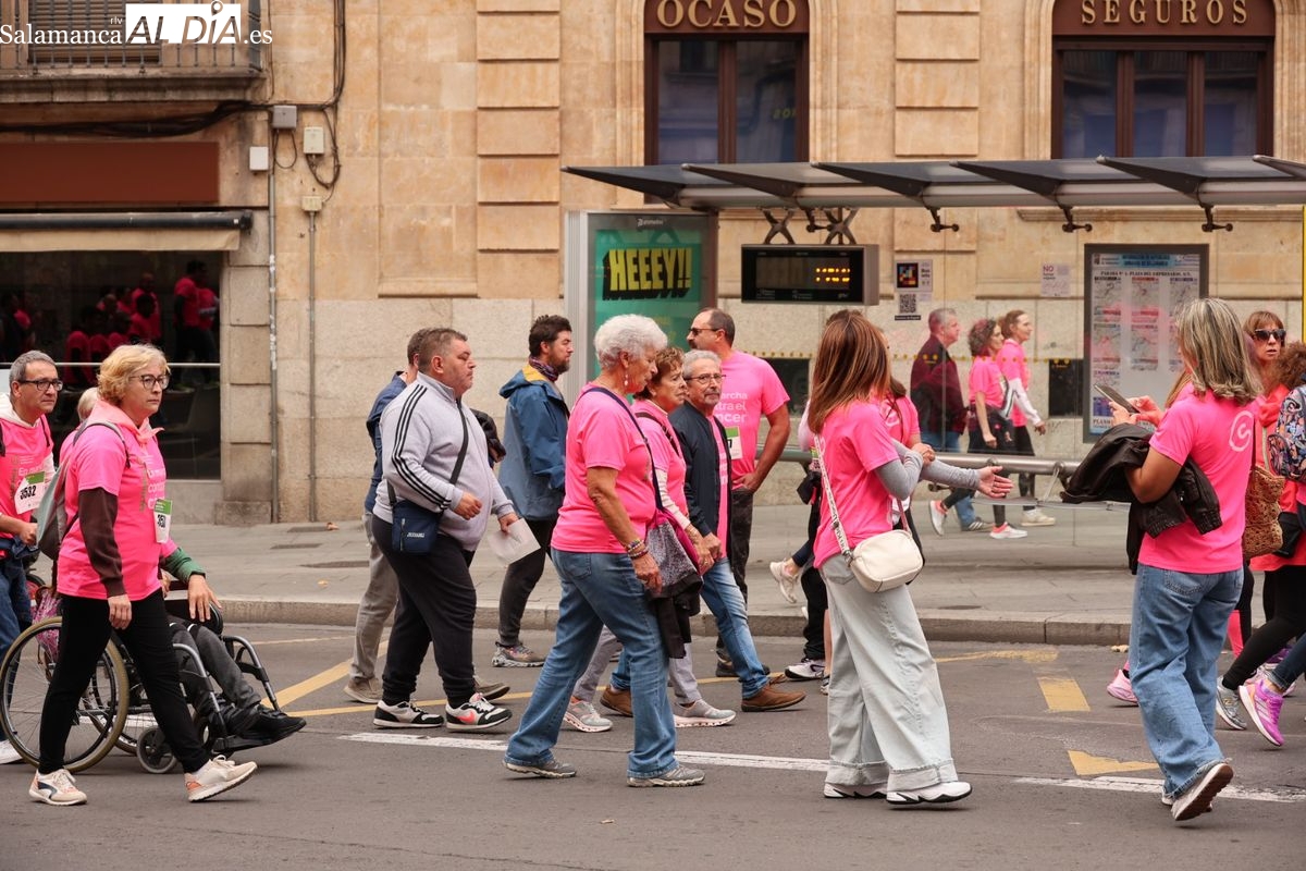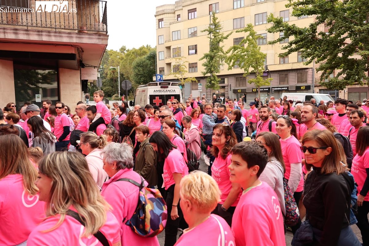Salamanca se ha vuelto a teñir de rosa en la XI Marcha Contra el Cáncer. El evento, que ha comenzado a las 10:30 horas, ha sido un recorrido accesible de 6 kilómetros desde la iglesia del Arrabal hasta la Plaza Mayor. El objetivo es claro: sumar recursos para la investigación y contribuir a alcanzar la meta del 70% de supervivencia en cáncer para el año 2030.