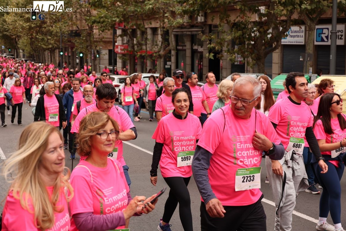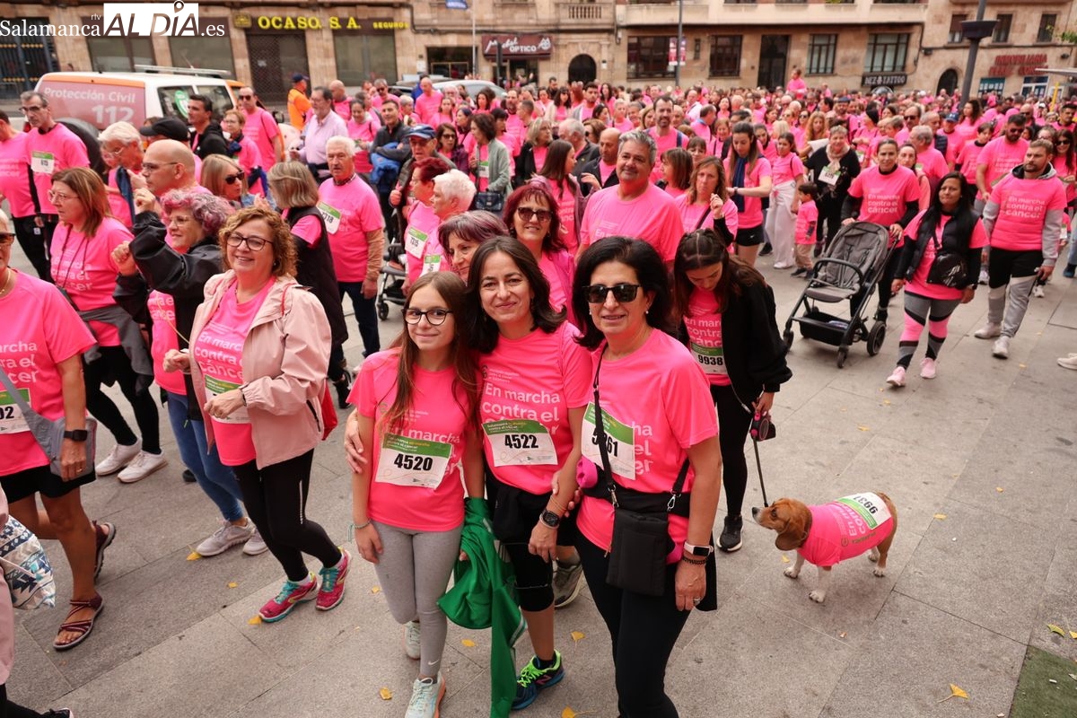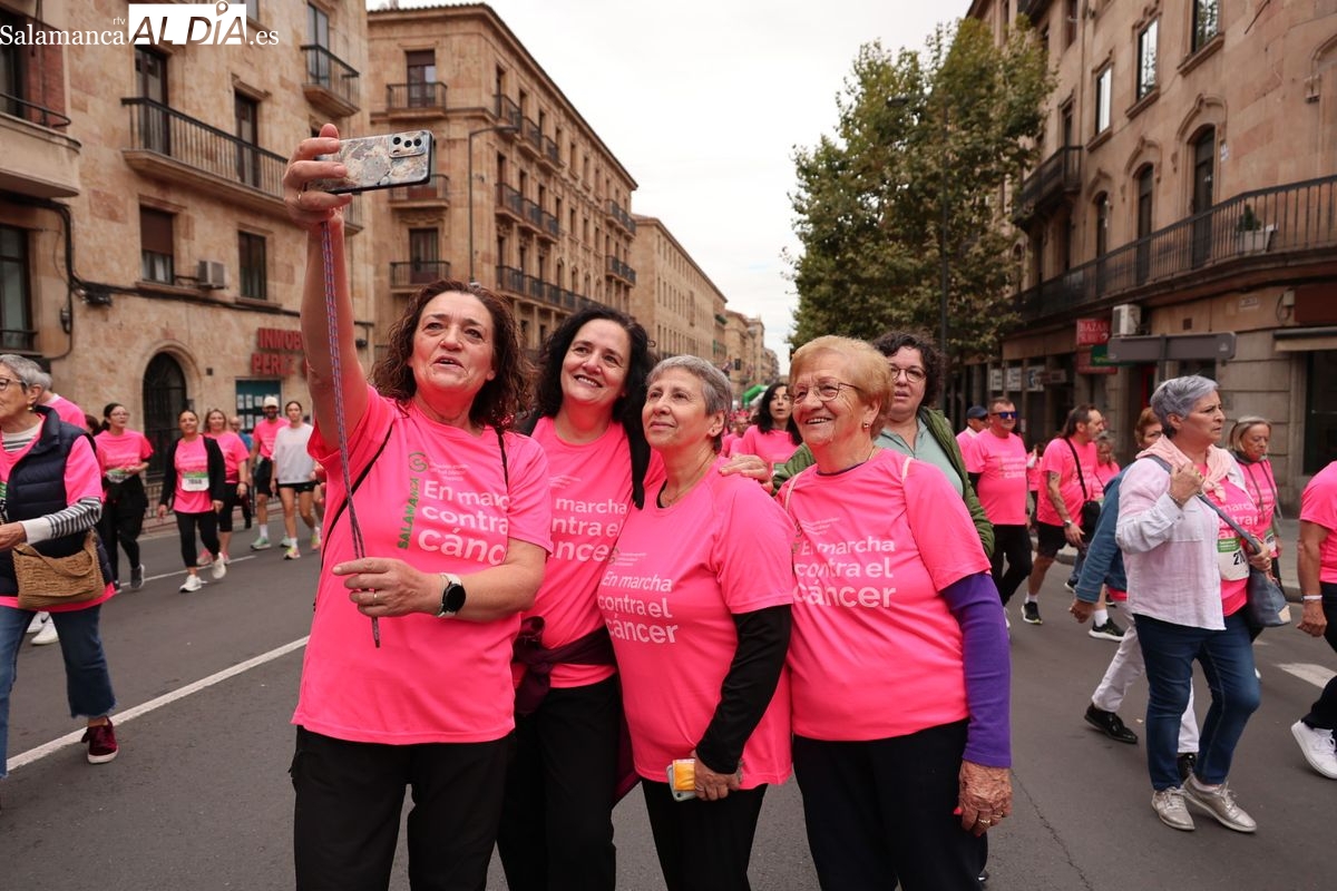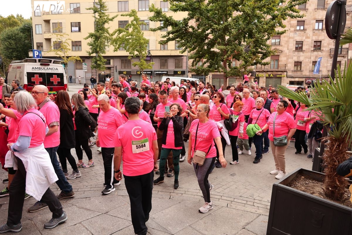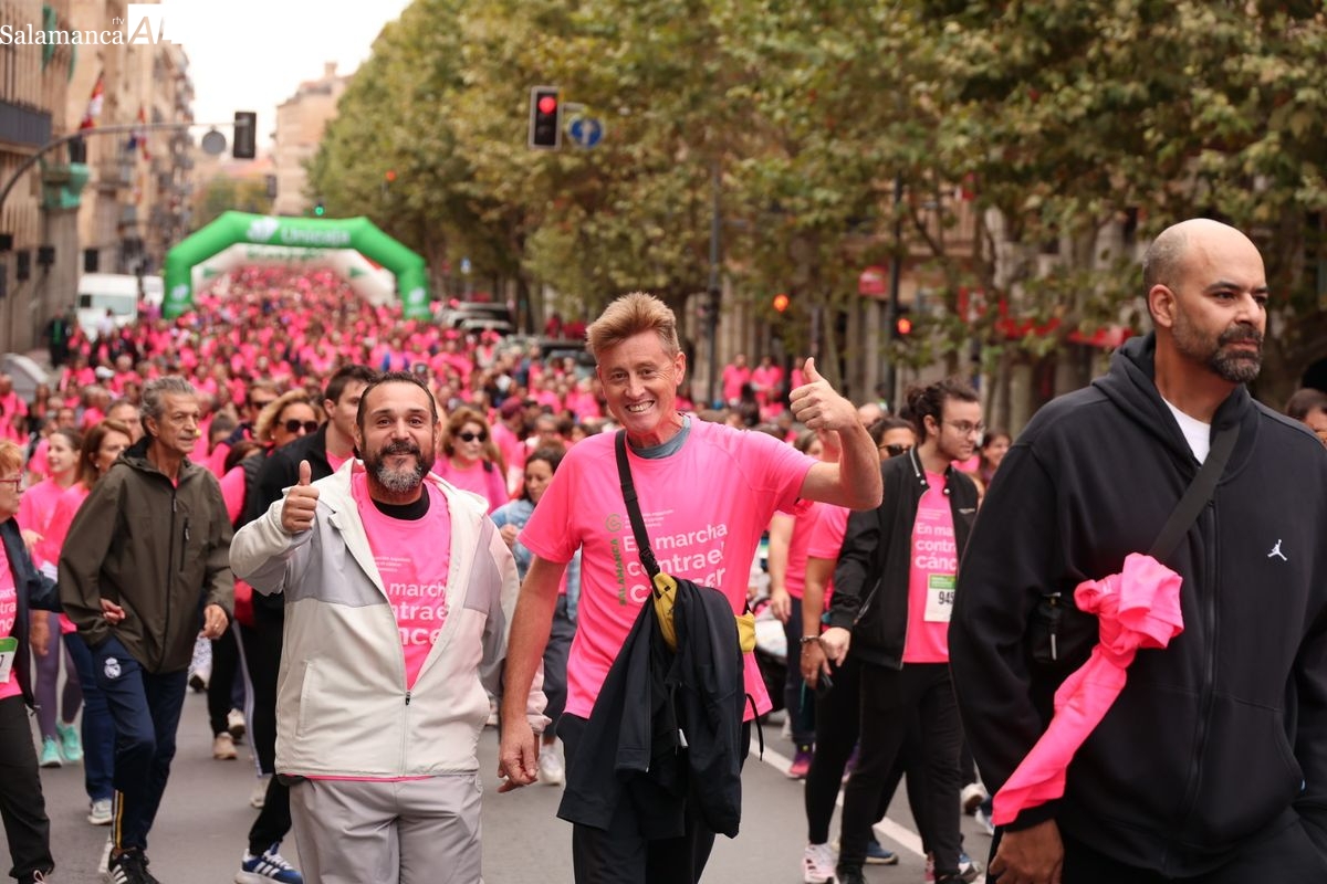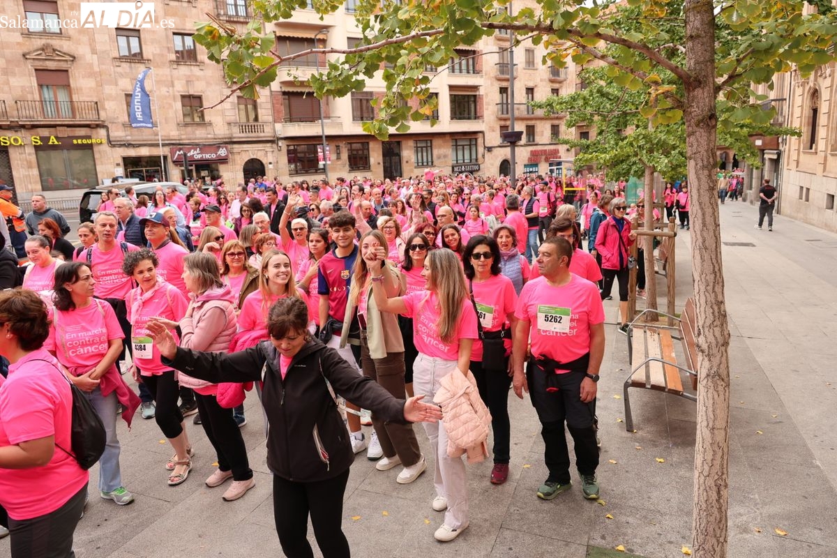 Salamanca se ha vuelto a teñir de rosa en la XI Marcha Contra el Cáncer. El evento, que ha comenzado a las 10:30 horas, ha sido un recorrido accesible de 6 kilómetros desde la iglesia del Arrabal hasta la Plaza Mayor. El objetivo es claro: sumar recursos para la investigación y contribuir a alcanzar la meta del 70% de supervivencia en cáncer para el año 2030.