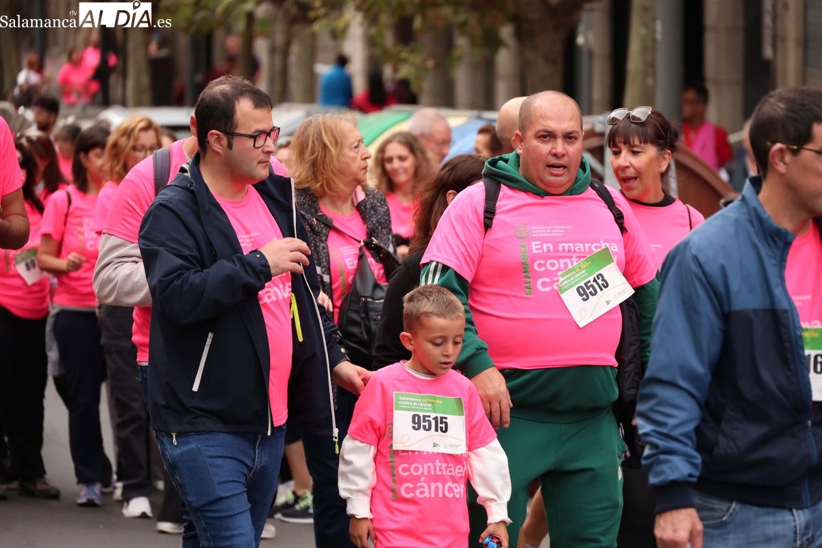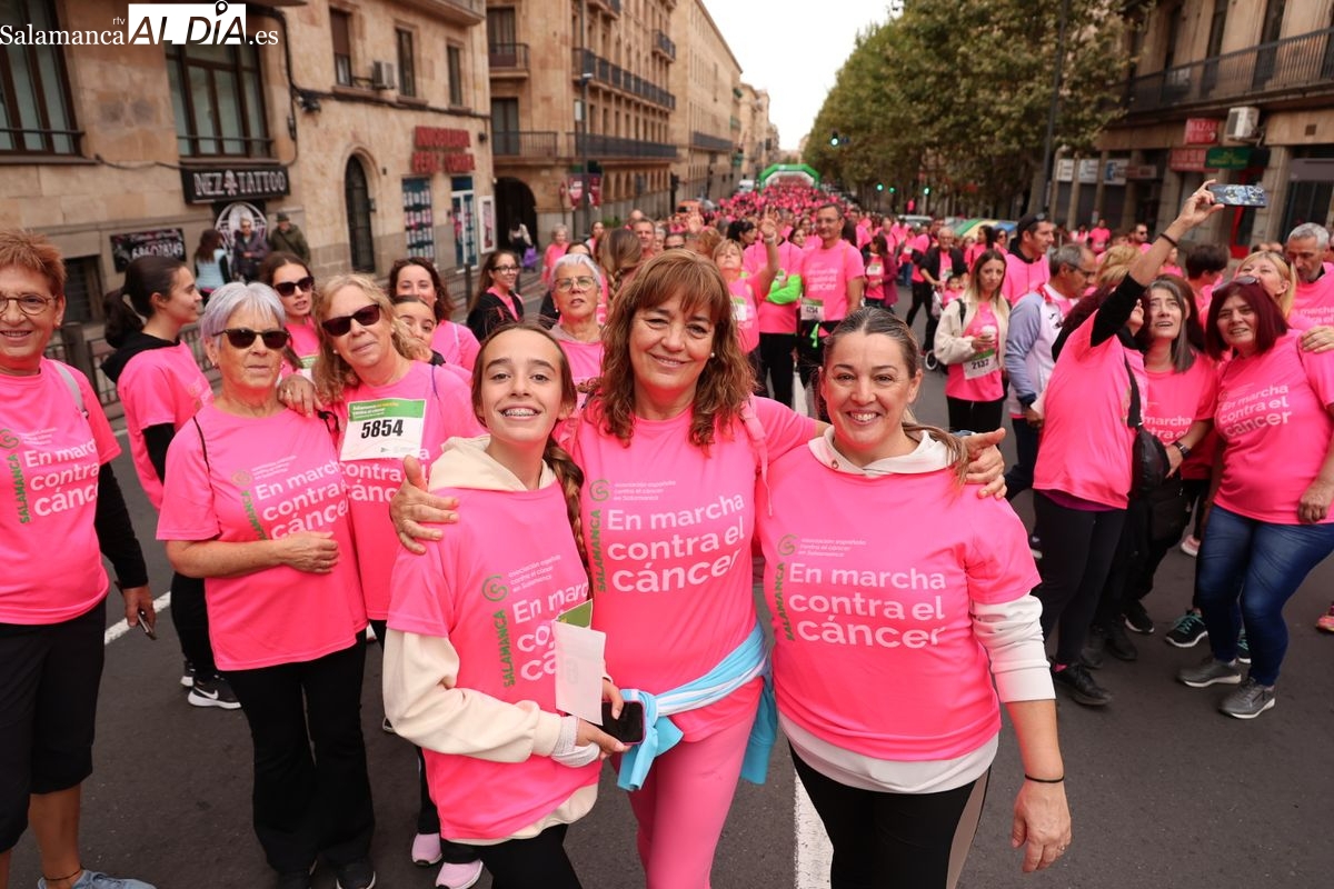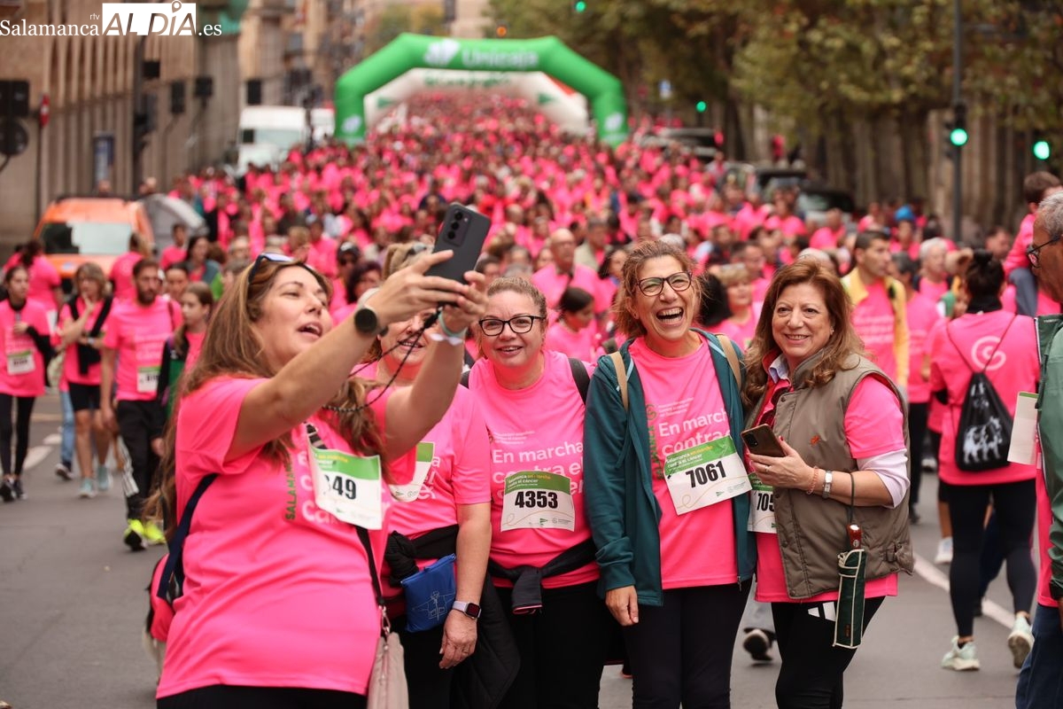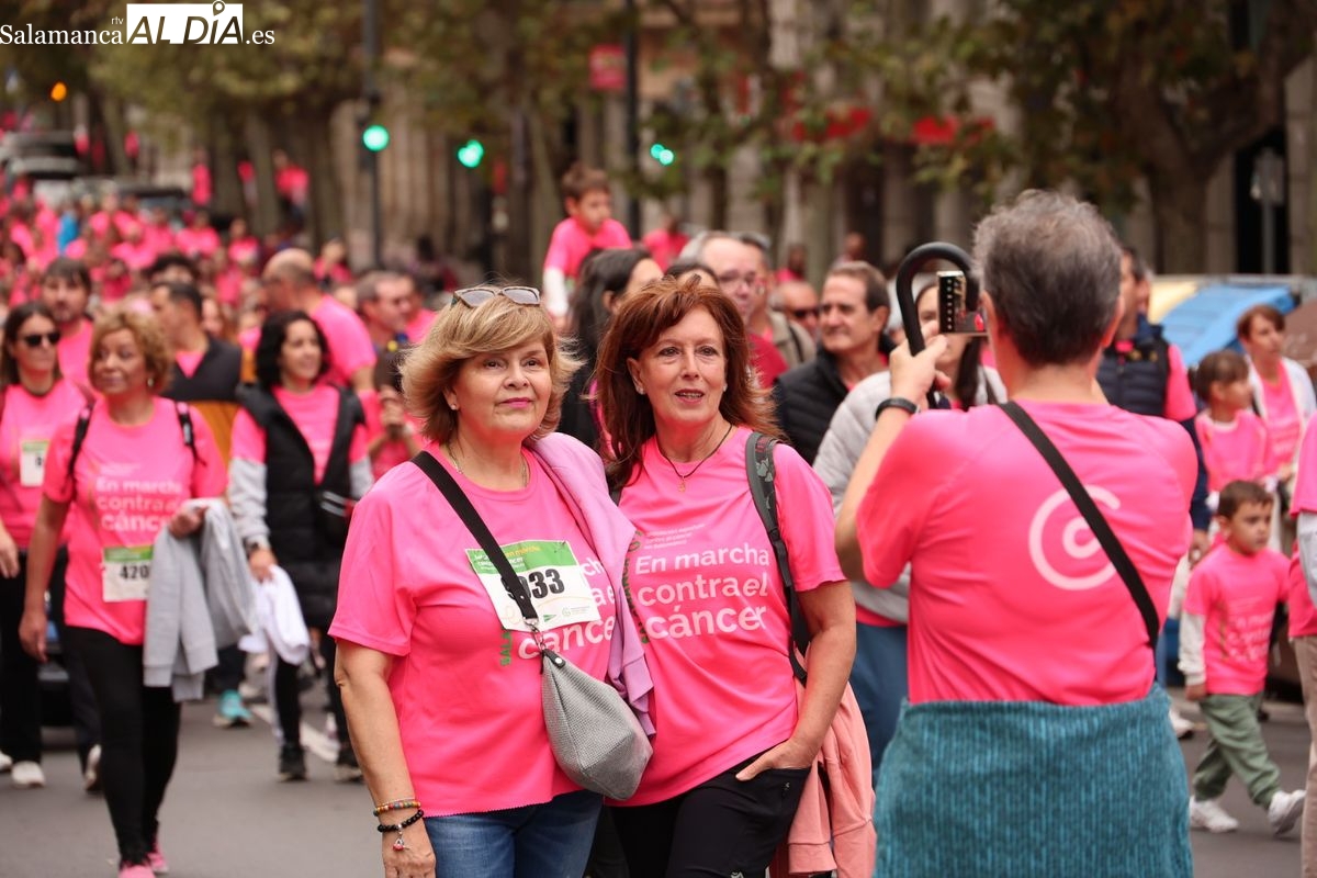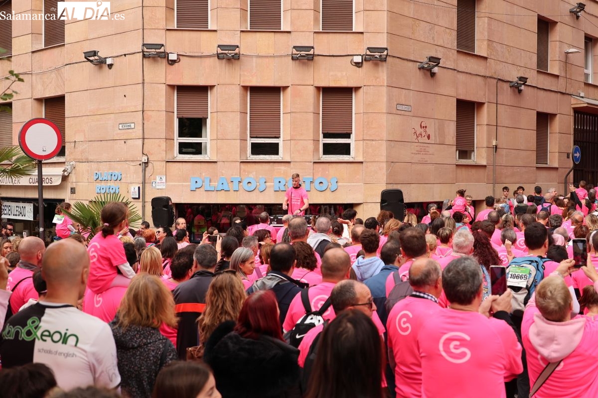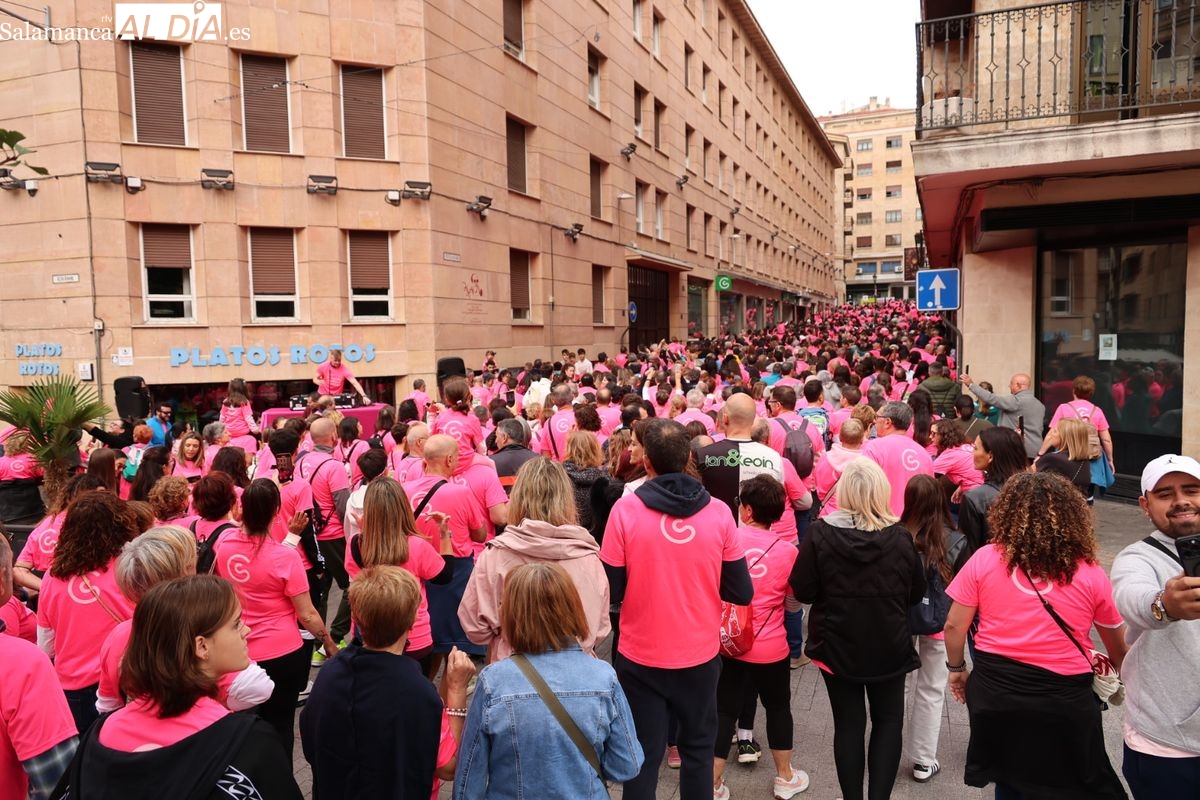 Salamanca se ha vuelto a teñir de rosa en la XI Marcha Contra el Cáncer. El evento, que ha comenzado a las 10:30 horas, ha sido un recorrido accesible de 6 kilómetros desde la iglesia del Arrabal hasta la Plaza Mayor. El objetivo es claro: sumar recursos para la investigación y contribuir a alcanzar la meta del 70% de supervivencia en cáncer para el año 2030.