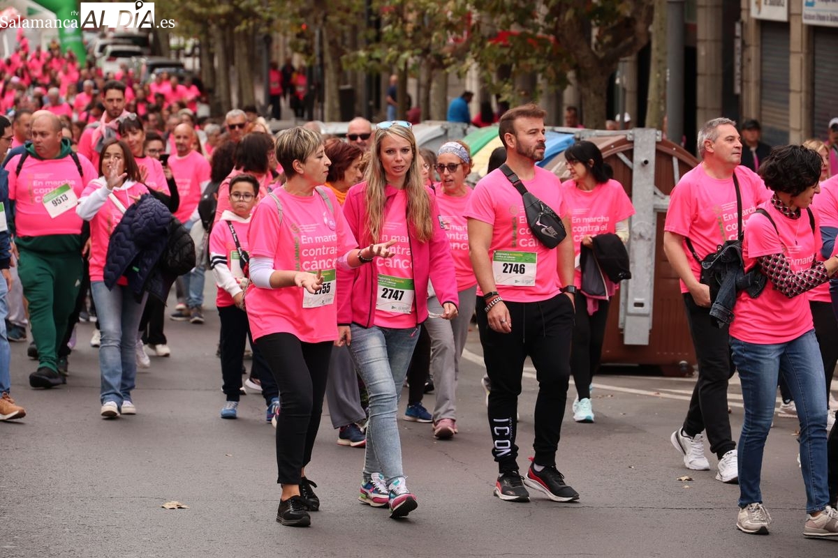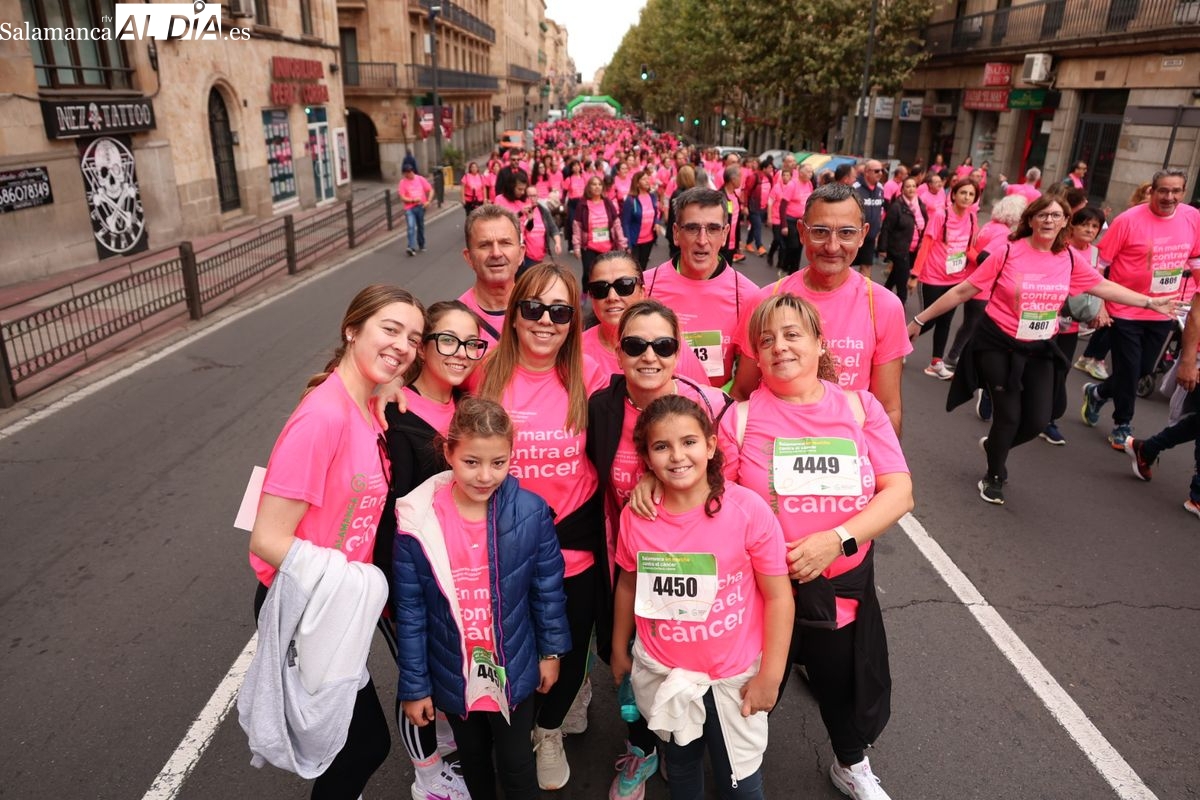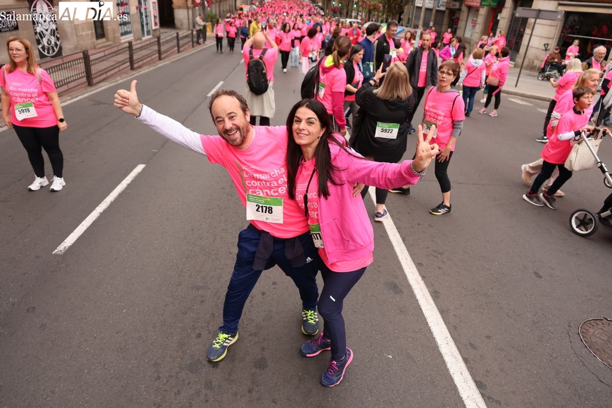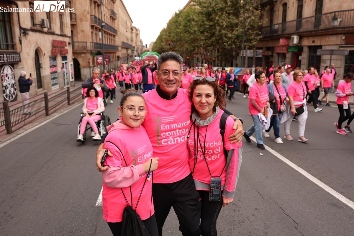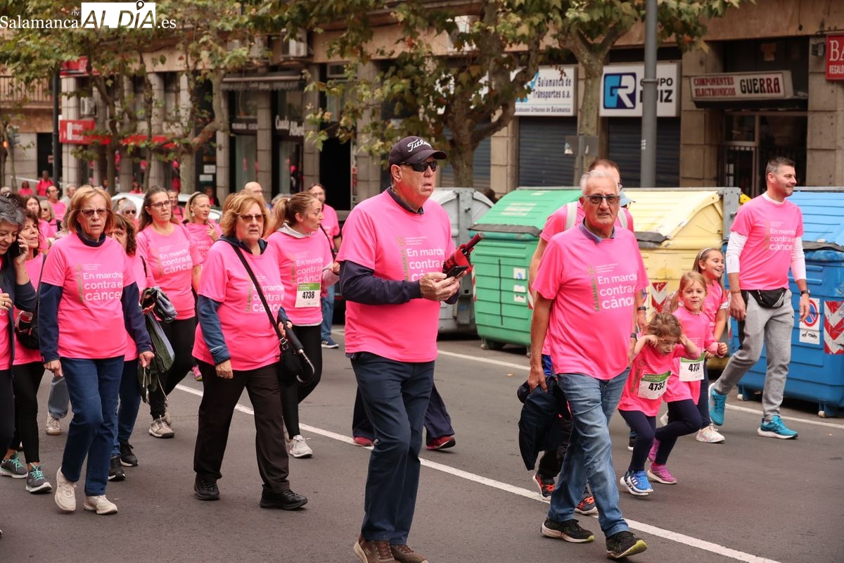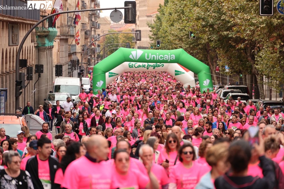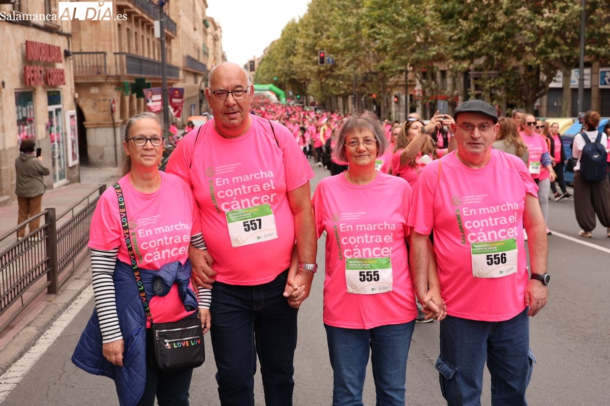 Salamanca se ha vuelto a teñir de rosa en la XI Marcha Contra el Cáncer. El evento, que ha comenzado a las 10:30 horas, ha sido un recorrido accesible de 6 kilómetros desde la iglesia del Arrabal hasta la Plaza Mayor. El objetivo es claro: sumar recursos para la investigación y contribuir a alcanzar la meta del 70% de supervivencia en cáncer para el año 2030.