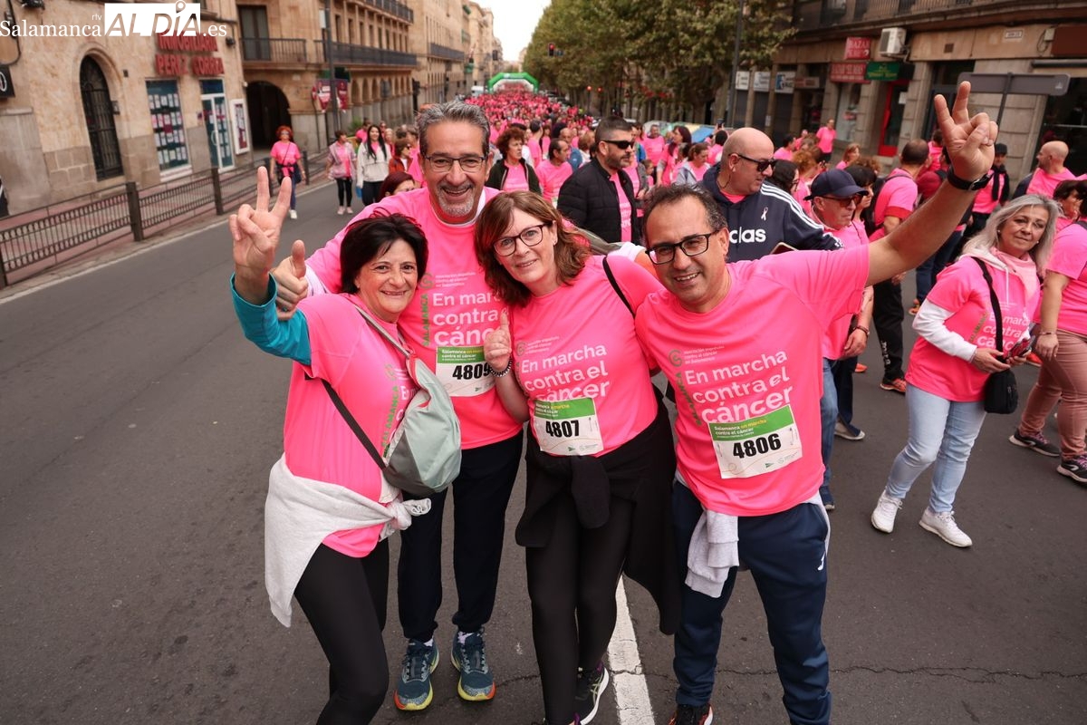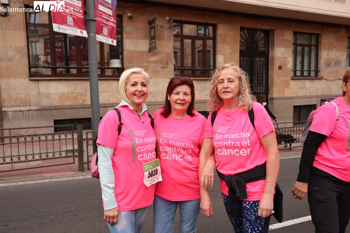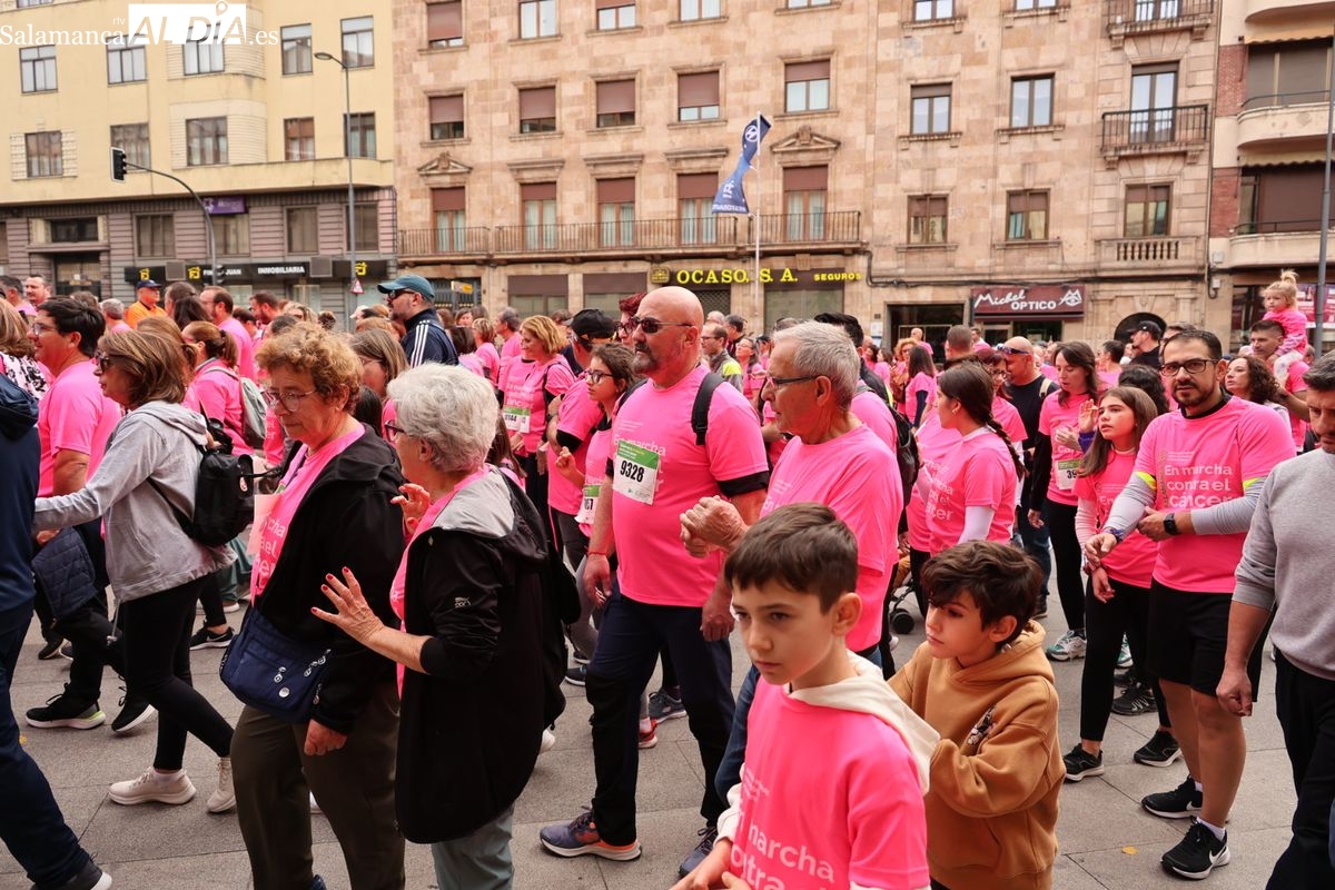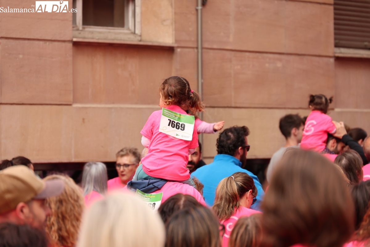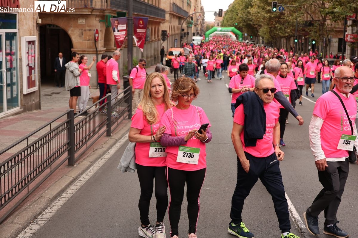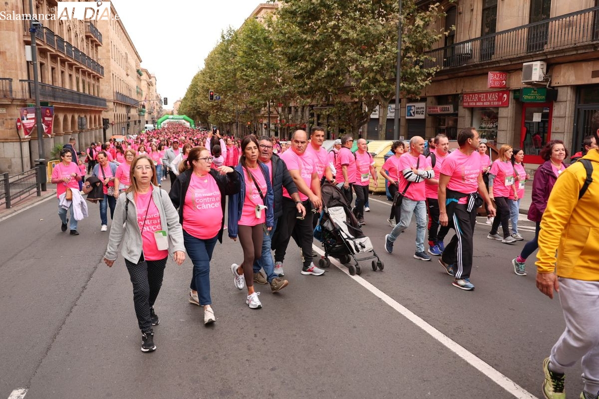 Salamanca se ha vuelto a teñir de rosa en la XI Marcha Contra el Cáncer. El evento, que ha comenzado a las 10:30 horas, ha sido un recorrido accesible de 6 kilómetros desde la iglesia del Arrabal hasta la Plaza Mayor. El objetivo es claro: sumar recursos para la investigación y contribuir a alcanzar la meta del 70% de supervivencia en cáncer para el año 2030.