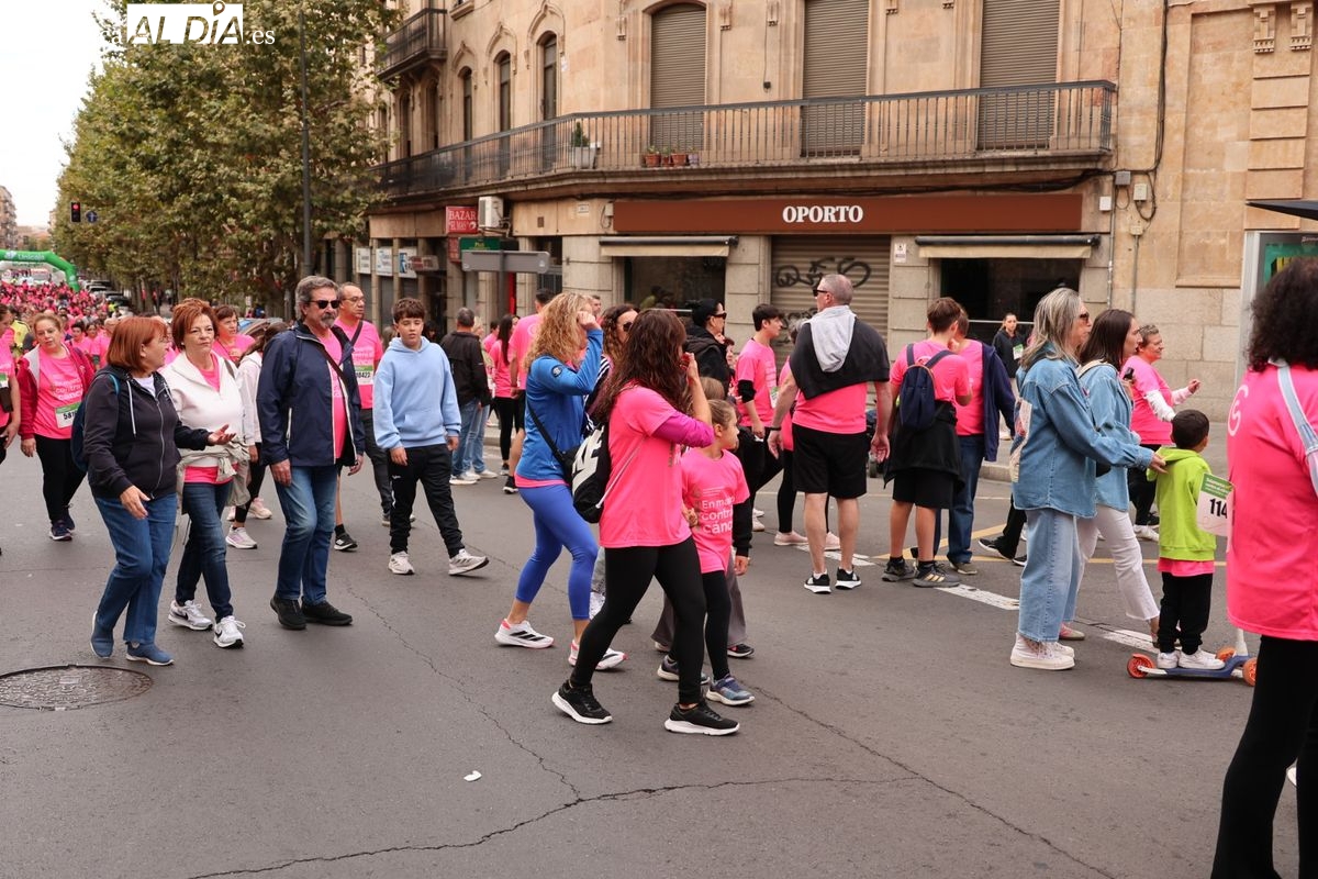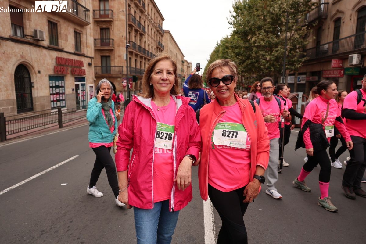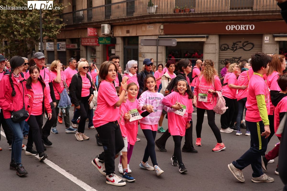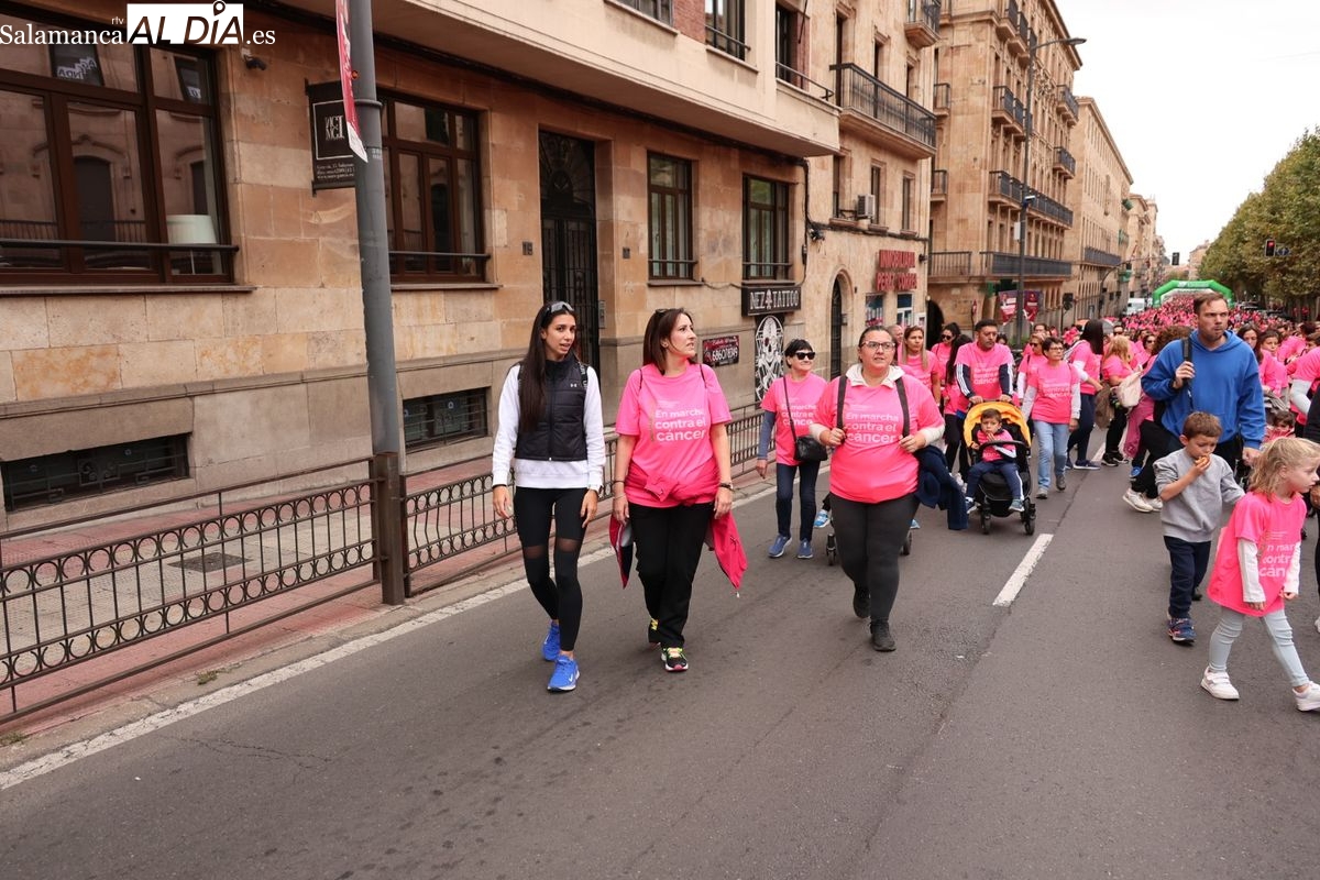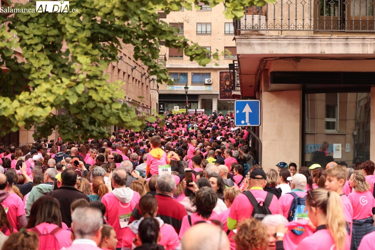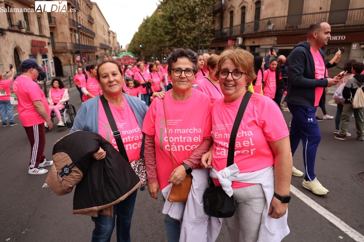 Salamanca se ha vuelto a teñir de rosa en la XI Marcha Contra el Cáncer. El evento, que ha comenzado a las 10:30 horas, ha sido un recorrido accesible de 6 kilómetros desde la iglesia del Arrabal hasta la Plaza Mayor. El objetivo es claro: sumar recursos para la investigación y contribuir a alcanzar la meta del 70% de supervivencia en cáncer para el año 2030.