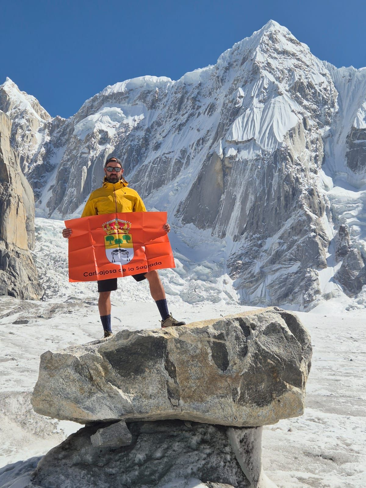 El aventurero carbajoseño Chema Sánchez y su pareja, Mireia Negra, han recibido este mediodía un pequeño homenaje en el Salón de Plenos del Ayuntamiento como muestra de agradecimiento por llevar consigo en cada expedición por el mundo la bandera de Carbajosa de la Sagrada.