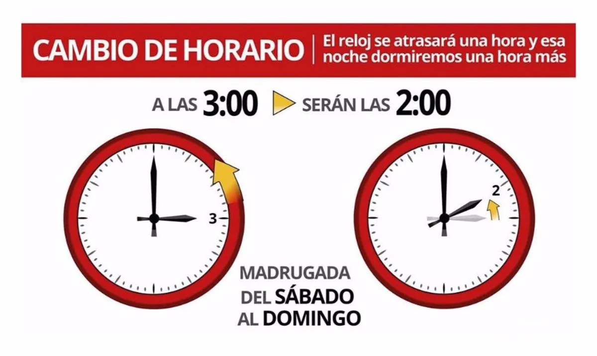 El ajuste se producirá en la madrugada del domingo, 26 de octubre. Concretamente, a las 3:00 de la madrugada (hora peninsular), los relojes deberán atrasarse para marcar de nuevo las 2:00 horas. Este cambio pone fin al horario de verano que comenzó el pasado mes de marzo.