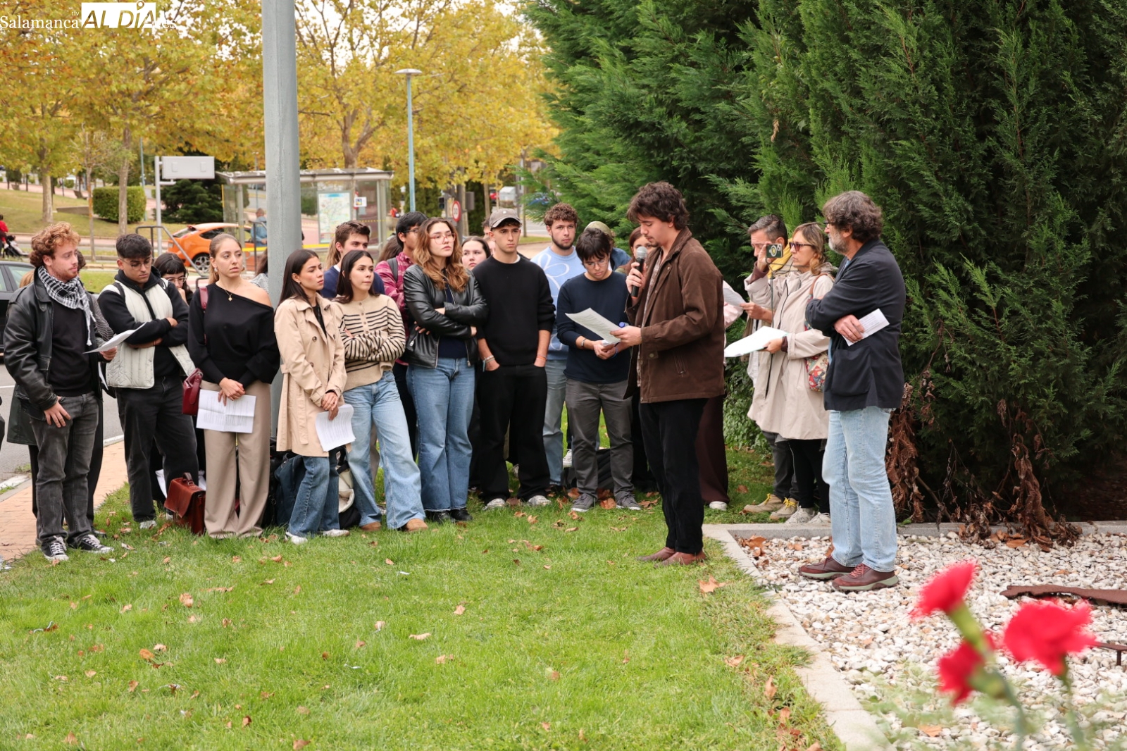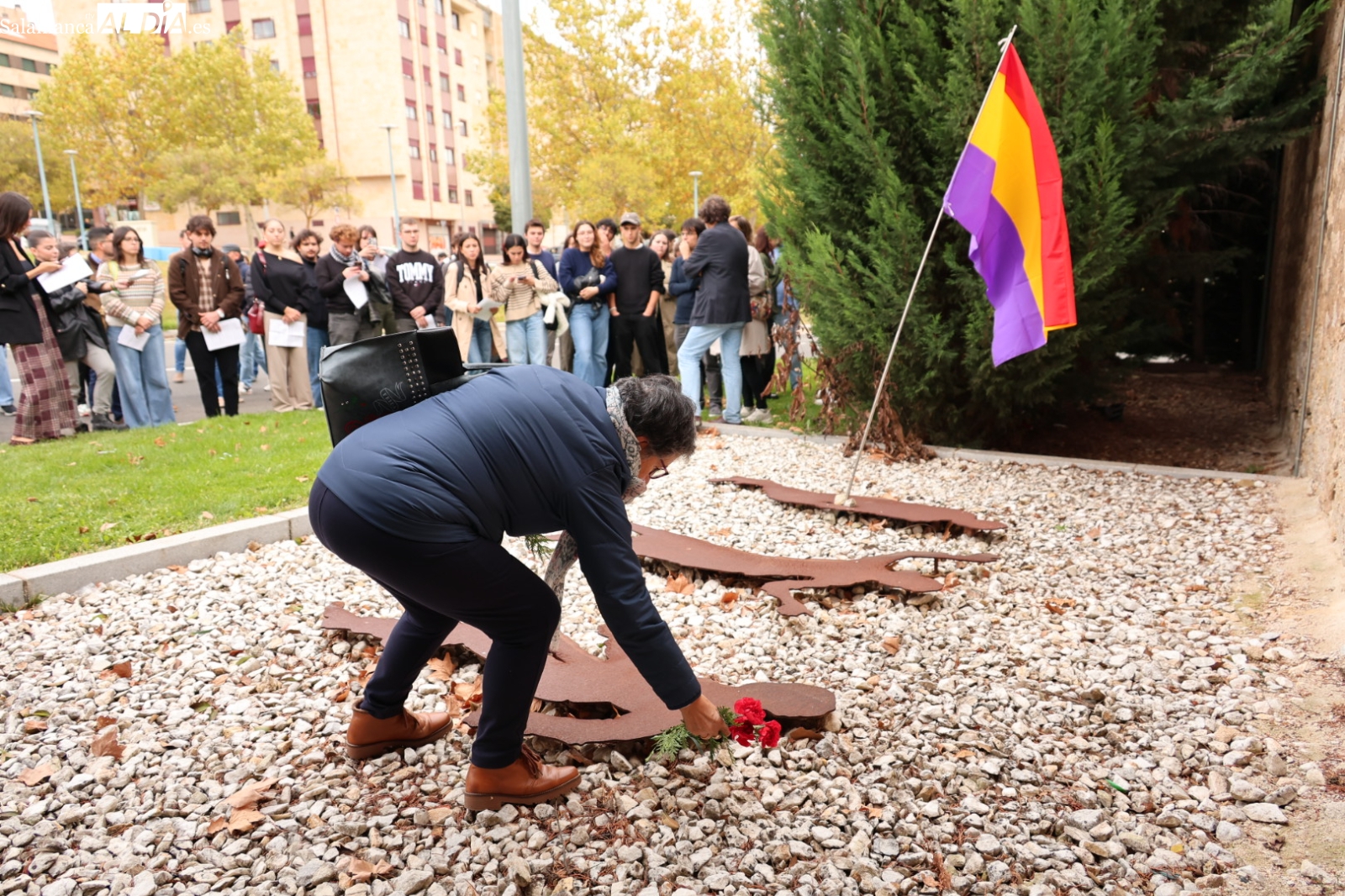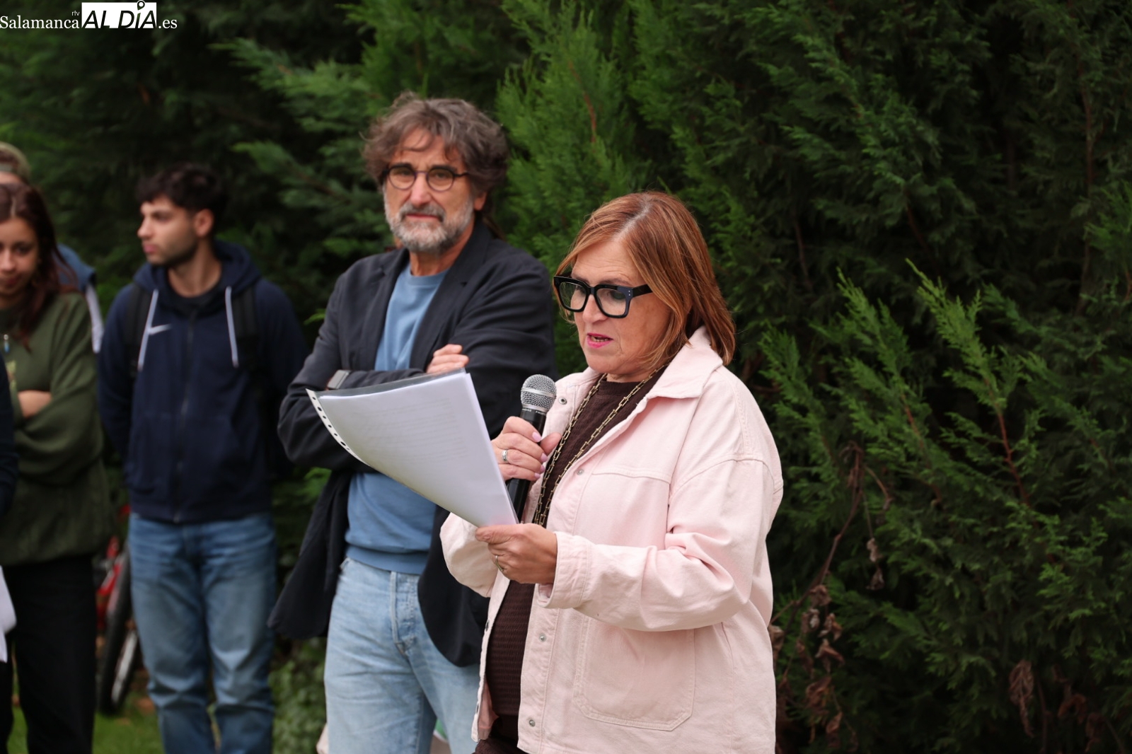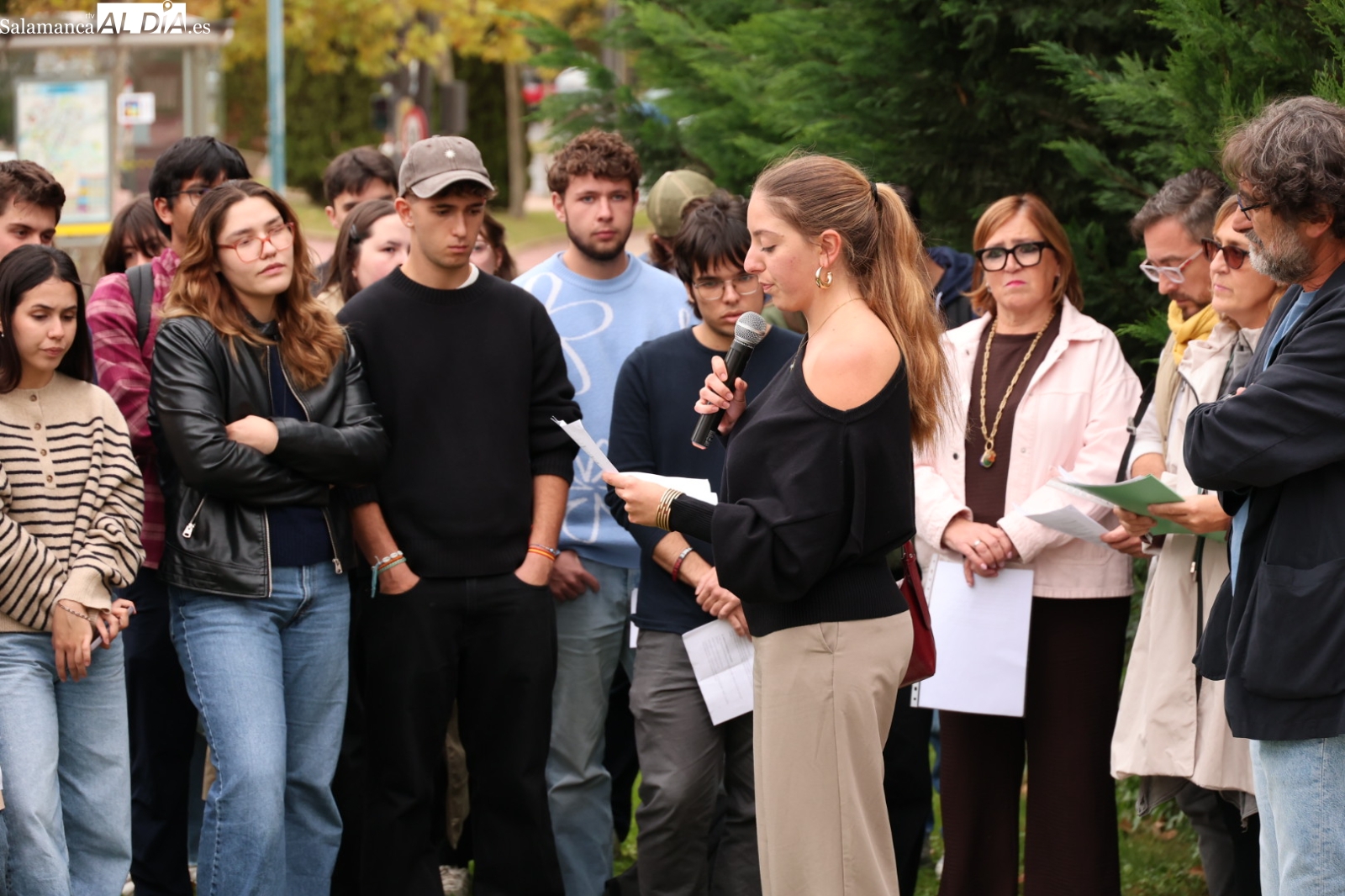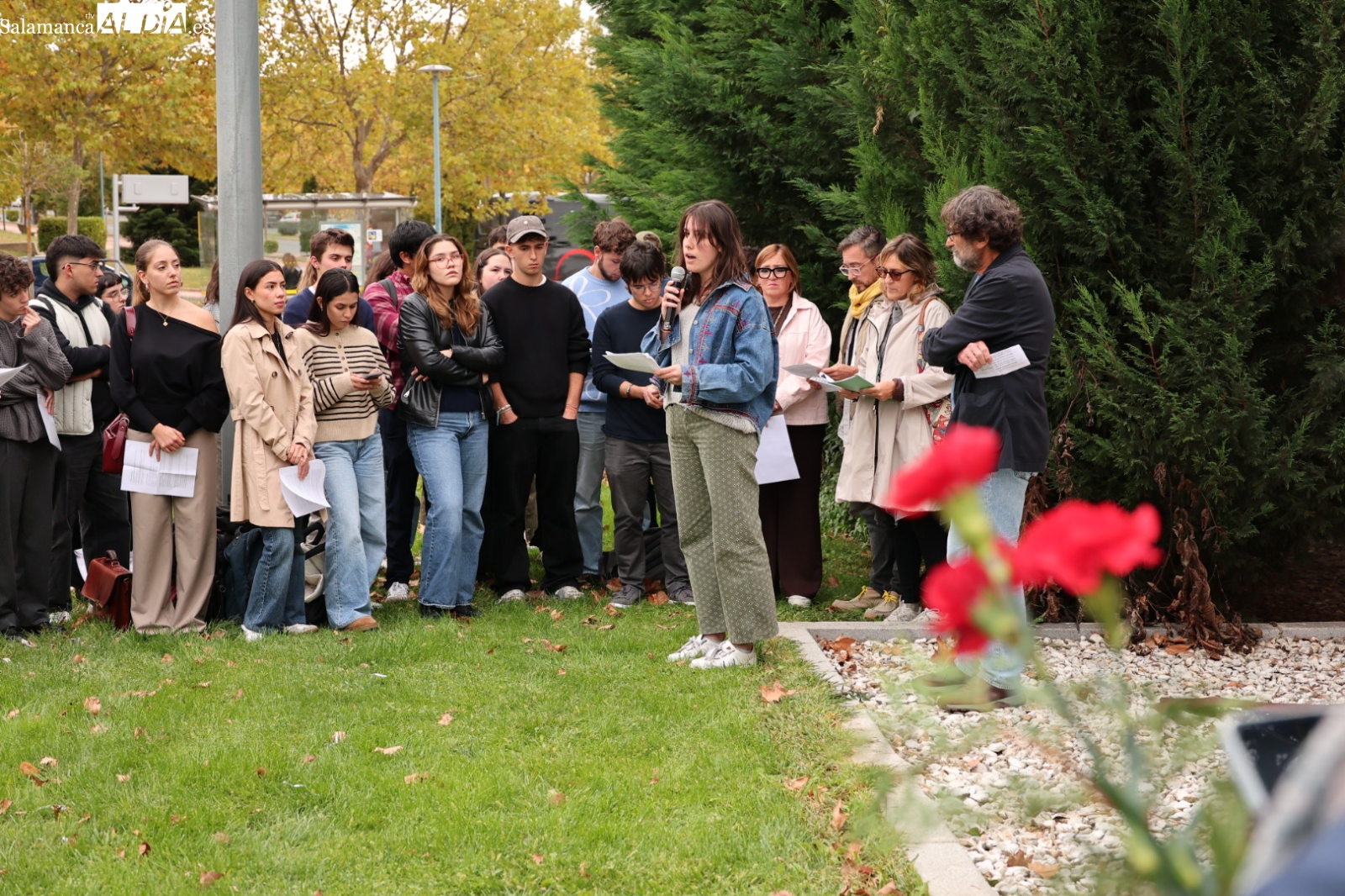 El homenaje, que se ha celebrado a las 17:00 horas frente al tanatorio, ha contado con la presencia de representantes municipales y de la subdelegada del Gobierno en Salamanca, Rosa López. Las intervenciones han corrido a cargo de Ana Vallejo, familiar de uno de los represaliados; Elena Martínez Barahona, profesora de Ciencia Política de la Universidad de Salamanca; y estudiantes de esta misma facultad, que han puesto voz a las víctimas leyendo sus biografías para evitar que caigan en el olvido.