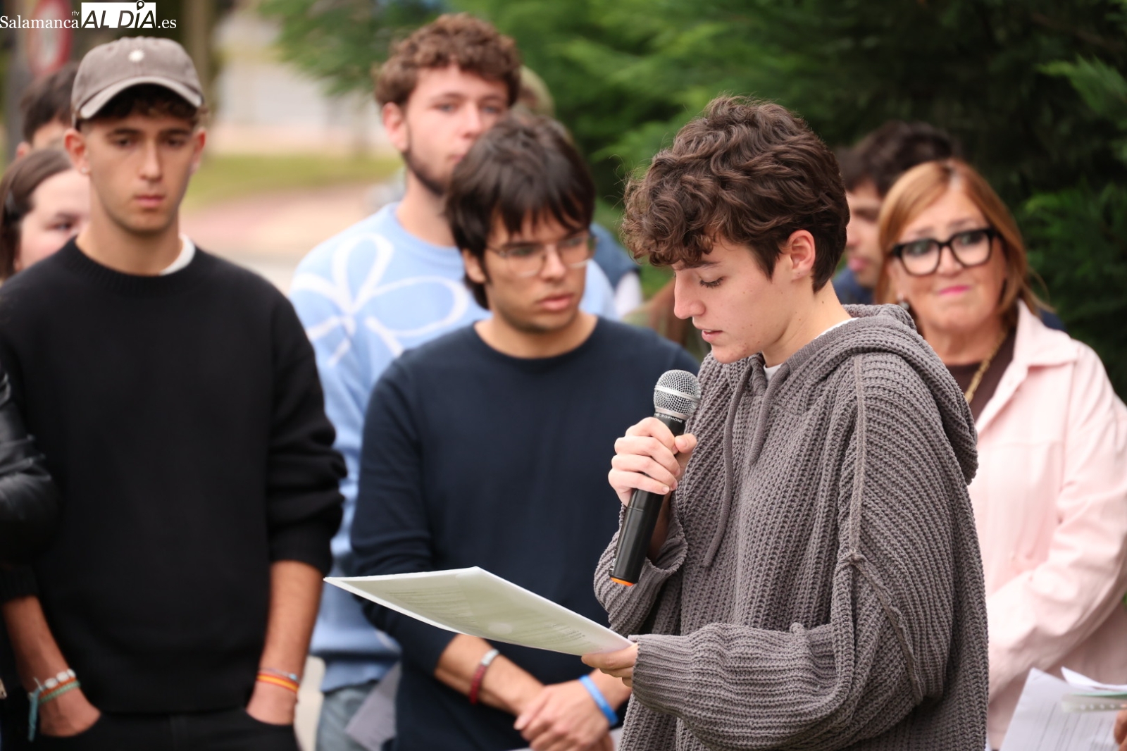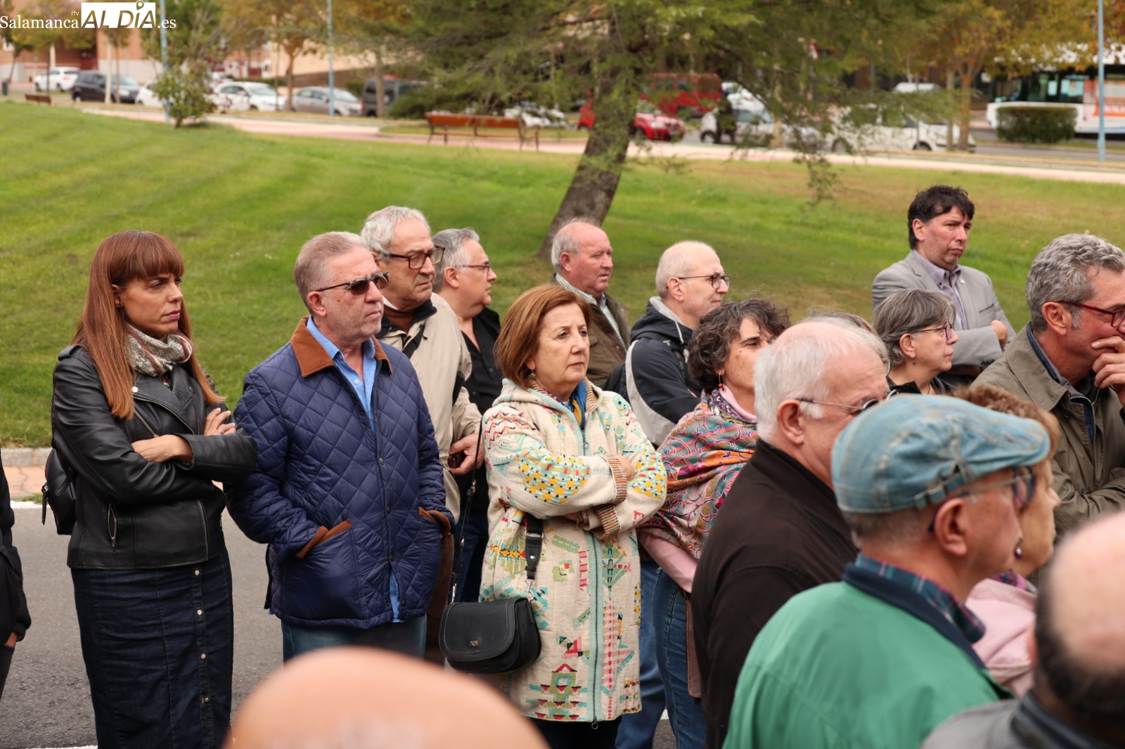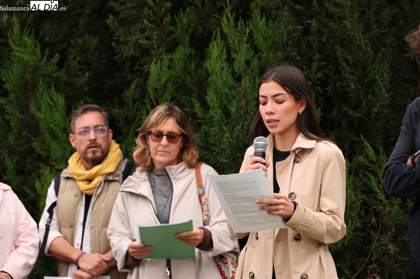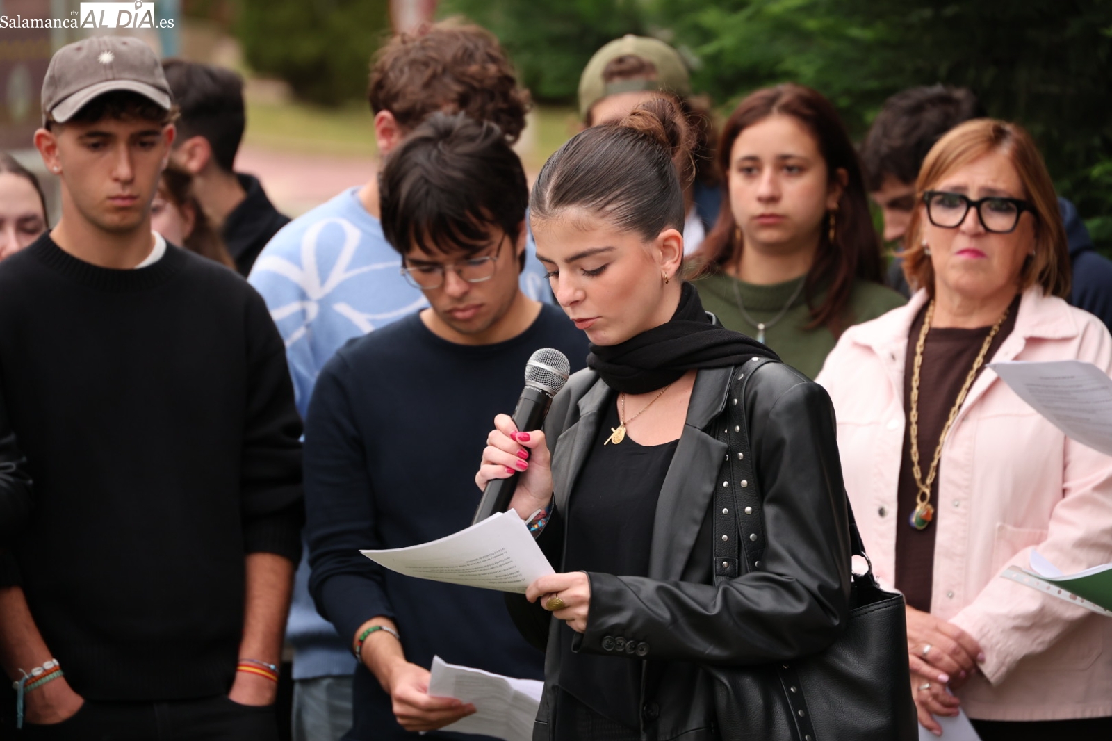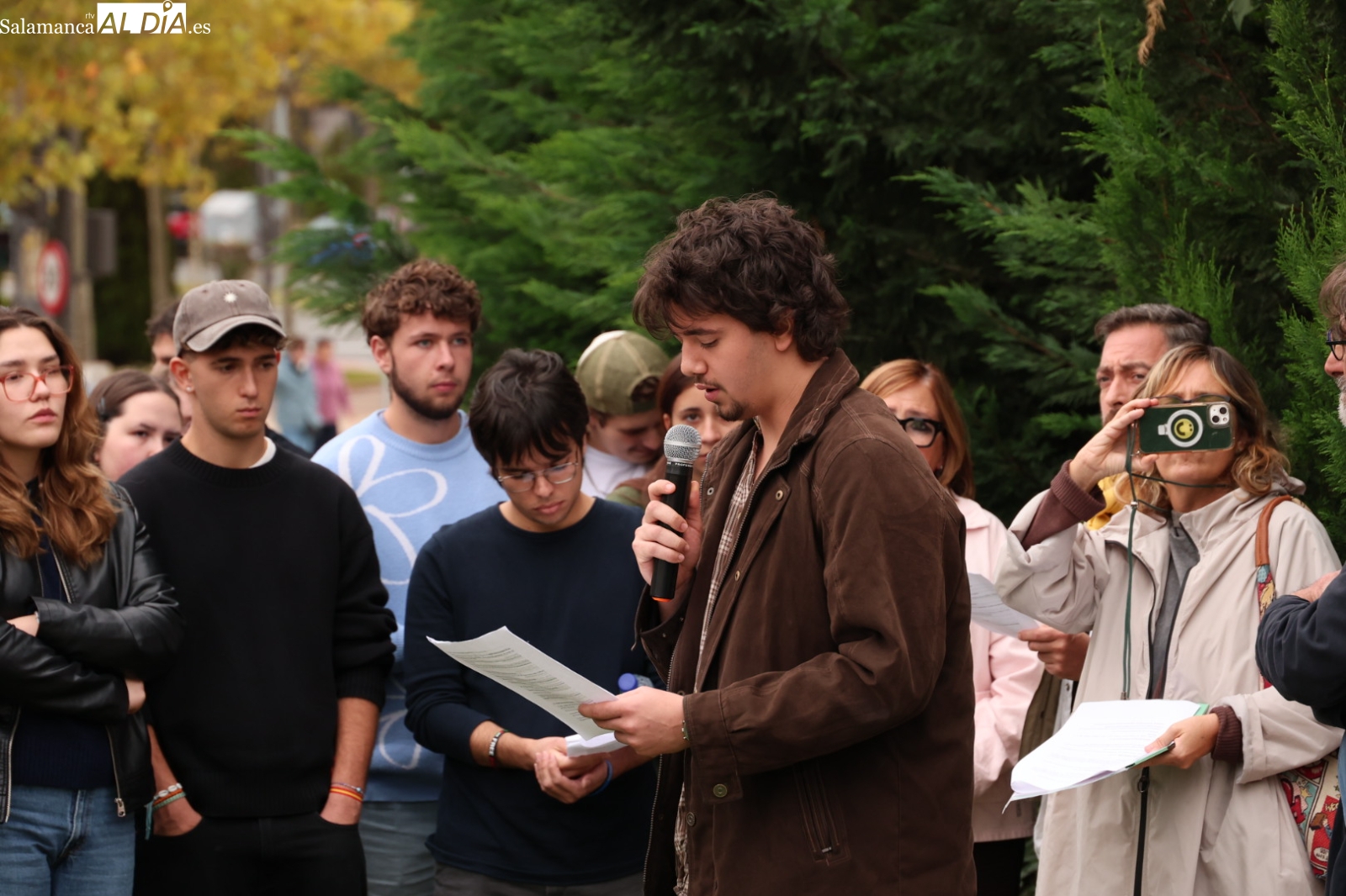 El homenaje, que se ha celebrado a las 17:00 horas frente al tanatorio, ha contado con la presencia de representantes municipales y de la subdelegada del Gobierno en Salamanca, Rosa López. Las intervenciones han corrido a cargo de Ana Vallejo, familiar de uno de los represaliados; Elena Martínez Barahona, profesora de Ciencia Política de la Universidad de Salamanca; y estudiantes de esta misma facultad, que han puesto voz a las víctimas leyendo sus biografías para evitar que caigan en el olvido.