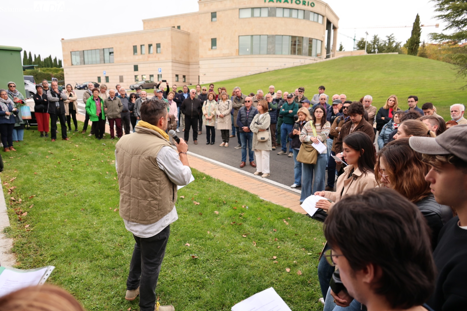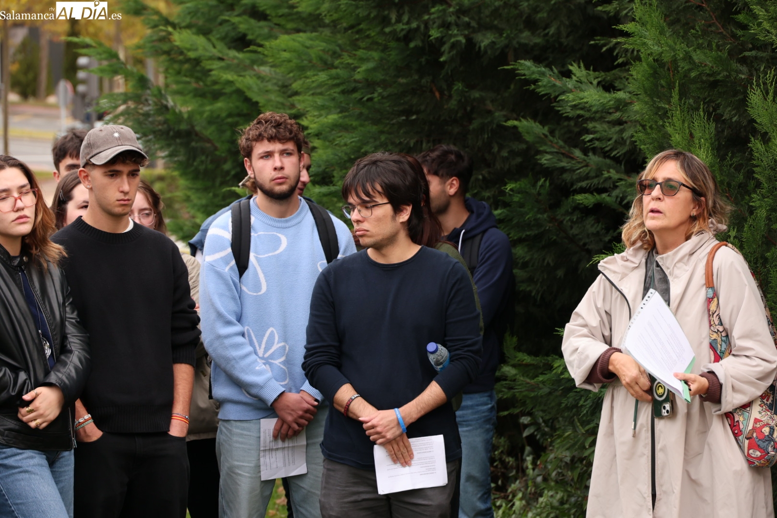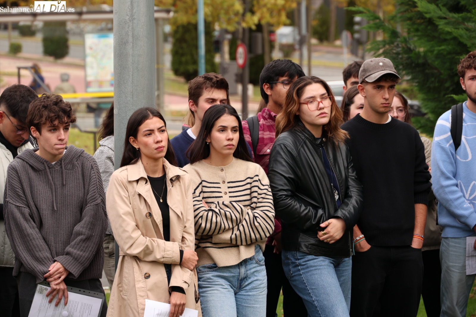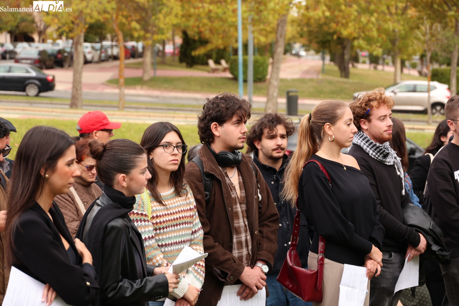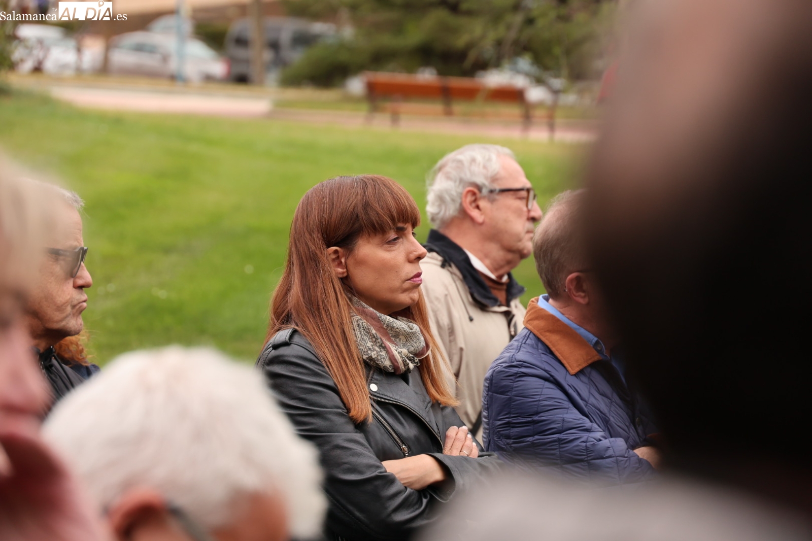 El homenaje, que se ha celebrado a las 17:00 horas frente al tanatorio, ha contado con la presencia de representantes municipales y de la subdelegada del Gobierno en Salamanca, Rosa López. Las intervenciones han corrido a cargo de Ana Vallejo, familiar de uno de los represaliados; Elena Martínez Barahona, profesora de Ciencia Política de la Universidad de Salamanca; y estudiantes de esta misma facultad, que han puesto voz a las víctimas leyendo sus biografías para evitar que caigan en el olvido.