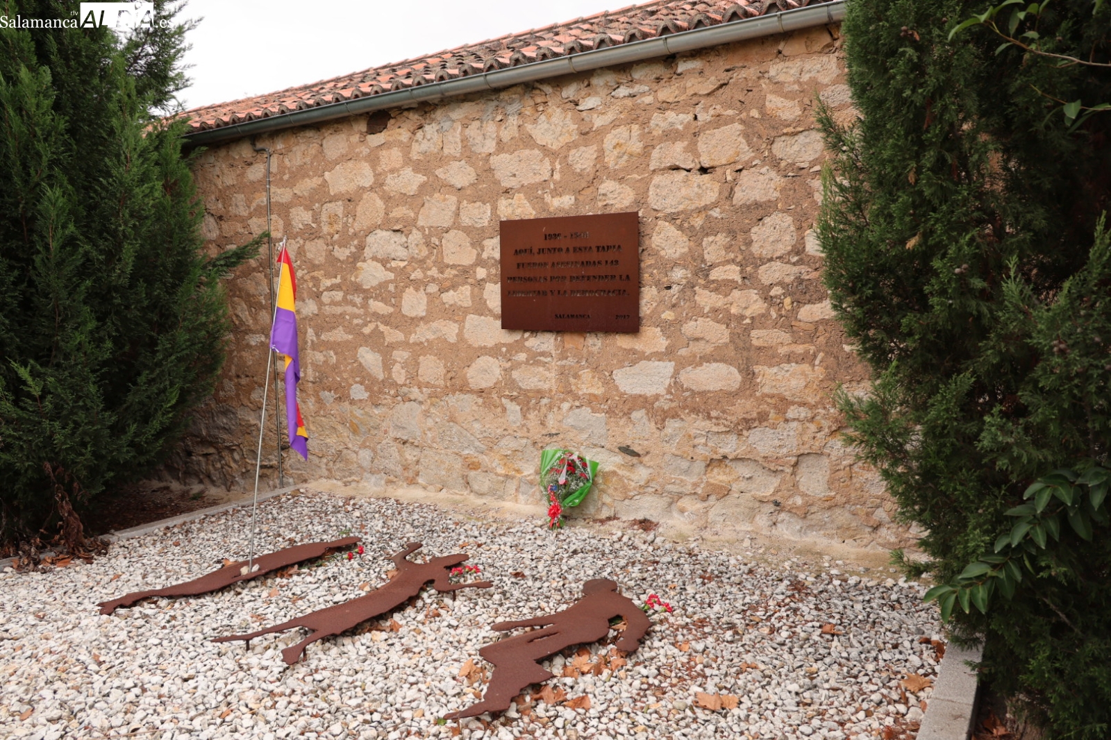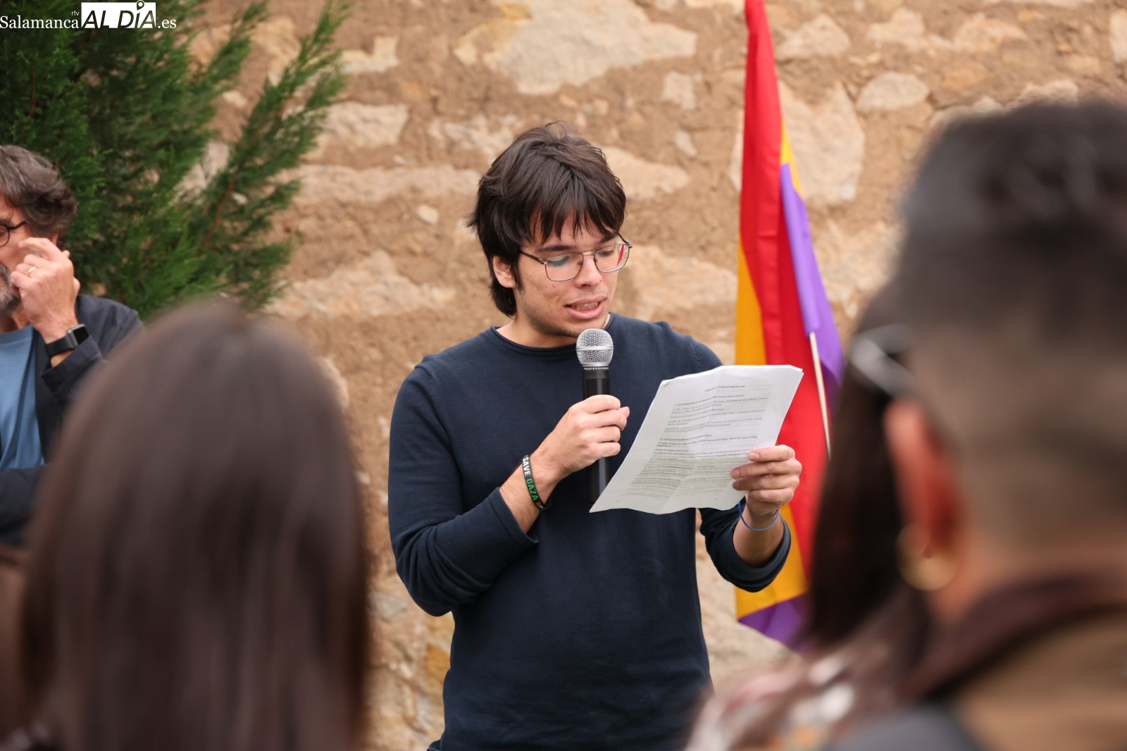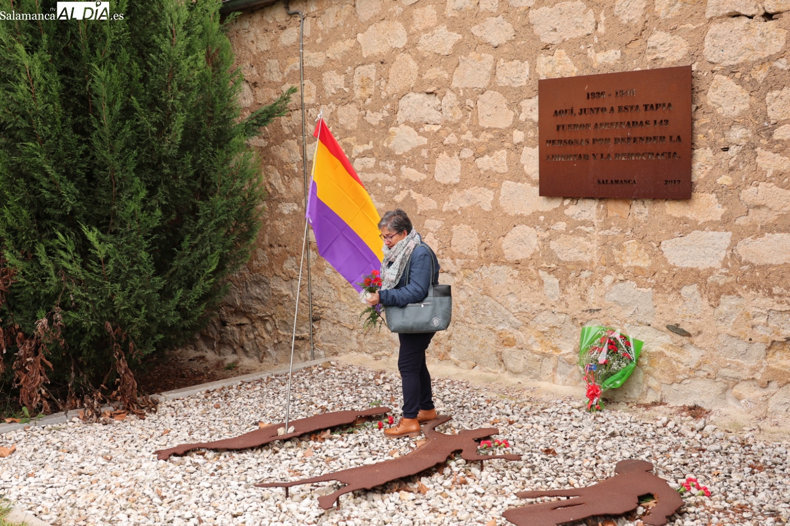 La tapia del Cementerio San Carlos Borromeo ha acogido esta tarde el tradicional homenaje a las víctimas de la represión franquista, convocado por la Asociación Salamanca Memoria y Justicia. El acto ha recordado especialmente a los quince hombres que fueron fusilados en este mismo lugar el 23 de octubre de 1936, una de las fechas más simbólicas de la memoria histórica en la provincia.