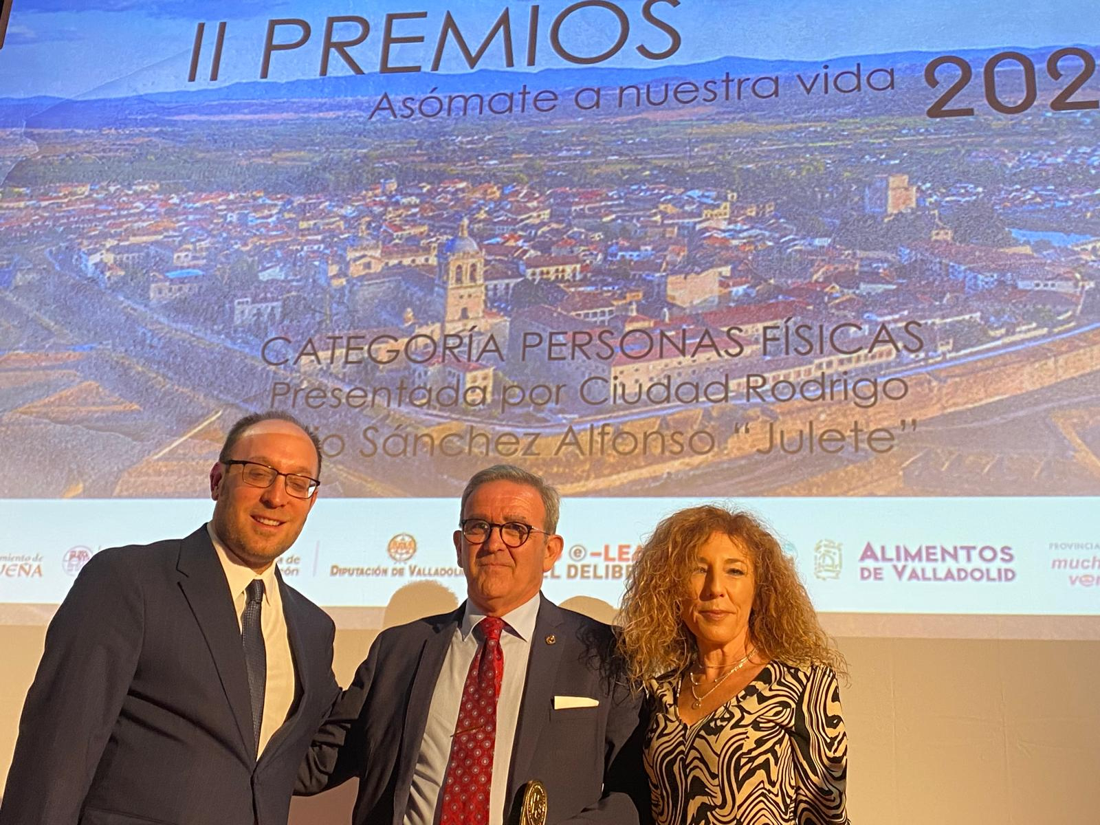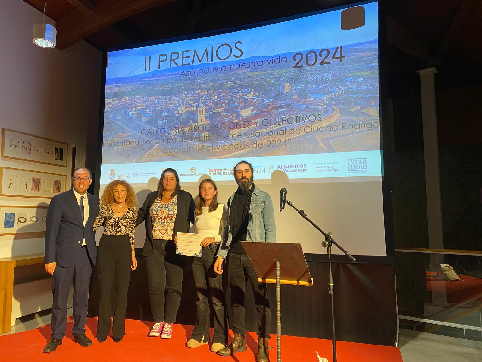 Julio Sánchez Alfonso ‘Julete Moriche’ y el Taller de Teatro Intergeneracional de Ciudad Rodrigo que dirige Sergio Cardoso recogieron en la tarde-noche del jueves en la localidad vallisoletana de Urueña los galardones que les ha concedido la Red de Conjuntos Históricos de Castilla y León en el marco de sus premios Asómate a Nuestra Vida 2024.