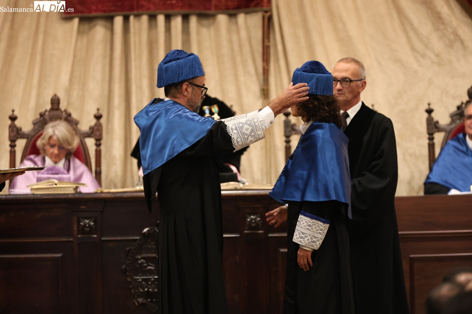 La microbióloga y Premio Nobel de Química ha sido investida doctora honoris causa por la Universidad de Salamanca. En su discurso ha defendido la necesidad de invertir en los jóvenes investigadores y ha reivindicado el papel de la ciencia y el pensamiento crítico para afrontar los grandes desafíos globales.