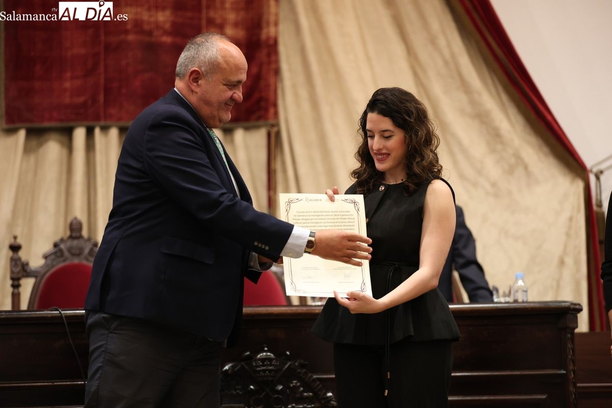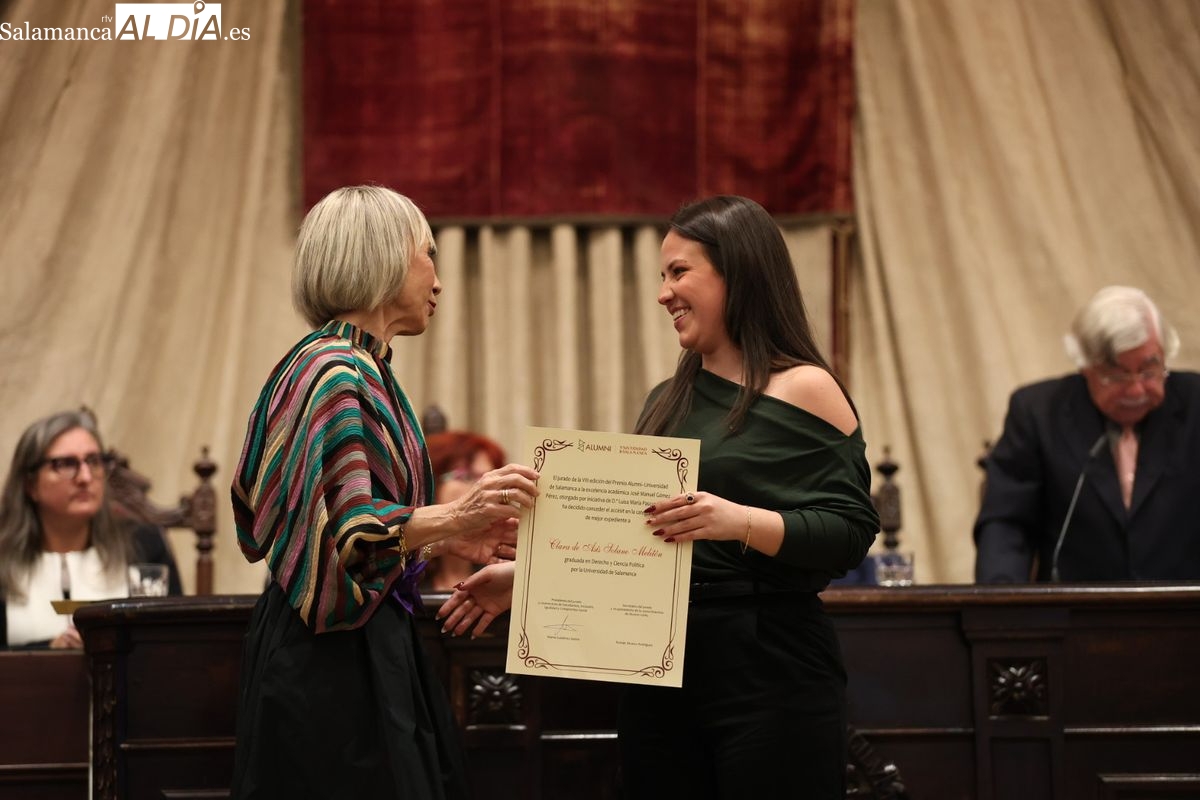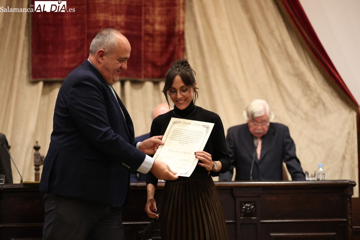 La asociación de antiguos alumnos de la Universidad de Salamanca ha celebrado este sábado, 25 de octubre, la entrega de sus galardones anuales a la excelencia académica e investigadora. El Paraninfo del Estudio salmantino ha sido el escenario donde se reconoce el talento surgido de la institución en diversas áreas del conocimiento, en un acto que ha reunido a representantes del equipo de gobierno de la USAL y de la propia asociación.