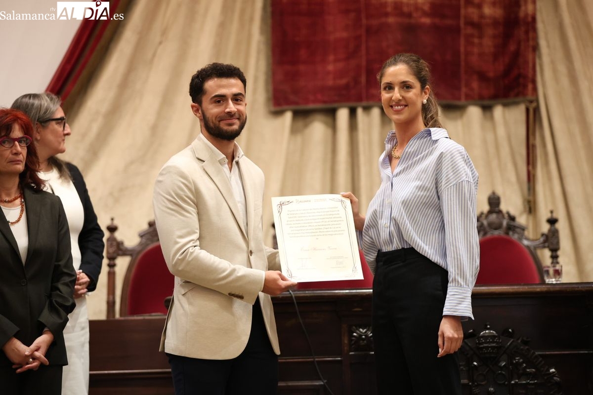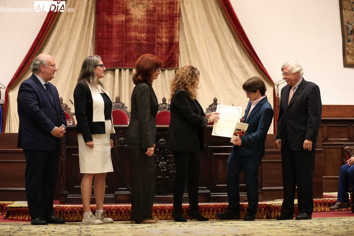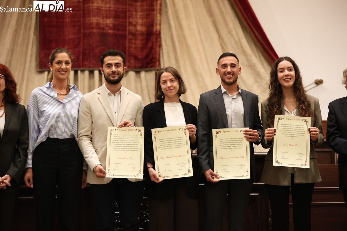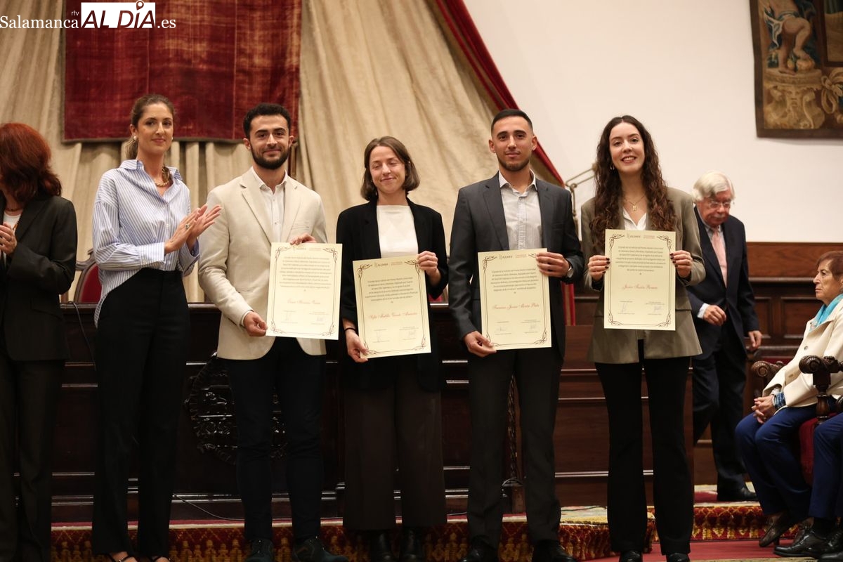 La asociación de antiguos alumnos de la Universidad de Salamanca ha celebrado este sábado, 25 de octubre, la entrega de sus galardones anuales a la excelencia académica e investigadora. El Paraninfo del Estudio salmantino ha sido el escenario donde se reconoce el talento surgido de la institución en diversas áreas del conocimiento, en un acto que ha reunido a representantes del equipo de gobierno de la USAL y de la propia asociación.