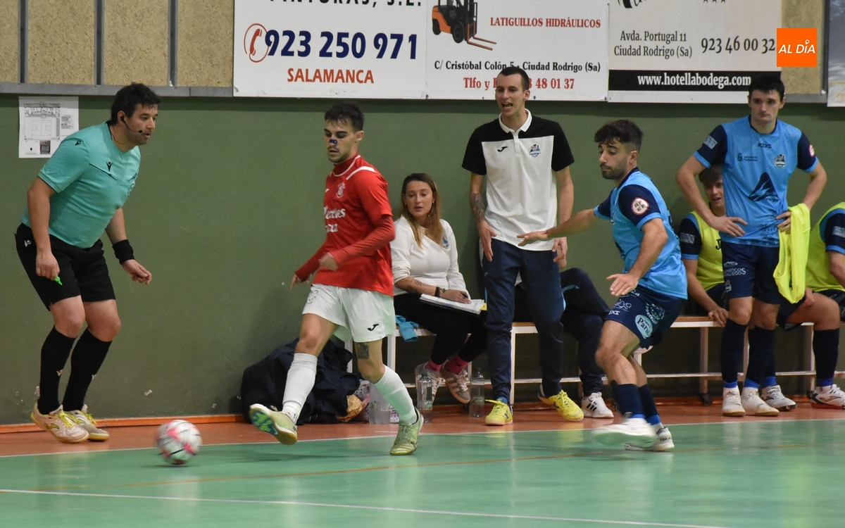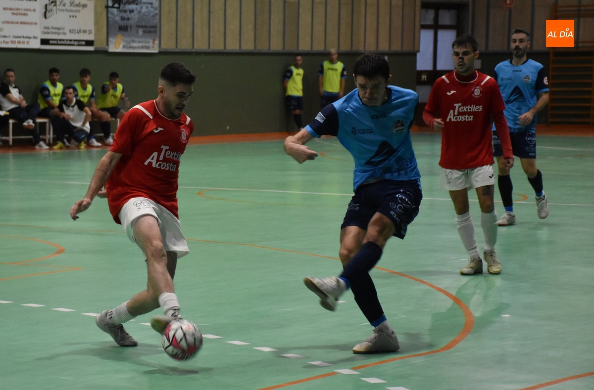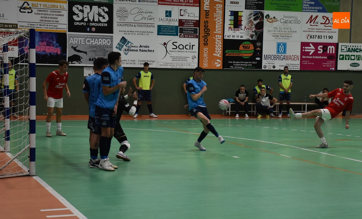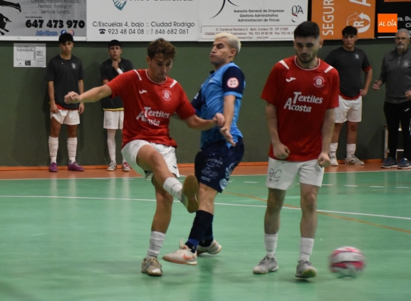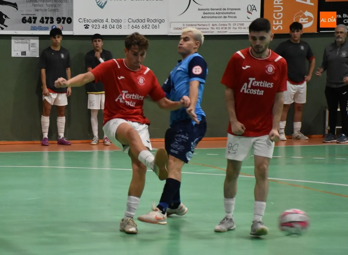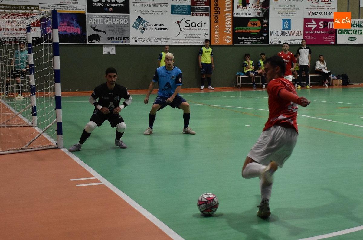 El portero mirobrigense desbarató otros tiros con peligro en el 12’ (una opción en carrera), 13’ (un tiro en media distancia) y 14’, además de pasearse otros dos balones por el área local sin encontrar rematador. Por si fuera poco, el III Columnas llegó a las 5 faltas en el 15’. Acto seguido, los locales pidieron tiempo muerto, tras el cual dispusieron de dos opciones claras: un libre indirecto en la frontal (forzado por Álex Sastre) que Javi Ortega estrelló en la barrera y una intentona lejana de Eloy que se fue cerca del palo.