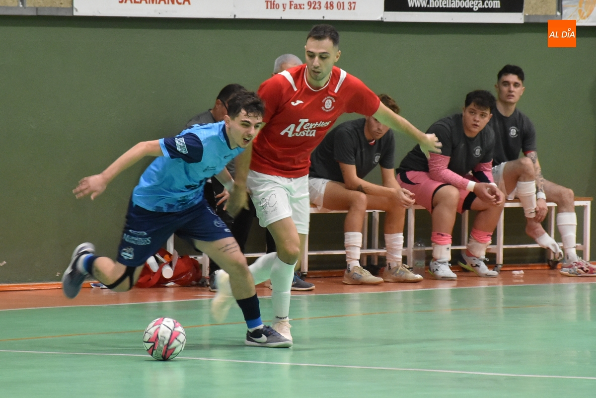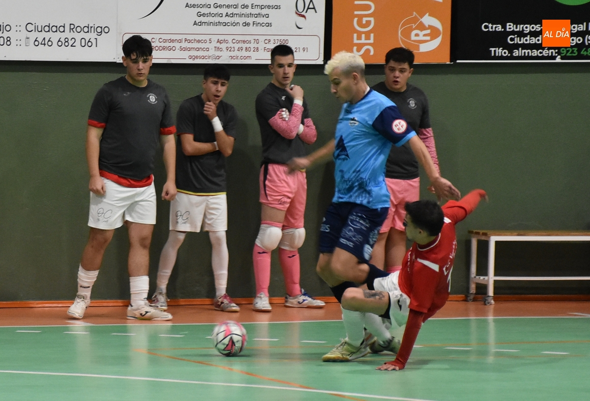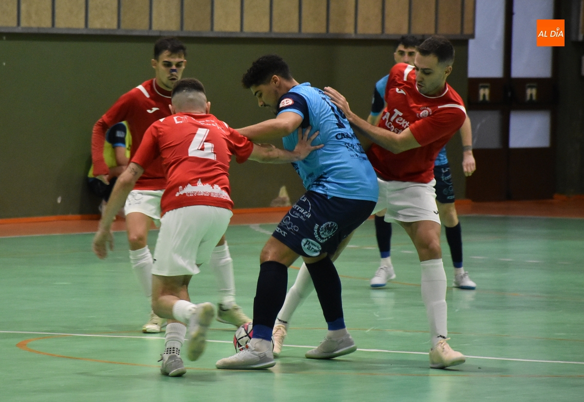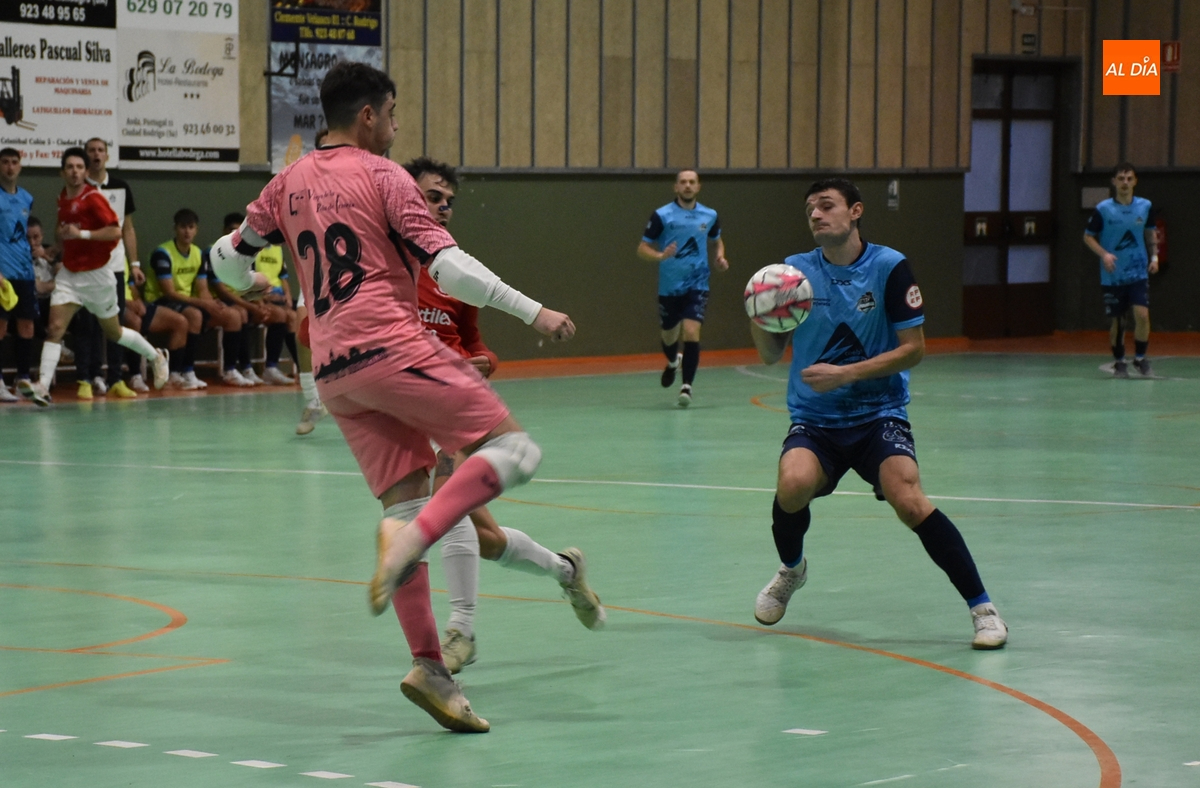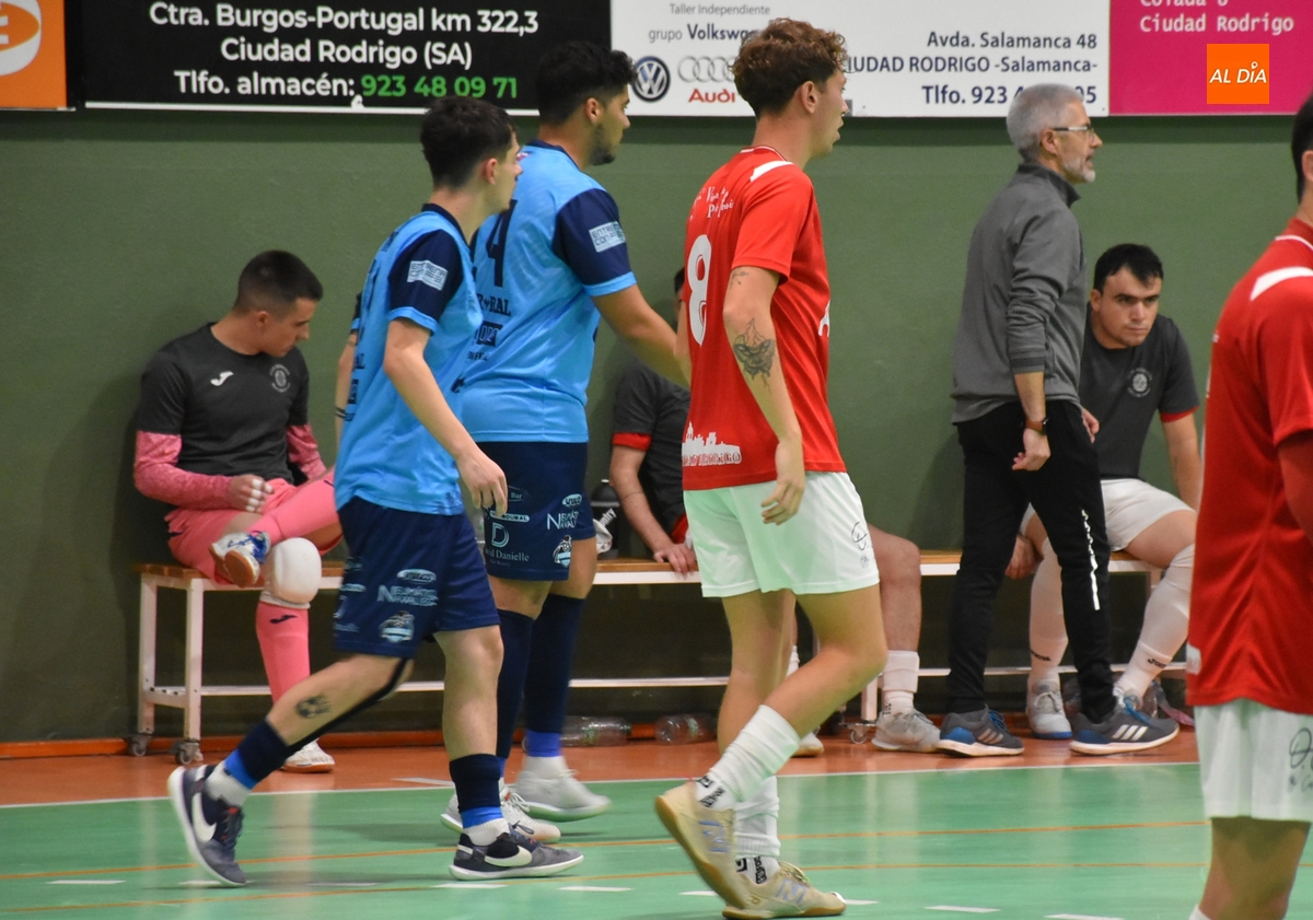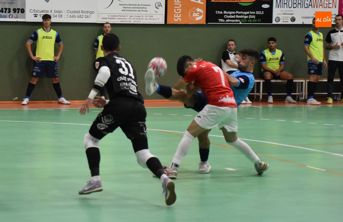 El portero mirobrigense desbarató otros tiros con peligro en el 12’ (una opción en carrera), 13’ (un tiro en media distancia) y 14’, además de pasearse otros dos balones por el área local sin encontrar rematador. Por si fuera poco, el III Columnas llegó a las 5 faltas en el 15’. Acto seguido, los locales pidieron tiempo muerto, tras el cual dispusieron de dos opciones claras: un libre indirecto en la frontal (forzado por Álex Sastre) que Javi Ortega estrelló en la barrera y una intentona lejana de Eloy que se fue cerca del palo.