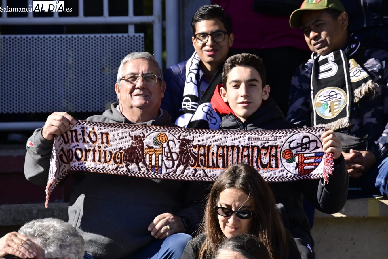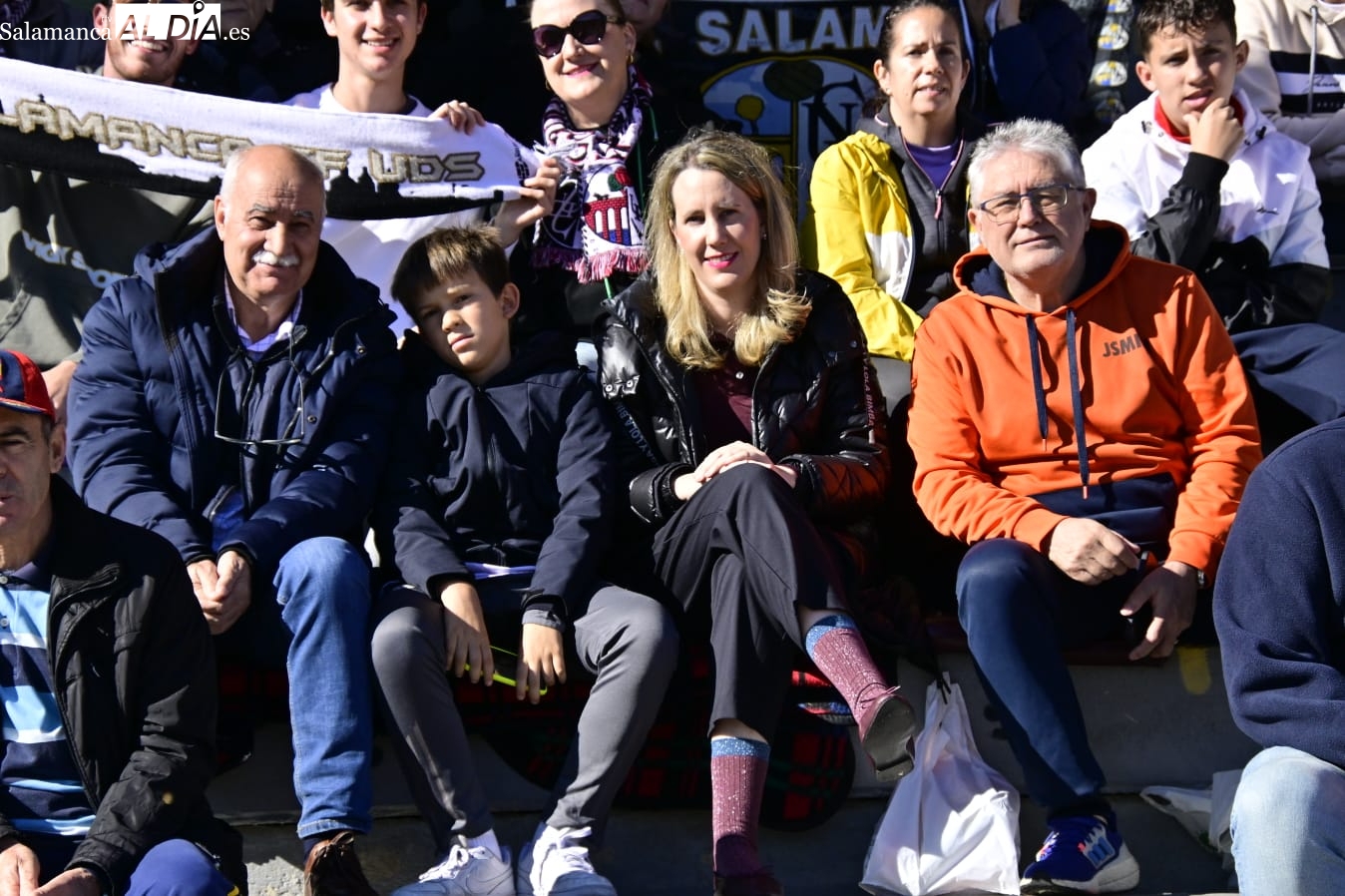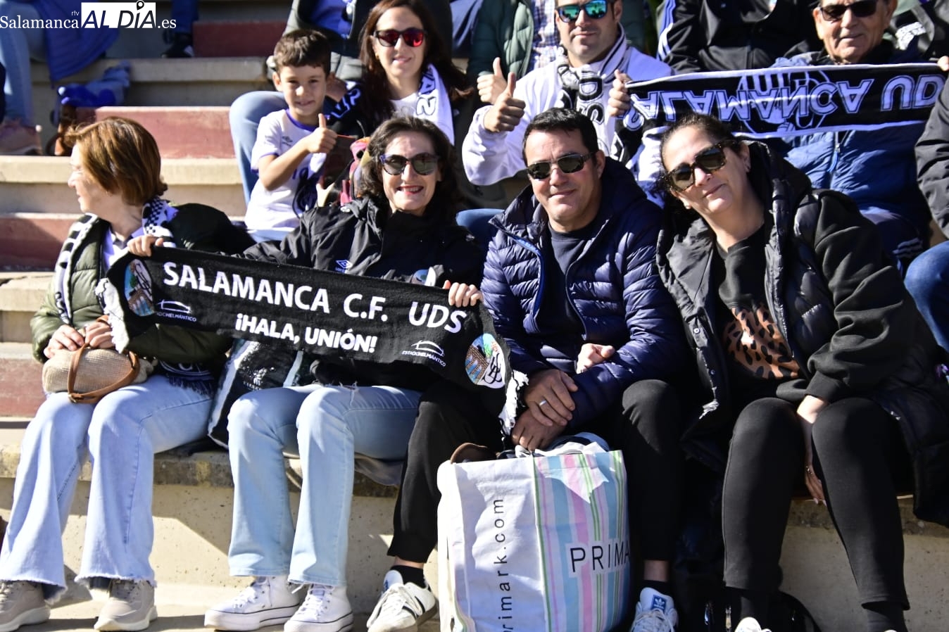 Tan cerca... y a la vez tan lejos. La afición del Salamanca UDS ha vuelto por cuarta vez a Las Pistas con el Helmántico de fondo a muy pocos metros de distancia como en aquella época de los derbis con Unionistas.