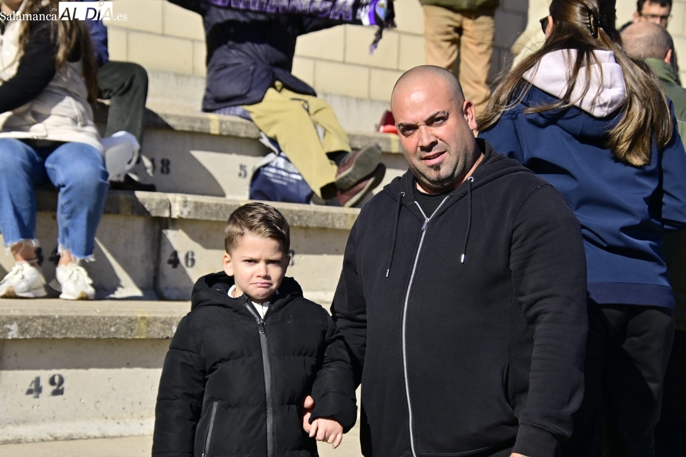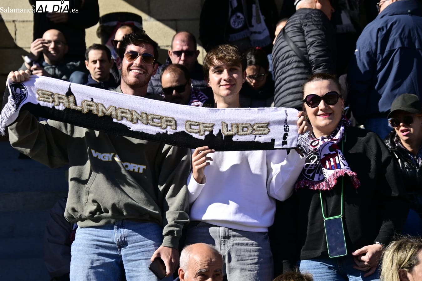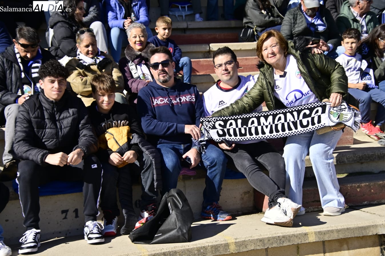 Tan cerca... y a la vez tan lejos. La afición del Salamanca UDS ha vuelto por cuarta vez a Las Pistas con el Helmántico de fondo a muy pocos metros de distancia como en aquella época de los derbis con Unionistas.