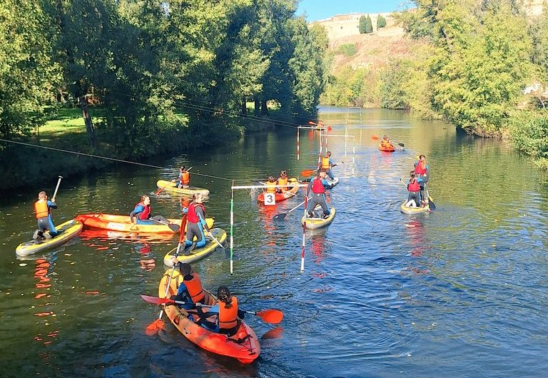 En la mañana del domingo, al amanecer la jornada soleada en Ciudad Rodrigo (aunque un poco fresca), pudieron llevar a cabo las actividades acuáticas previstas en este programa Multiaventura, como son el kayak y el paddle surf, pasándoselo en grande.