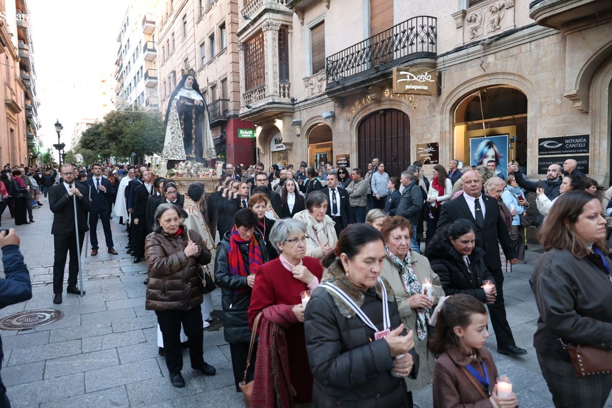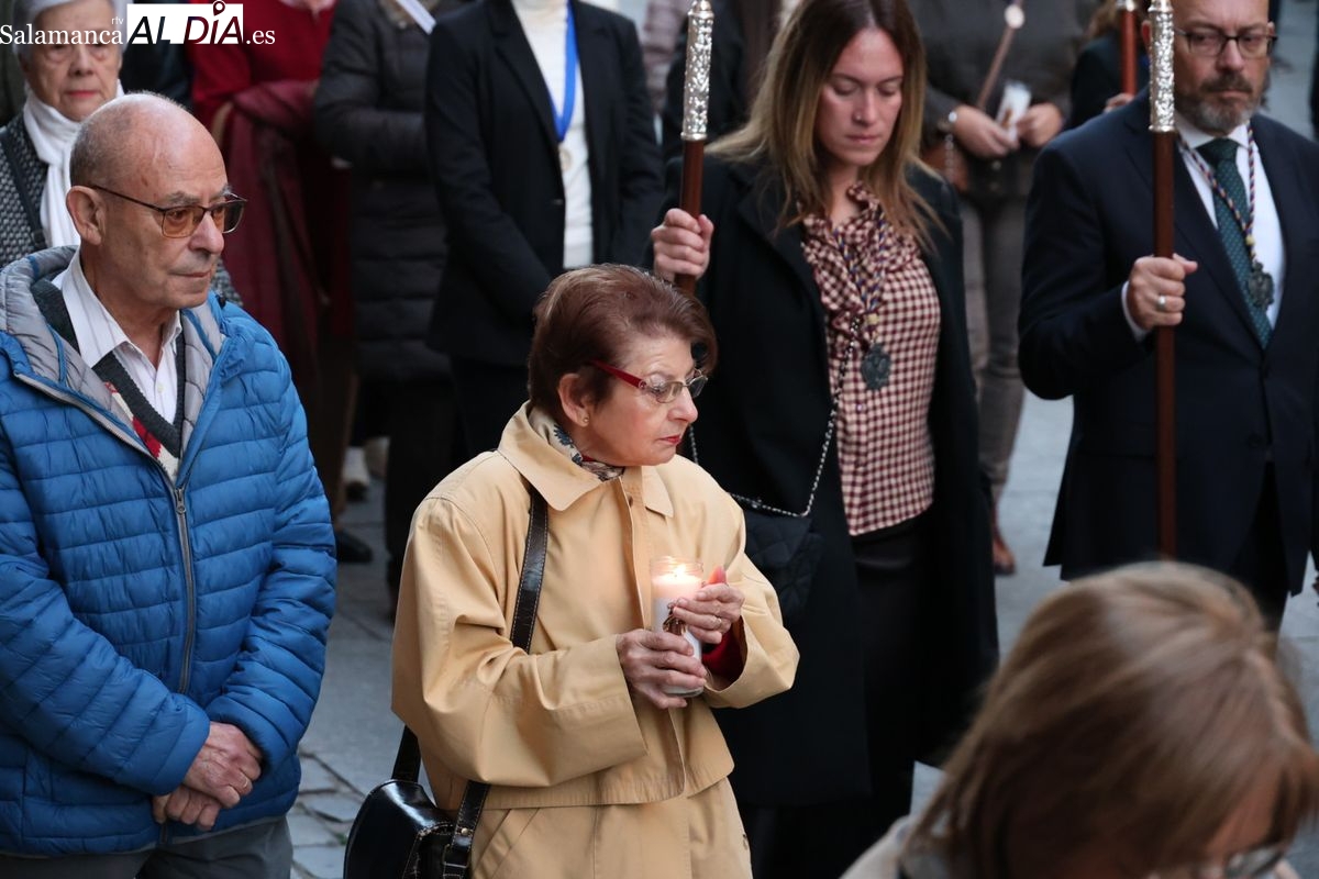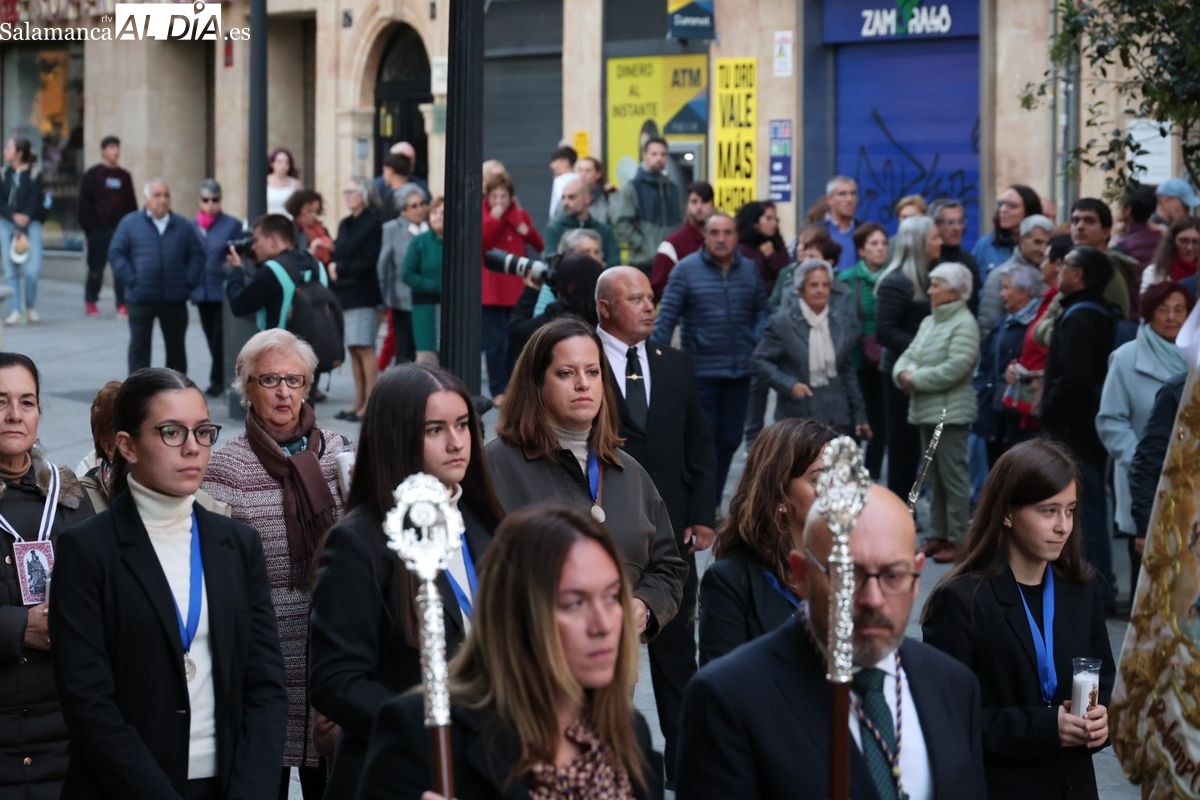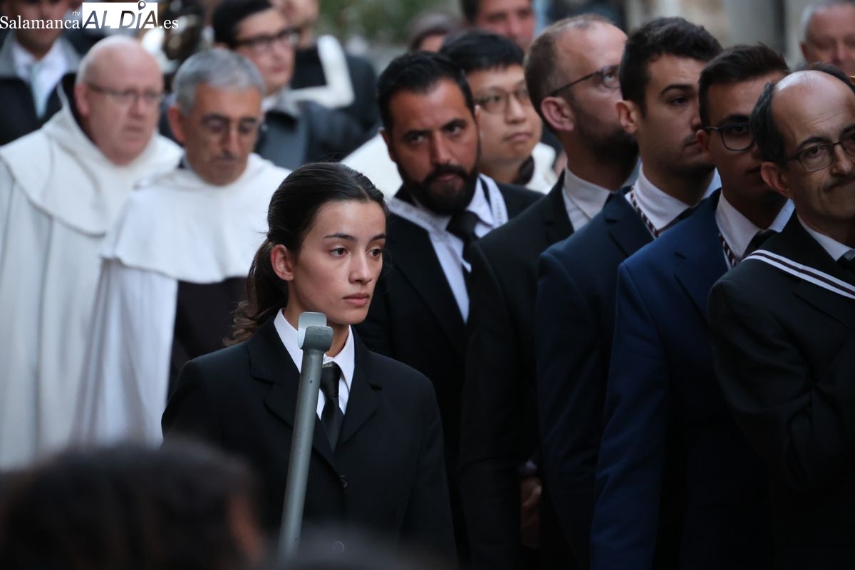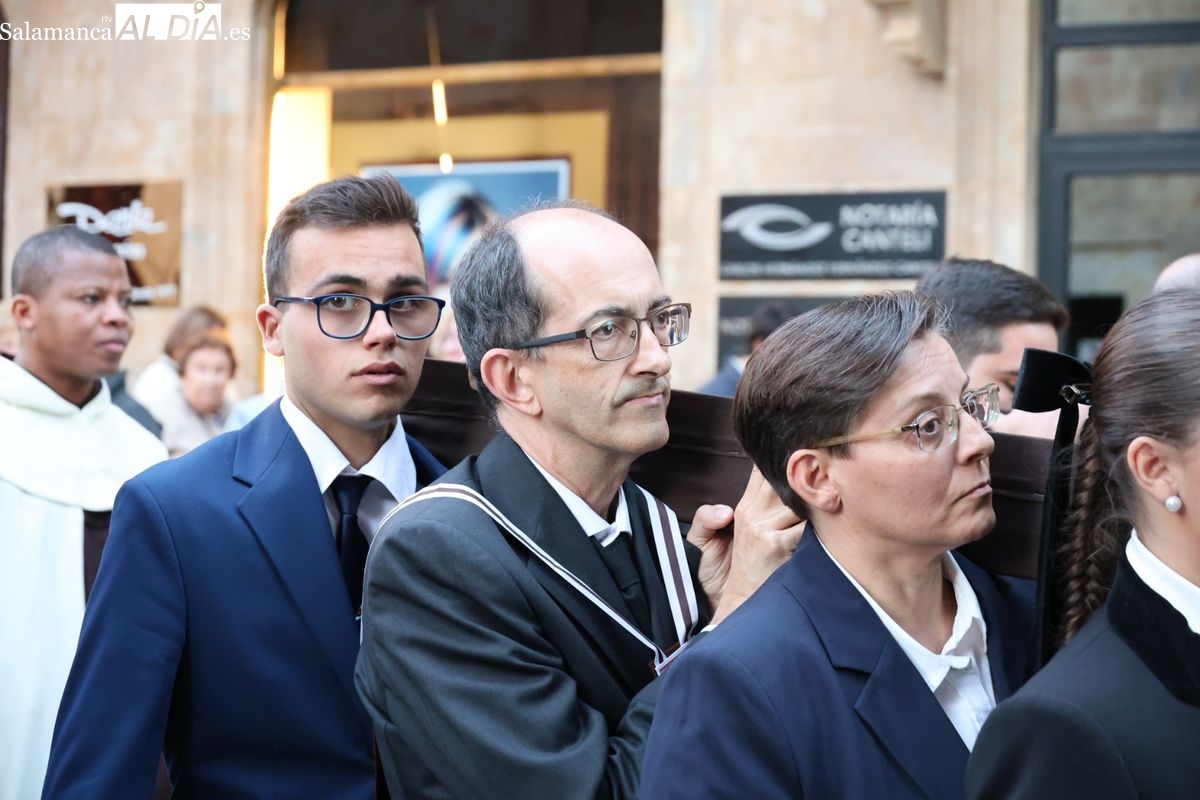 Las calles del centro de Salamanca han sido el escenario este domingo de la procesión en honor a Santa Teresa de Jesús. La imagen de la santa ha estado acompañada por numerosos fieles, en un emotivo acto de homenaje organizado por la Orden de Carmelitas Descalzos de Salamanca y Alba de Tormes.
