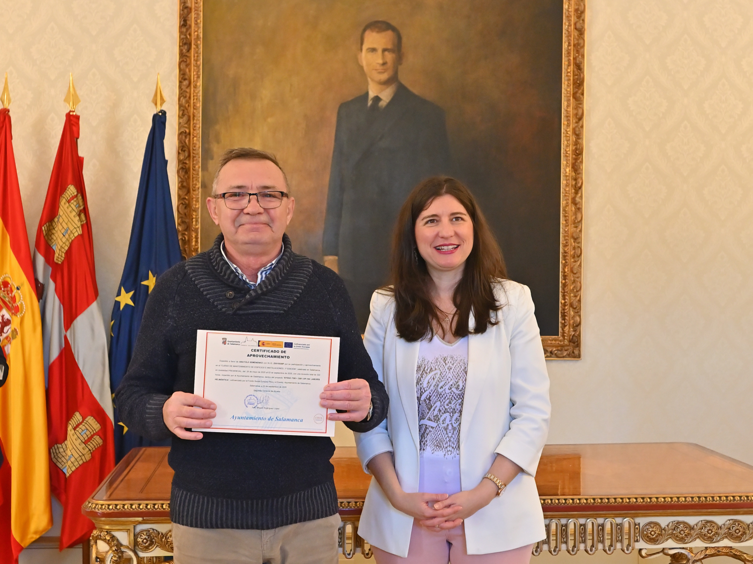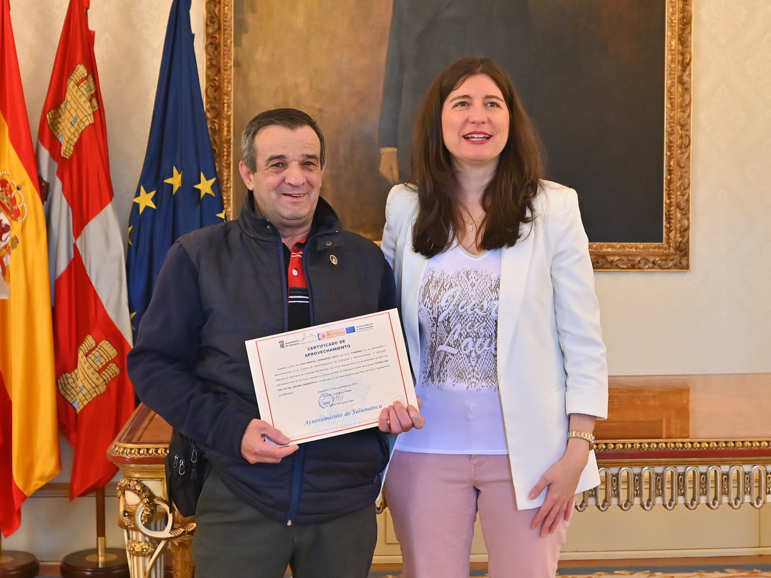 La valoración se ha producido durante la entrega de diplomas a las 25 personas (11 hombres y 14 mujeres) que han completado las tres primeras acciones formativas del programa. En concreto, los cursos finalizados son ‘Mantenimiento de edificios e instalaciones’, ‘Camarera/o de pisos’ y ‘Asistentes personales y personas de compañía’.