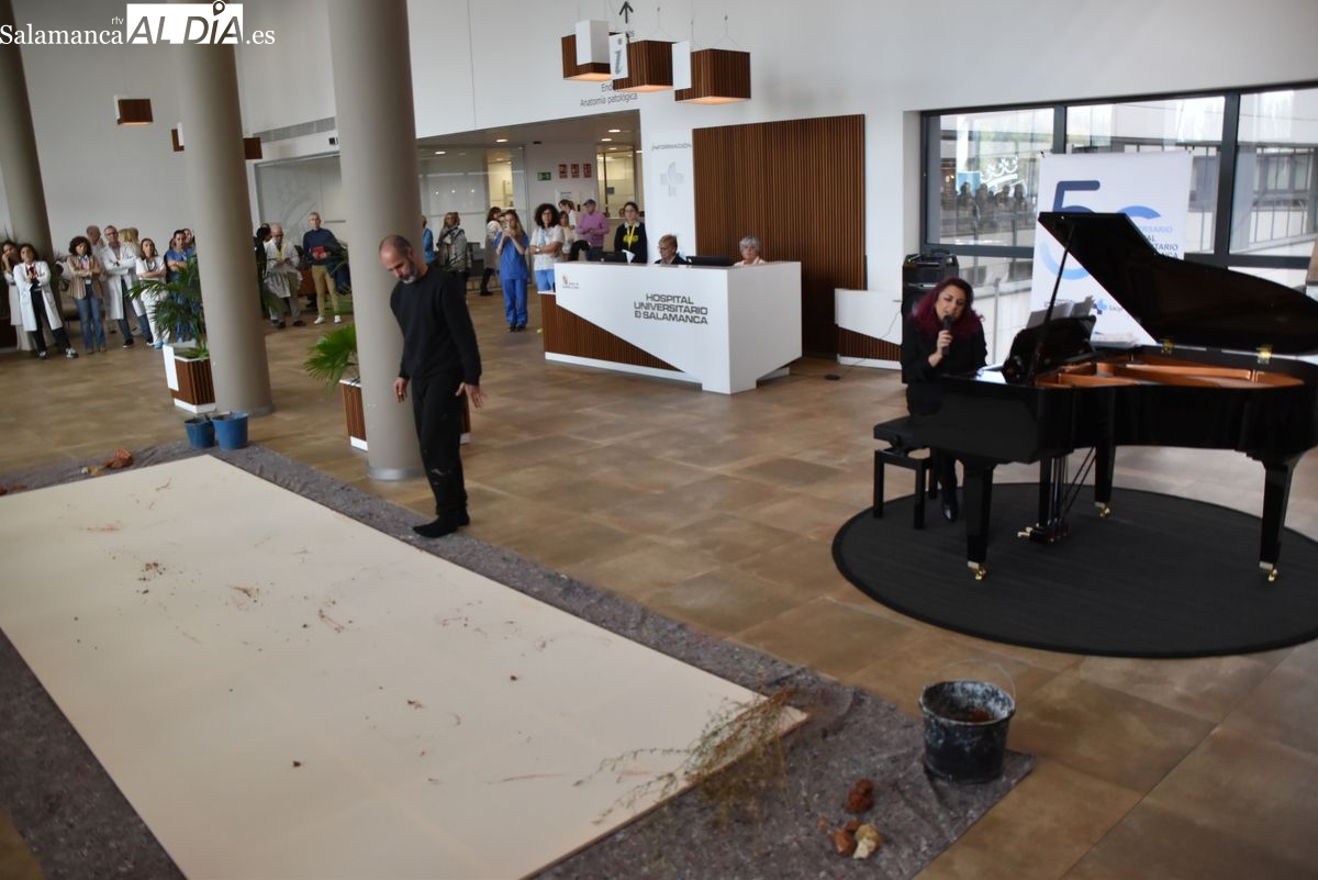 El Complejo Asistencial Universitario de Salamanca (CAUSA) ha dado comienzo este martes a los actos conmemorativos del 50 aniversario del Hospital Clínico de una manera singular y emotiva. La iniciativa, denominada 'Latidos de barro', combina la creación plástica en directo y la música para rendir homenaje a la historia del centro, todo ello impulsado por la generosidad de un paciente anónimo cuya herencia ha hecho posible el proyecto.