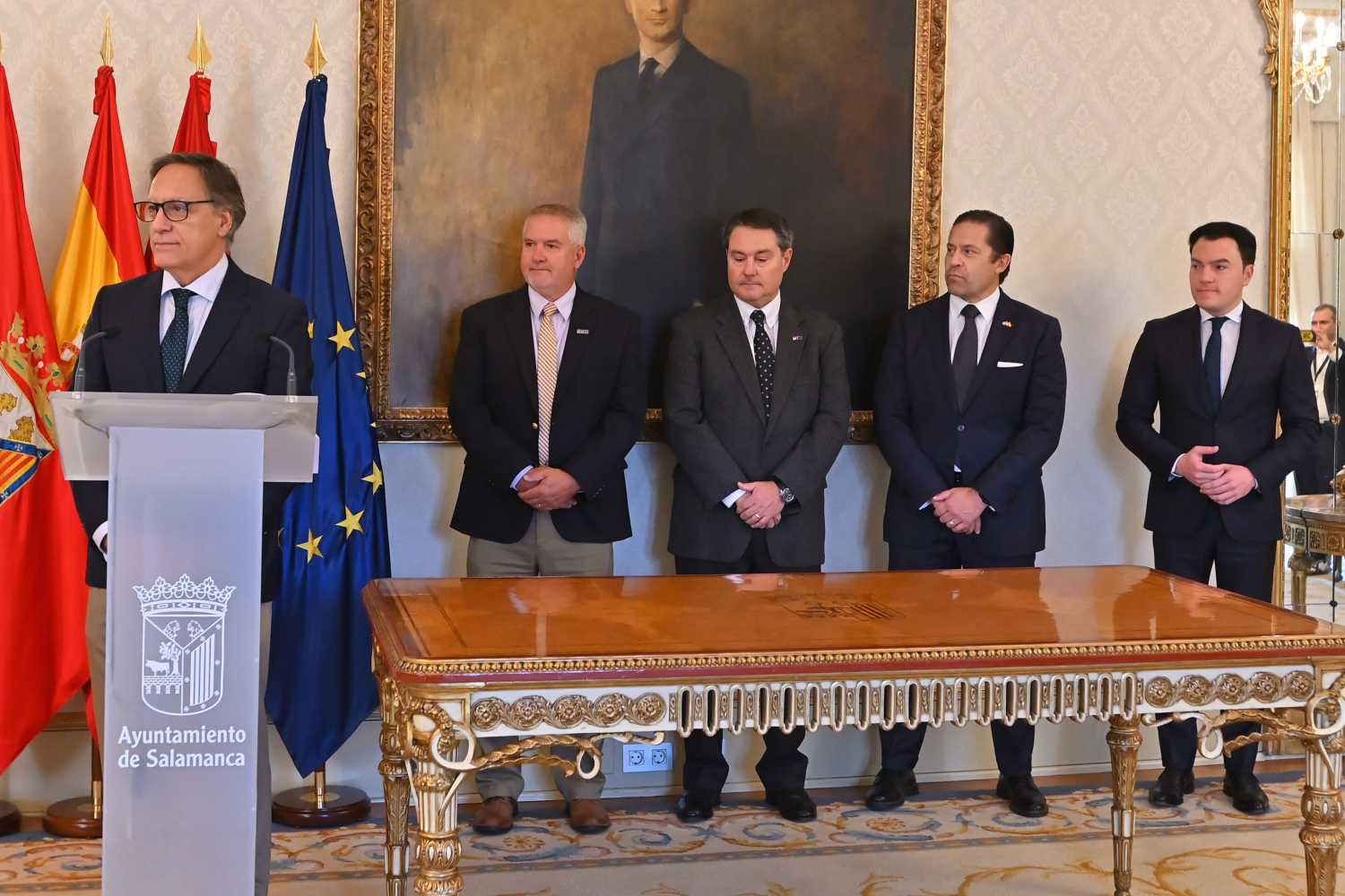 Durante la recepción oficial en el Ayuntamiento, García Carbayo ha destacado la vocación de la ciudad para establecer alianzas estratégicas. "Hoy queremos conectar nuestros polos e identificar proyectos concretos en los que podamos caminar juntos", ha afirmado el alcalde, quien también ha incidido en que "Salamanca es una ciudad abierta a quienes investigan, a quienes emprenden y a quienes nos visitan por primera vez".