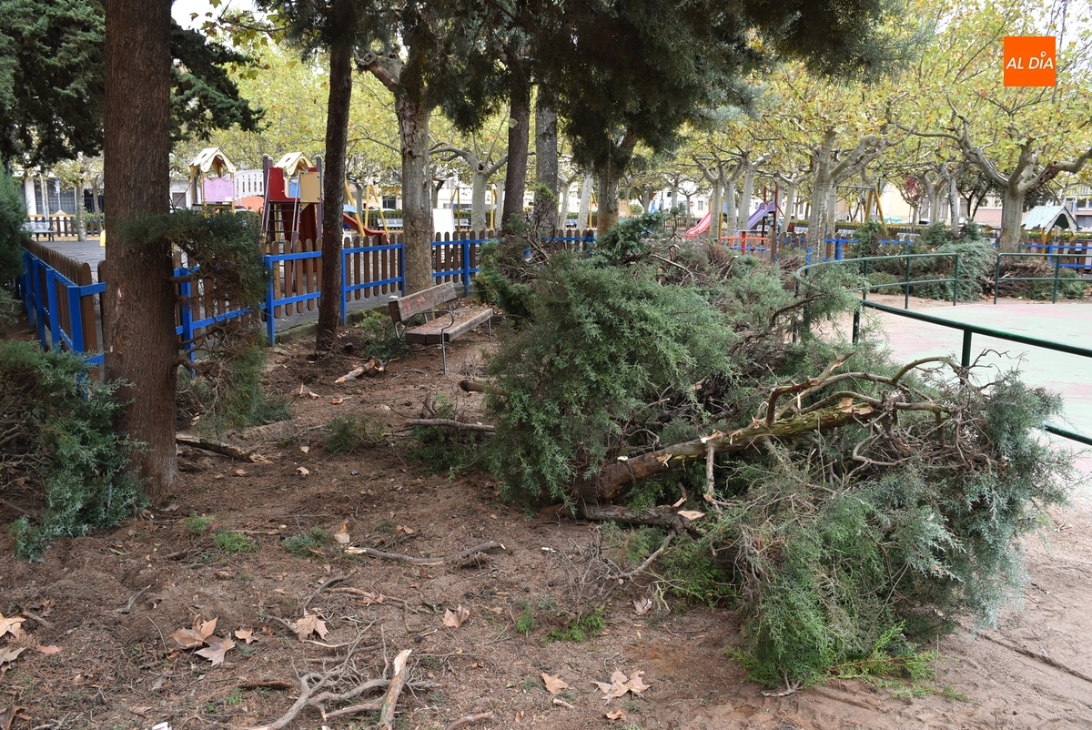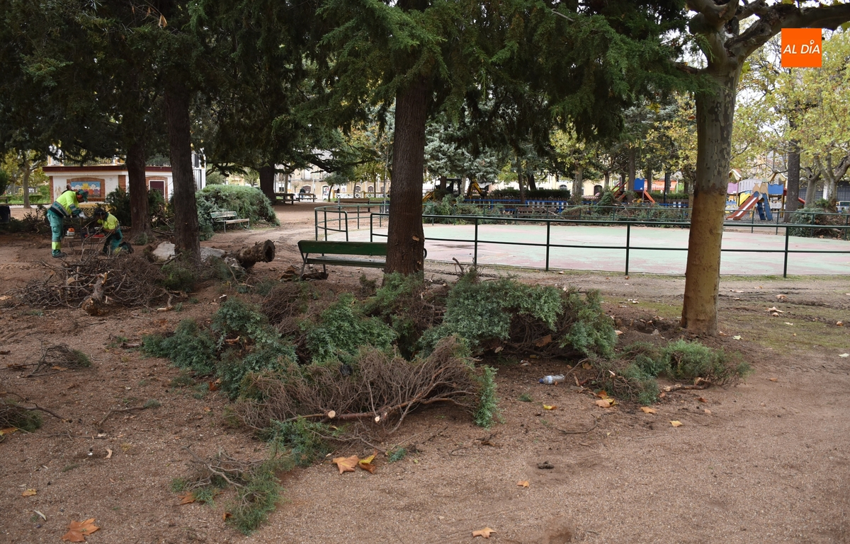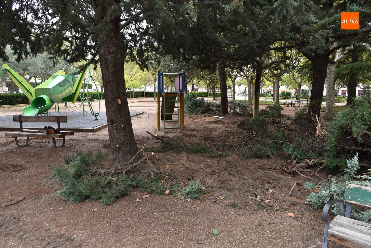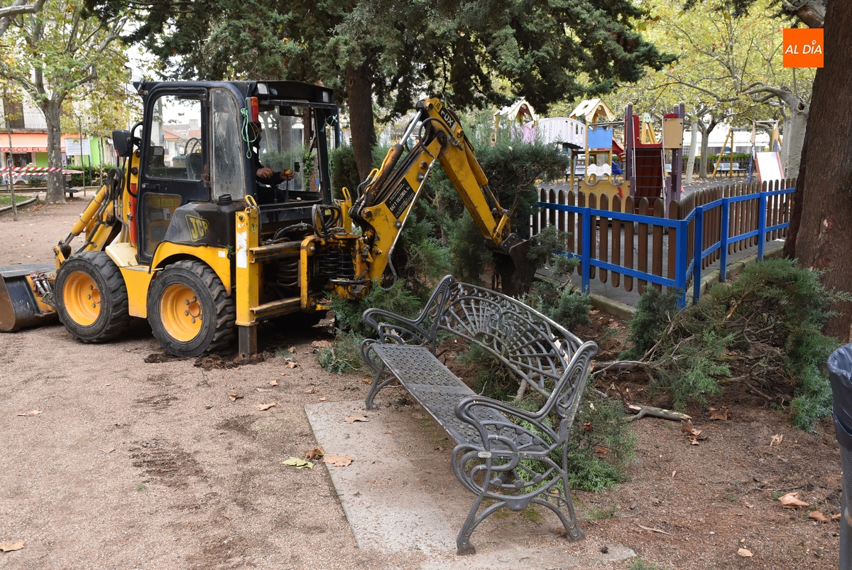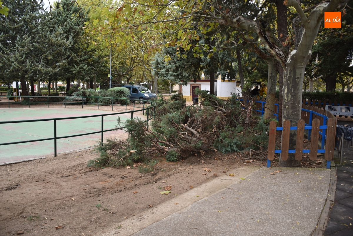 Como primer paso, en la mañana del jueves se procedió a retirar la mayor parte de los setos que había en torno a la pista de patinaje (así como un árbol en mal estado), que a la hora de la verdad únicamente servían como ‘meadero’, como apuntó a Ciudad Rodrigo Al Día el delegado de Parques y Jardines, José Manuel Jerez (y corroboraron un par de personas que pasaban por las inmediaciones). El delegado del área señala que este seto ya estaba “viejo”, consiguiendo con su retirada que el Parque tenga “más luz” (ya se notaba en la mañana del jueves).