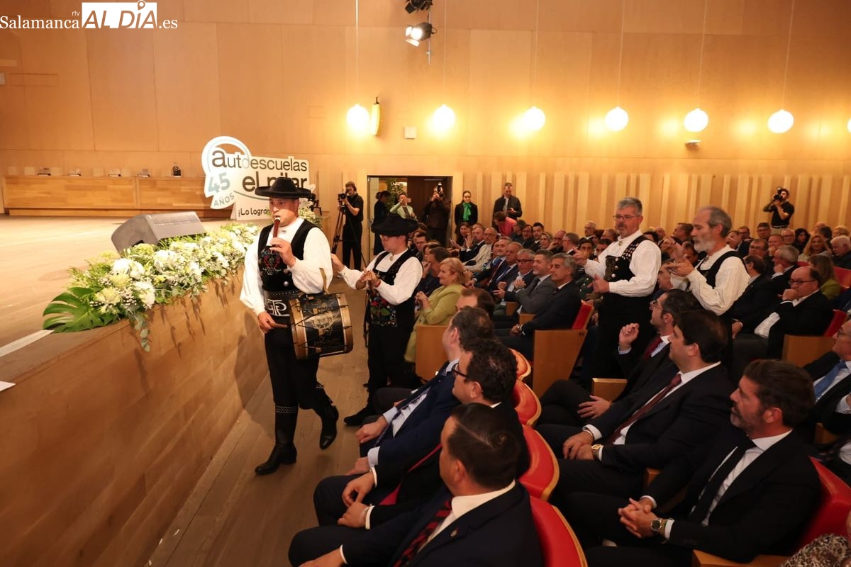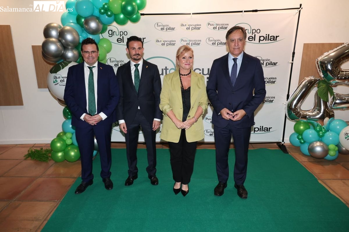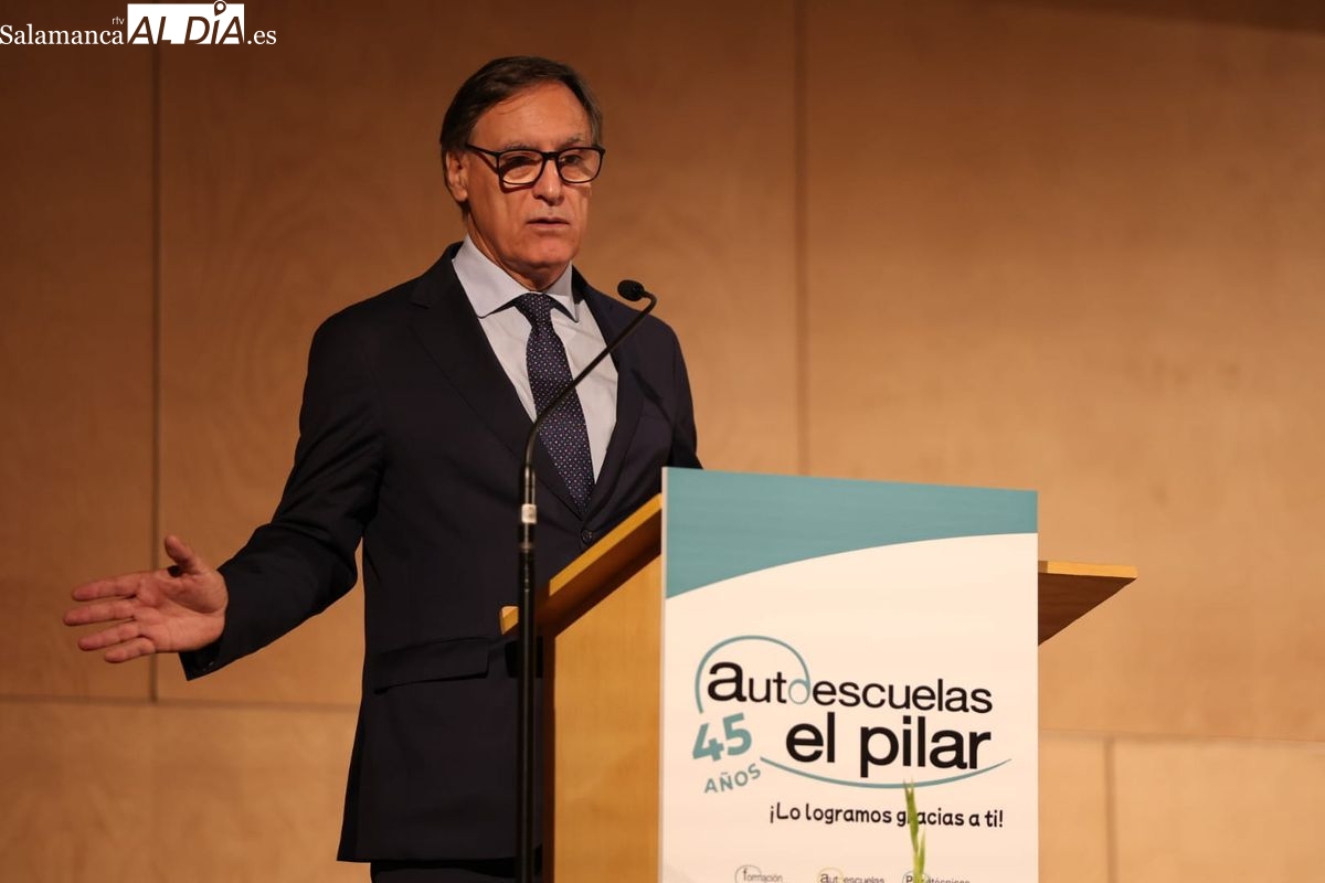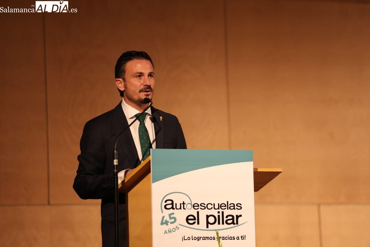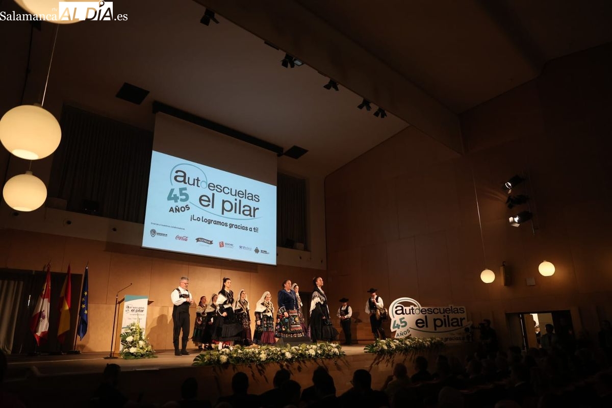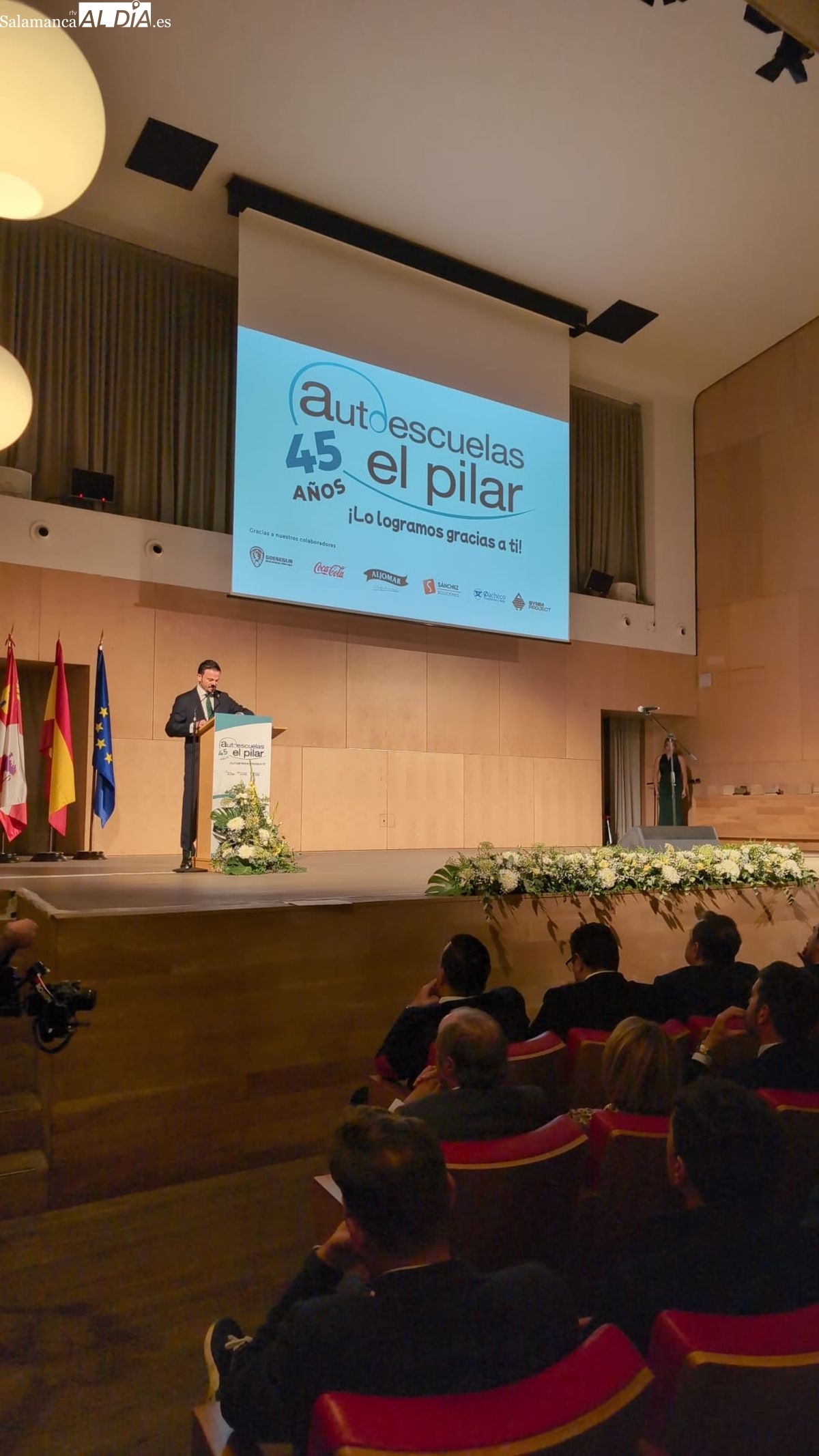 La empresa salmantina Autoescuelas El Pilar ha celebrado este jueves sus 45 años de trayectoria con un emotivo acto en el Auditorio Fonseca. La gala, organizada por la familia Rollán Segurado, ha servido para rendir homenaje a la figura de su fundador, Antonio Rollán Díaz, y para reconocer la labor de instituciones y personalidades clave en la seguridad vial de la provincia.