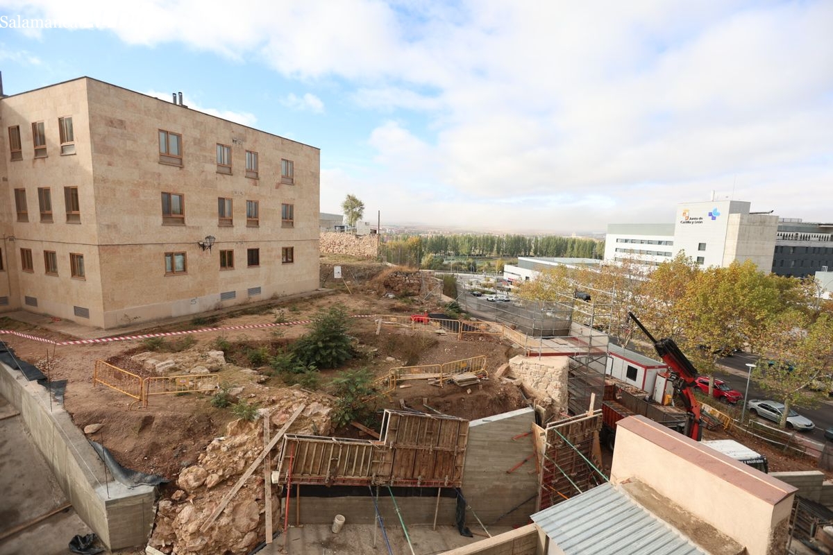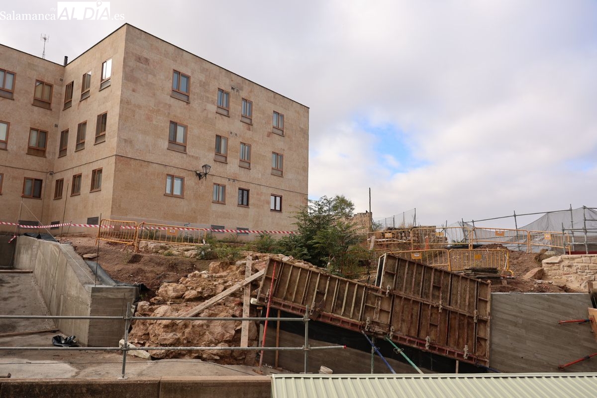 Las obras de acondicionamiento que se están ejecutando en el Cerro de San Vicente han sacado a la luz nuevos e importantes hallazgos arqueológicos. Se trata de la estructura de un posible pozo de nieve y los cimientos de la iglesia del desaparecido convento benedictino, según ha anunciado este jueves el alcalde de Salamanca, Carlos García Carbayo.