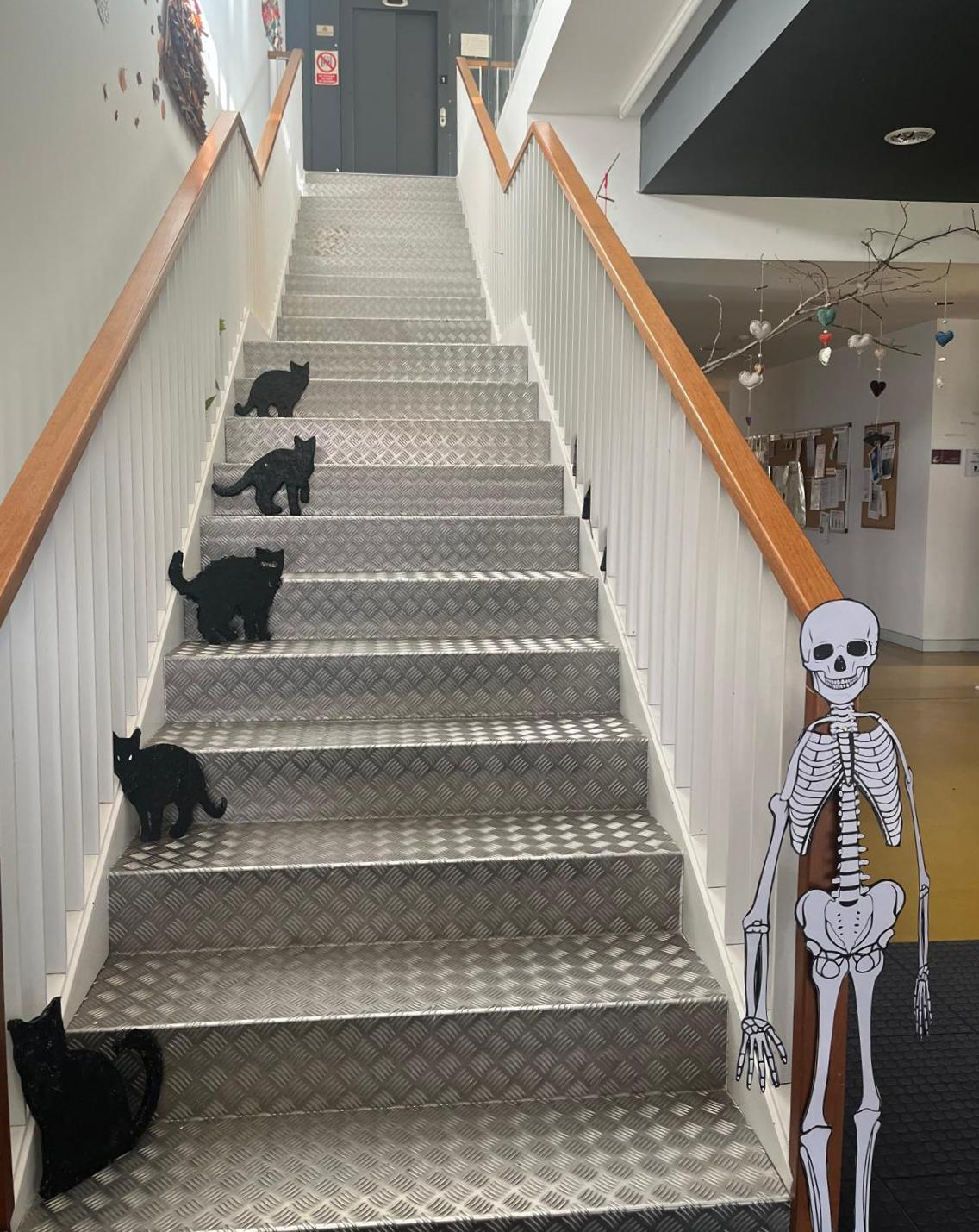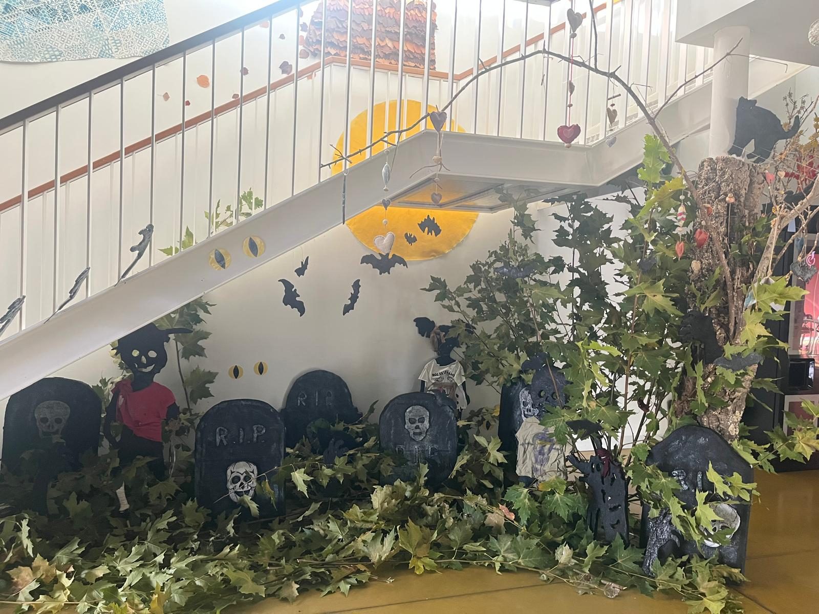 De este modo, el habitual cementerio compuesto por varias lápidas envueltas en vegetación se ha montado en el interior del Centro Ocupacional, donde también se pueden encontrar esqueletos y gatos negros. Asimismo, en esta jornada de viernes en la que aparece Halloween en el calendario, responsables del Centro se han disfrazado para la ocasión.