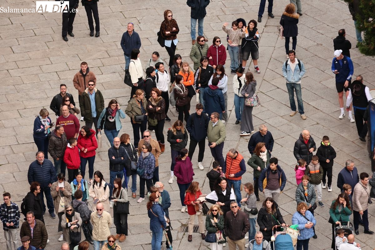 Ante la atenta mirada de cientos de salmantinos y turistas congregados en la Plaza de Anaya, la subida de este año ha combinado la acción de gracias, enmarcada en el Año Jubilar de la Esperanza, con una clara llamada de atención a las administraciones.