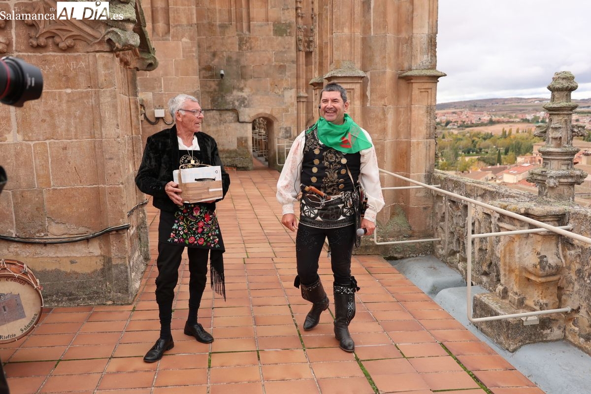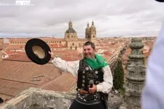 Fiel a su cita anual con Salamanca, Ángel Rufino de Haro, 'El Mariquelo', ha coronado un año más la torre de la Catedral Nueva este 31 de octubre. La XXXIX ascensión se ha convertido en un poderoso altavoz para la Asociación Párkinson Salamanca y la Asociación Española contra el Cáncer (AECC), cuyas reivindicaciones han resonado desde lo más alto del templo salmantino.