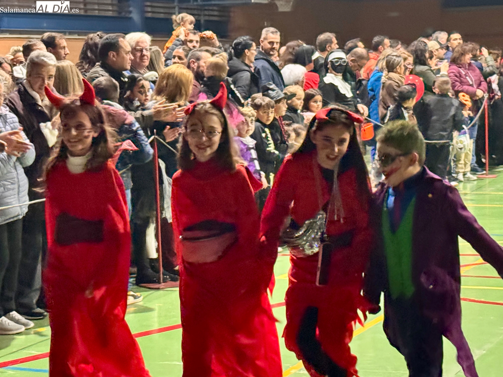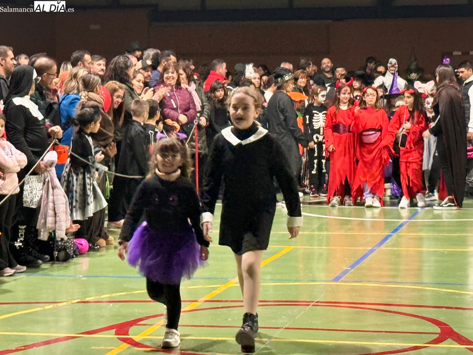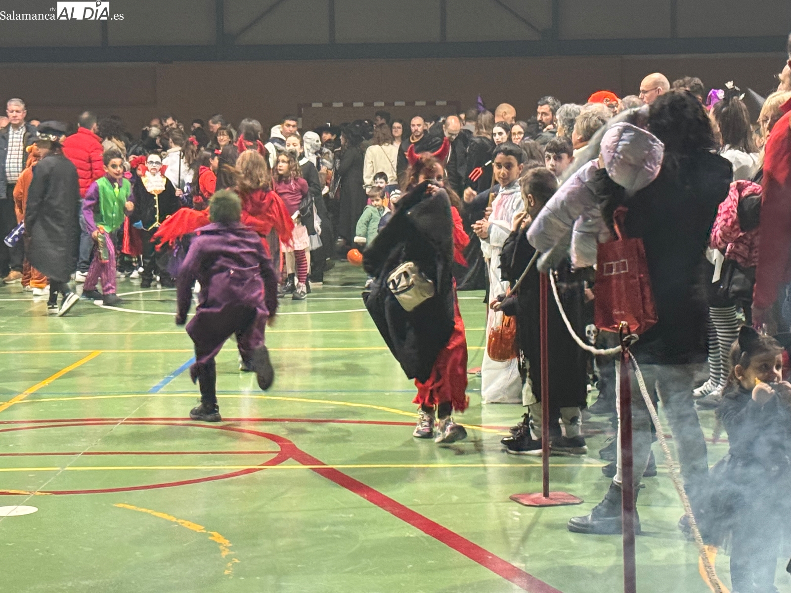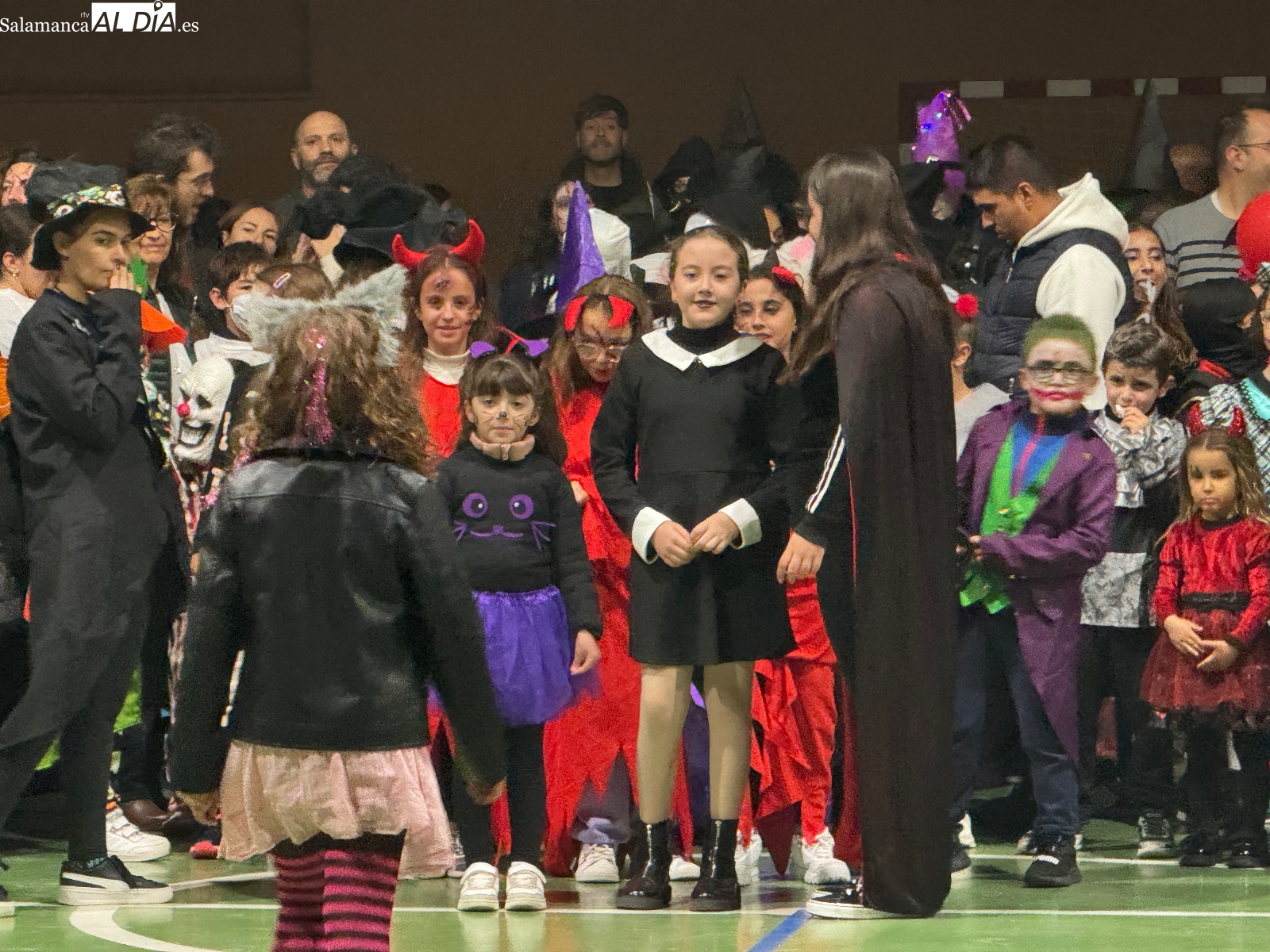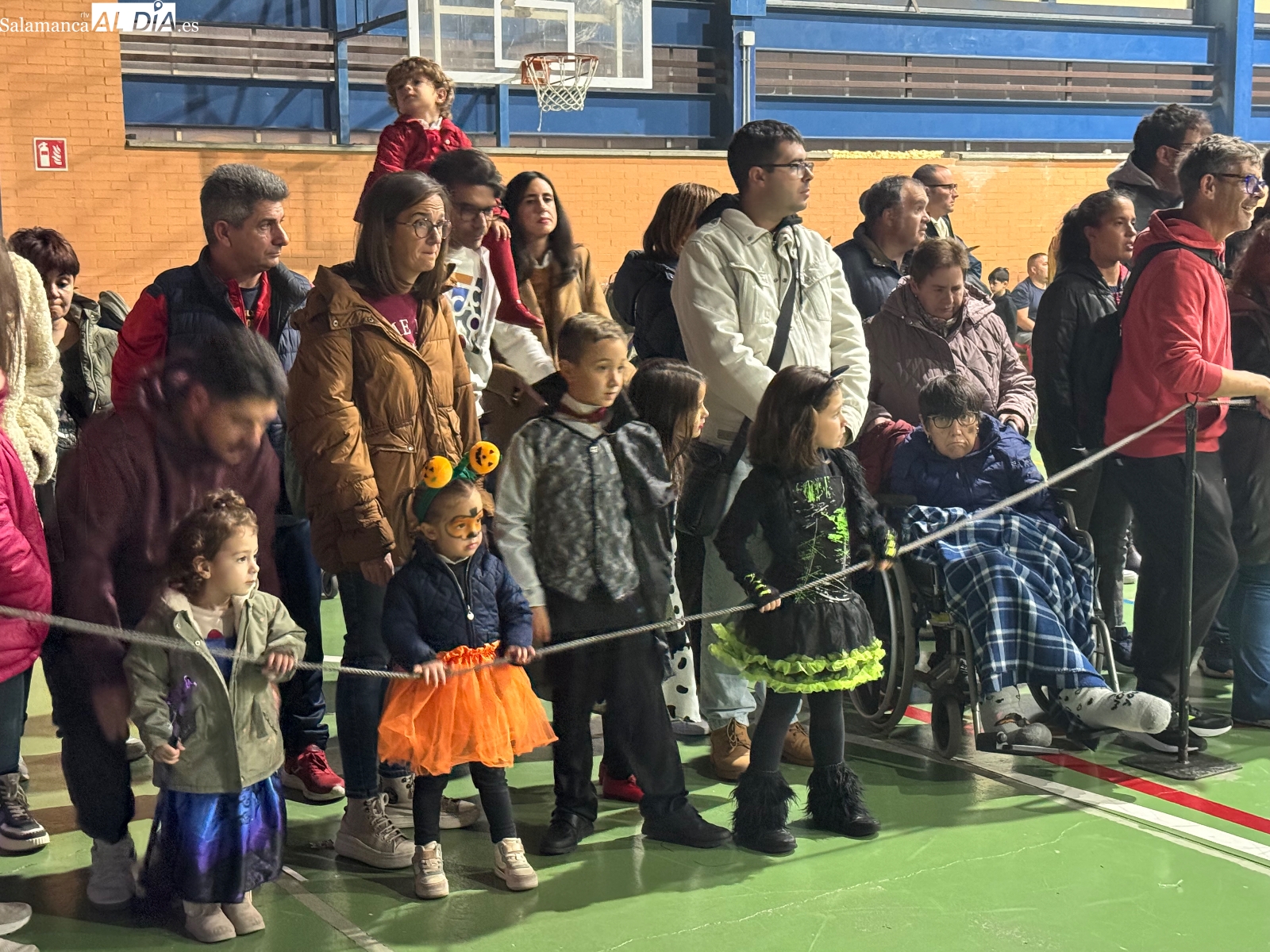 La jornada comenzó con el esperado desfile de disfraces, donde pequeños y mayores mostraron su lado más creativo: brujas, vampiros, zombis y hasta algún superhéroe o villano desfilaron ante el público, arrancando aplausos y sonrisas. A continuación, el ambiente se caldeó con un animado baile, en el que la música y las luces convirtieron la pista del pabellón en una divertida reunión.