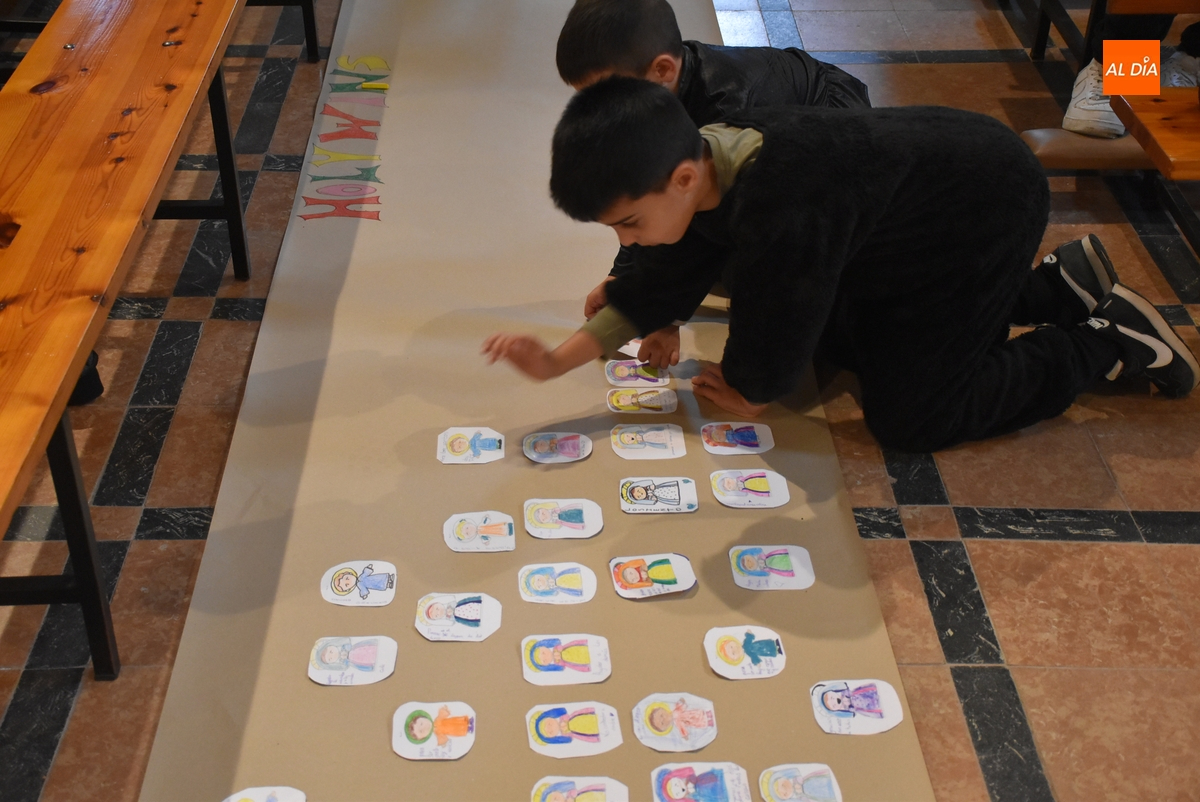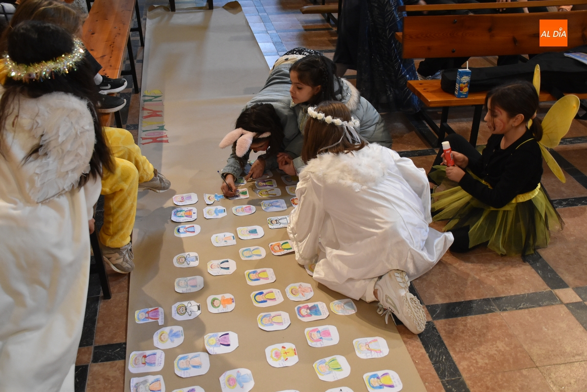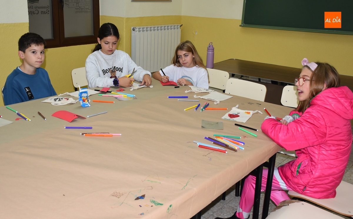 Los chavales se distribuyeron en seis grupos, en función del curso que estudian, para ir rotando comandados por varios jóvenes por un total de 6 talleres (también atendidos principalmente por jóvenes) repartidos por dependencias del Seminario: uno para crear santos, otro para decorar unas bolsas de la Diócesis que se pudieron llevar de recuerdo, un taller de pintacaras, una sesión de Trivial, otro en el que crearon un gran mural con la denominación Los santos vencen, y el clásico taller de baile.