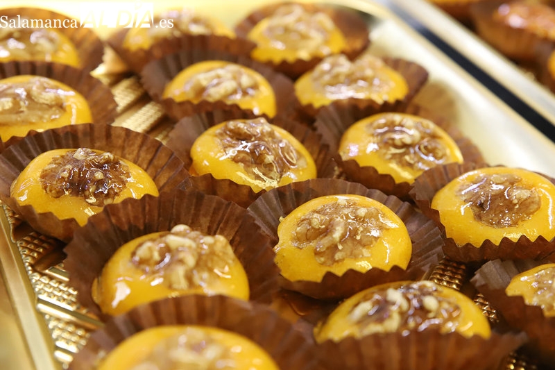 Buñuelos, huesos de santo y sus exclusivas yemas acarameladas llenan los escaparates de la pastelería de Alba de Tormes